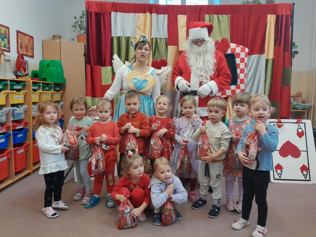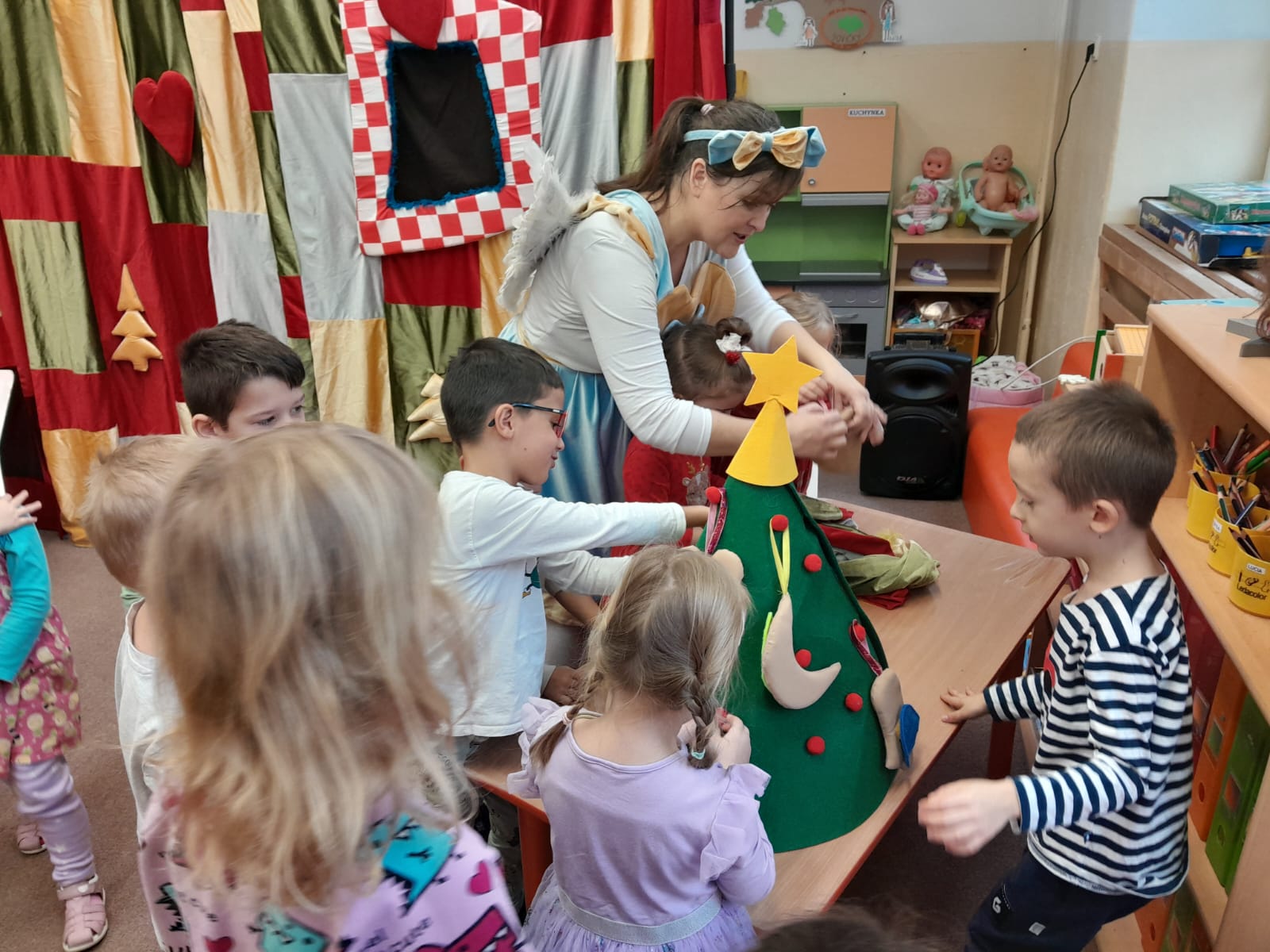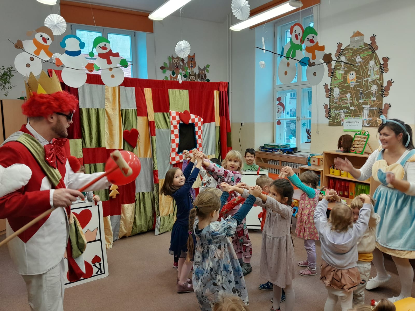 V decembri sme v našej materskej škole privítali divadlo Zábavka s predstavením Alica v krajine zázrakov. Alica, ktorá neverí v zázraky, sa spolu s našimi škôlkarmi púšťa do plnenia troch úloh. V prvej spoločnými silami zdolajú prípravu vianočných medovníkov, v druhej si zahrajú vianočný kriket a v tretej úspešne vyriešia zadané hádanky. Asi najväčším prekvapením pre naše deti však bolo, keď v závere predstavenia spoza kulís prišiel Mikuláš a rozdal mikulášske balíčky.