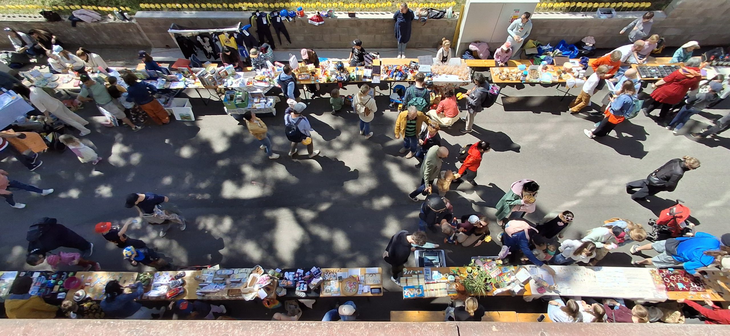 Súčasťou jarného Dobrého trhu, tentoraz s podtitulom Umenie spolužitia, sa stala aj naša škola. V areáli prvého stupňa prebiehal Detský trh, na pódiu v prednej časti školského dvora sa vystriedali divadelné predstavenia, inkluzívna módna prehliadka aj čítanie rozprávok.