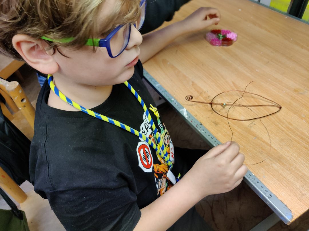 Žiaci zo IV.C si vyskúšali prácu s medeným drôtom a kliešťami. Trocha času, poriadna dávka trpezlivosti, jemné a dôkladné prevedenie priniesli deťom vytúžený výsledok. Domov si odniesli vlastnoručne vyrobený list. Čo výrobok, to originál – odmena za vynaloženú námahu.