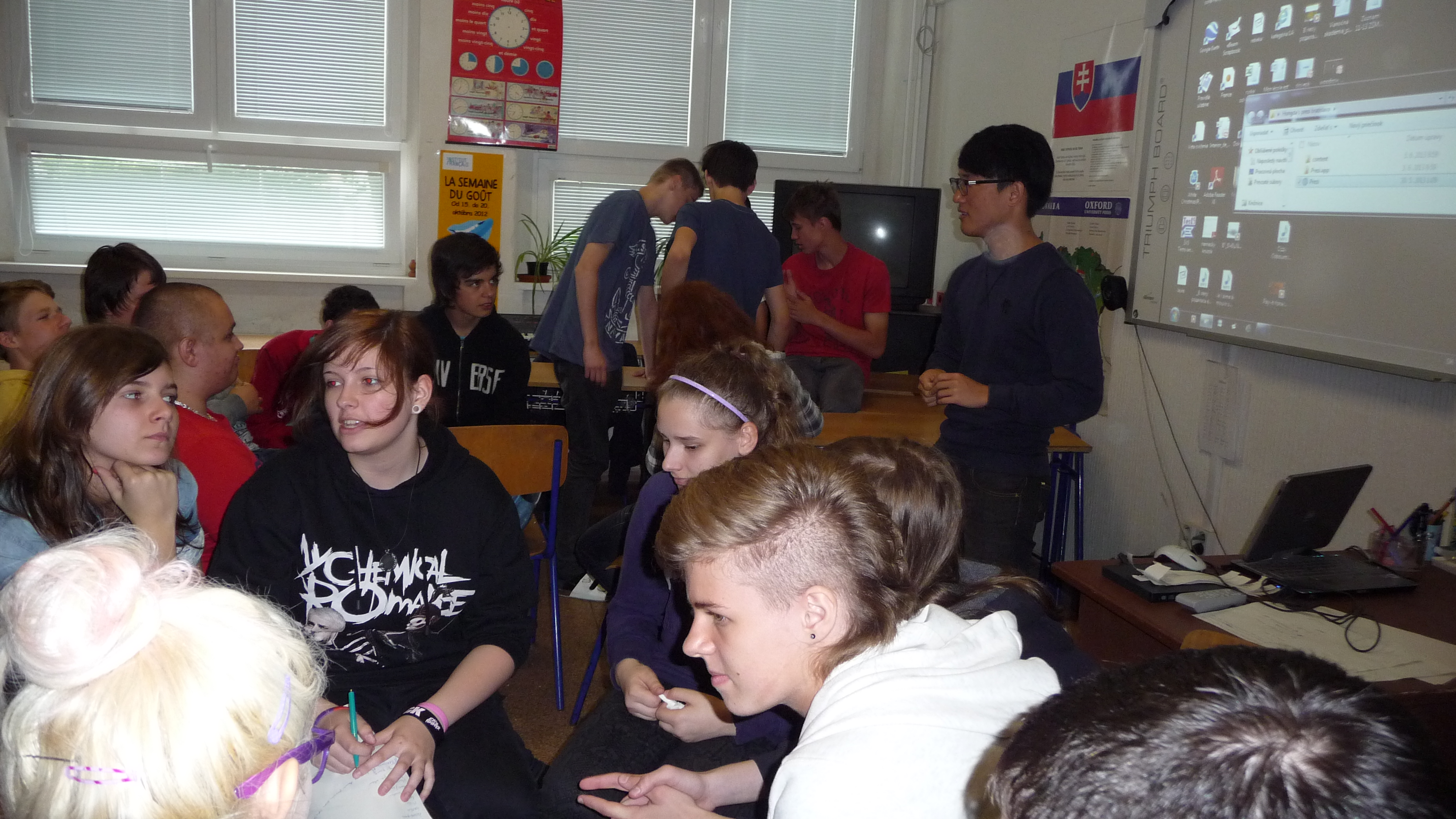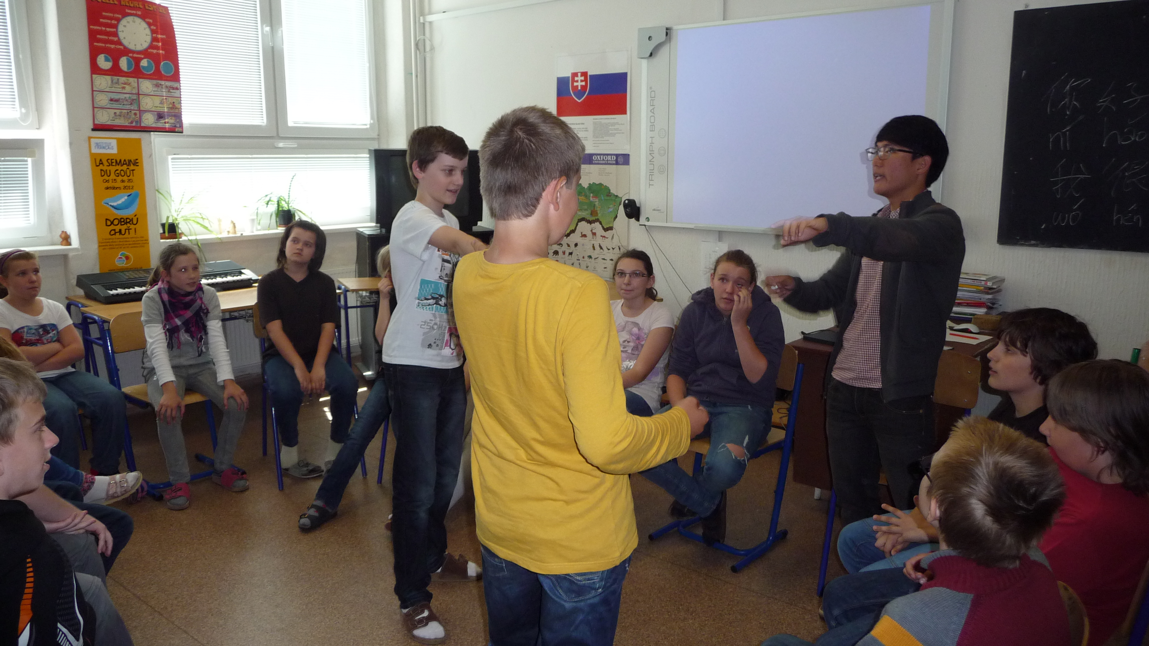 Cherry z Hong Kongu, Oľgu z Ruska, Hondu zo Singapuru a Oliviera z Francúzska. Študenti mali v anglickom jazyku prezentácie o svojej krajine, na ktoré nadväzovali rôzne aktivity. Týždeň, ktorý tu študenti strávili, prehĺbil záujem žiakov o rôzne kultúry a preveril ich schopnosti komunikovať v anglickom jazyku. Projekt zastrešovala medzinárodná študentská organizácie AIESEC. Na projekte sa zúčastnili všetci žiaci 5.-9. ročníka, ktorí boli rozdelení do skupín tak, že každá skupina strávila s každým študentom dve hodiny, teda každý žiak absolvoval 2 x 4 vyučovacie hodiny v angličtine.