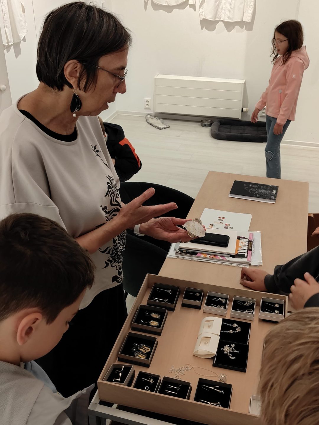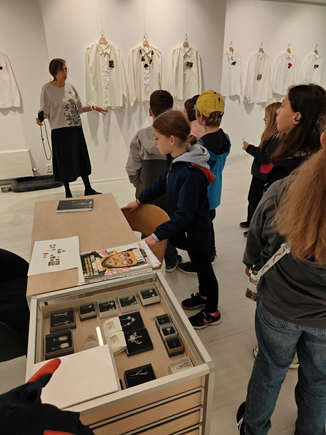 Žiaci štvrtého ročníka počas ŠKD navštívili v galérii ČIN ČIN výstavu Jany Machatovej – Everyday Stories. Žiaci sa na komentovanej prehliadke dozvedeli, ako vzniká autorský šperk. Brošne a závesy pripnuté priamo na košeliach zobrazujú tlak súčasnej kultúry, ktorá nás zahlcuje nekonečným prúdom návodov na zdravý životný štýl. Vsadené zrkadlá v niektorých šperkoch túto stratégiu dotvárajú – priamo vťahujú diváka do diela.