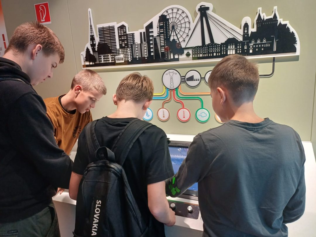Priestorom nás viedla pani sprievodkyňa, ktorá žiakom porozprávala najdôležitejšie informácie o energii a jadrovej elektrárni. Výklad a mnohé interaktívne panely a modely dali našim exkurzistom zabrať, ale tí prejavovali dobrú náladu od začiatku až do konca, možno by dokonca ocenili viac času, aby to množstvo informácií mohli vstrebať. Veríme, že cieľ exkurzie, a síce vzbudzovať u žiakov väčší záujem o svet a technologické výzvy okolo nás, sme naplnili.