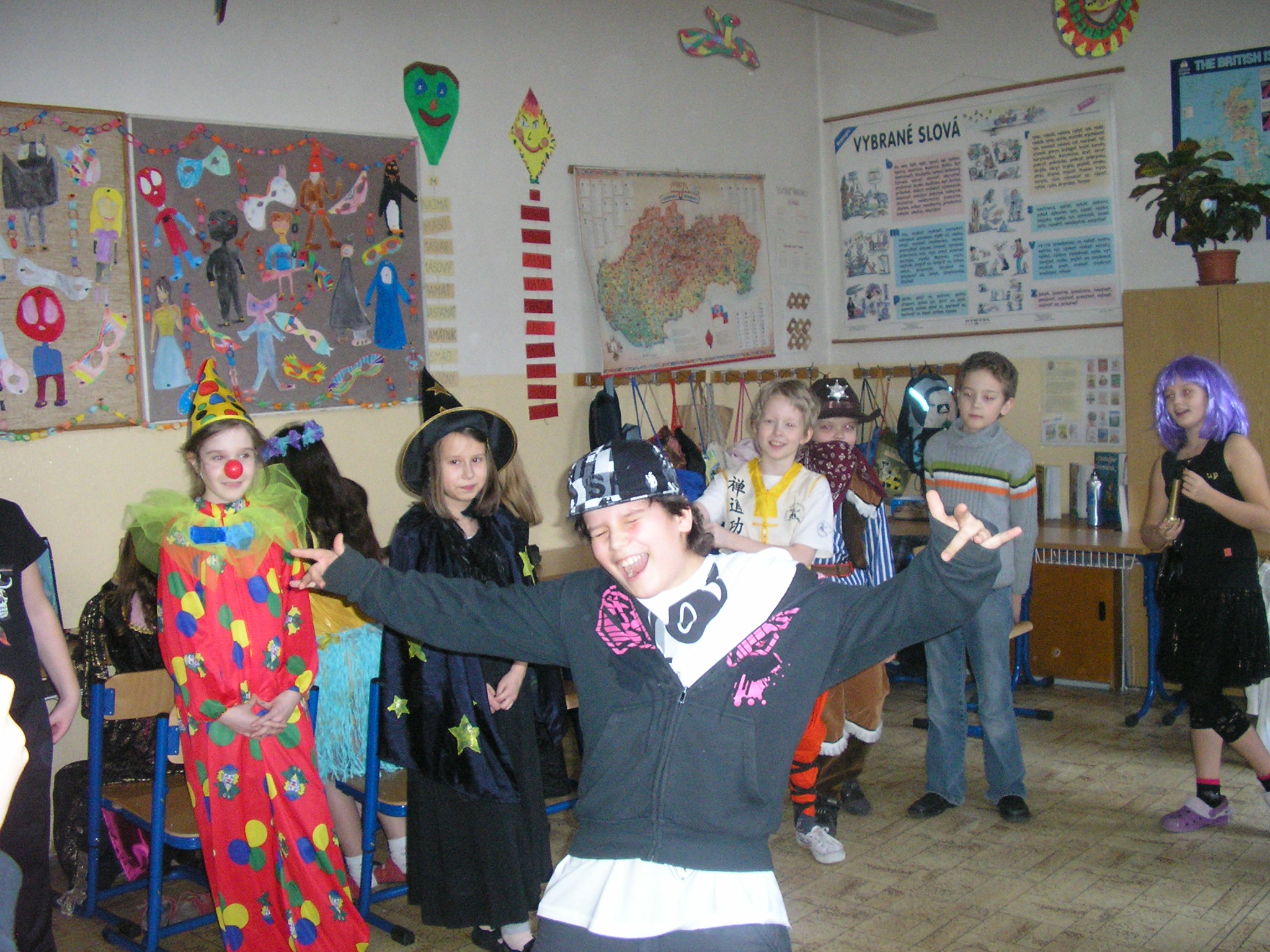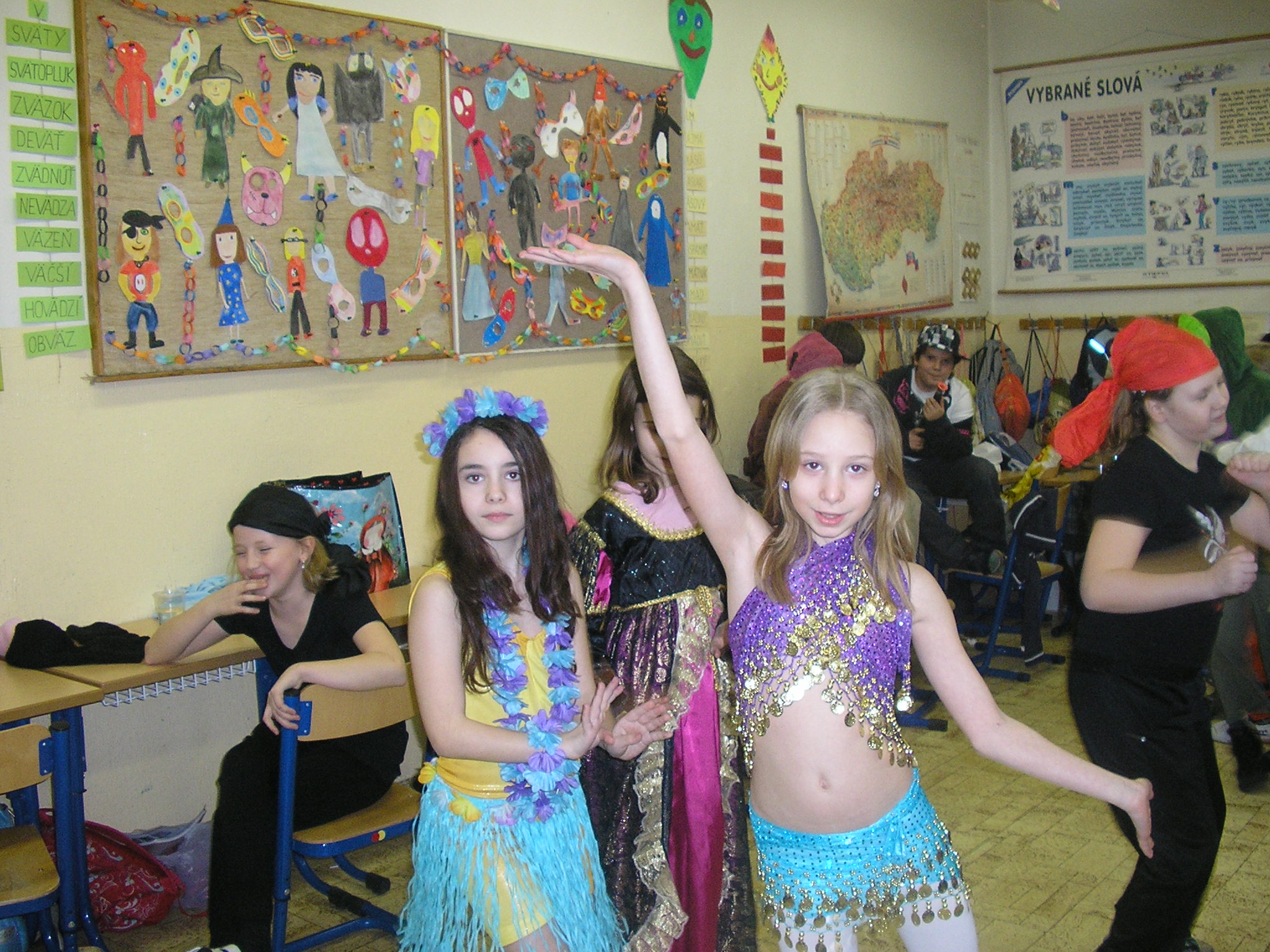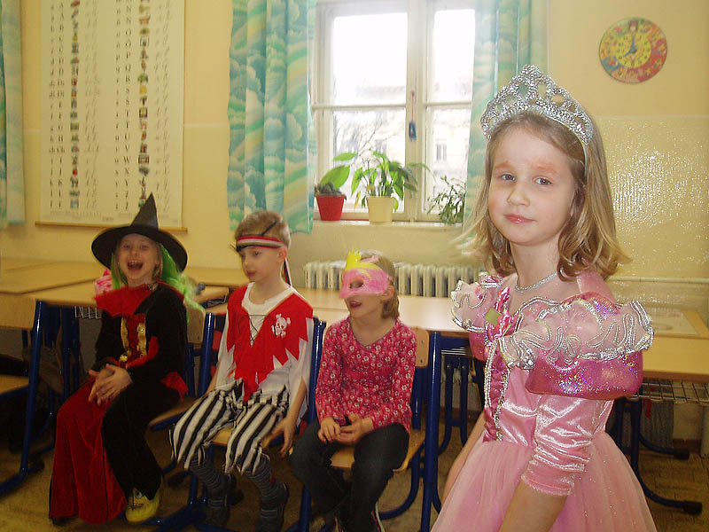 Na pár hodín sa z nich stali princezné, piráti, mačičky, ale aj mnohé iné zaujímavé postavy. Oddýchli si pri tanci a ochutnali množstvo dobrôt z dielní našich šikovných mamičiek. Karneval priniesol do našej školy veľa dobrej nálady a radosti.