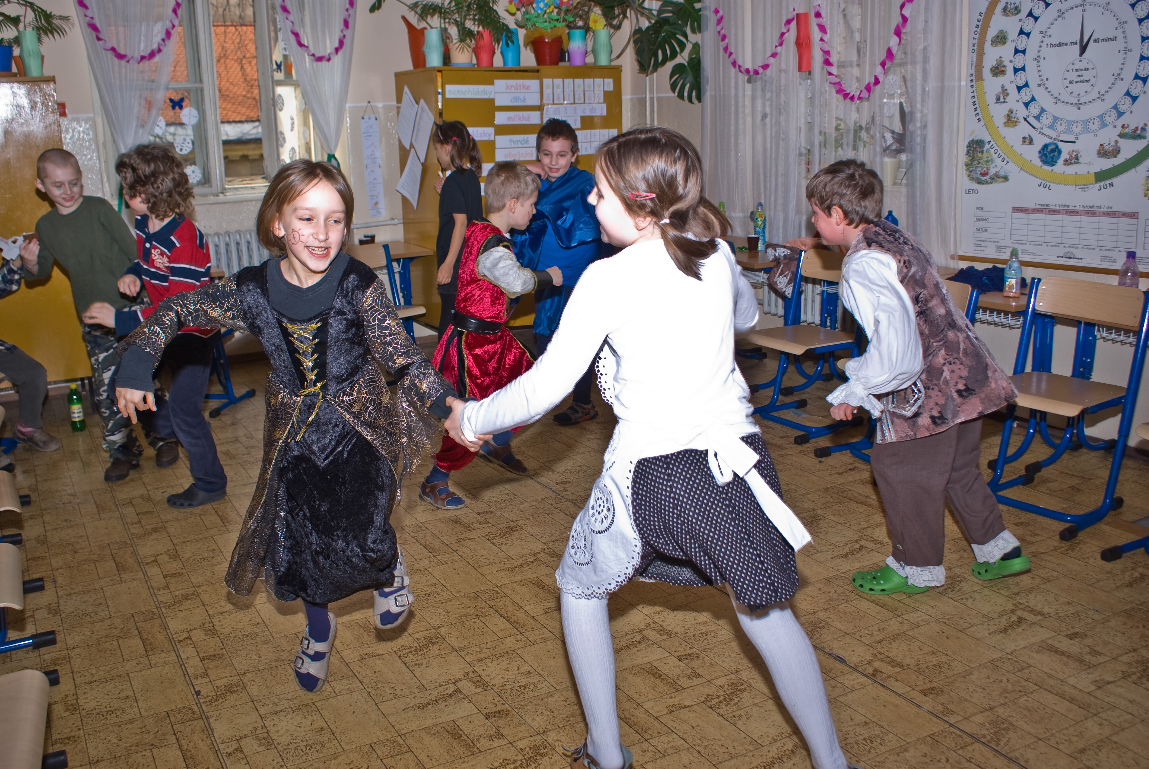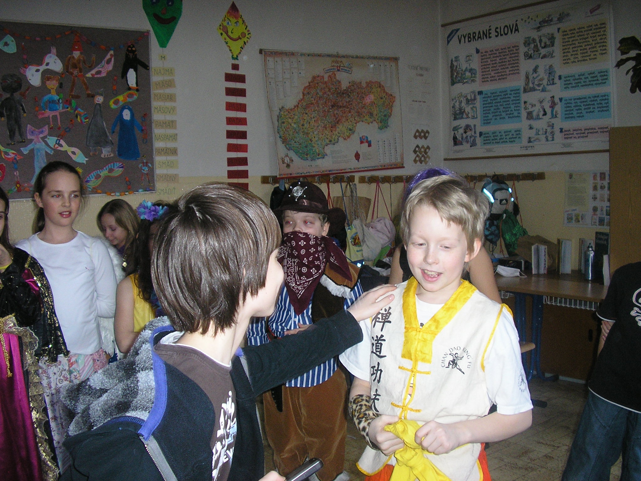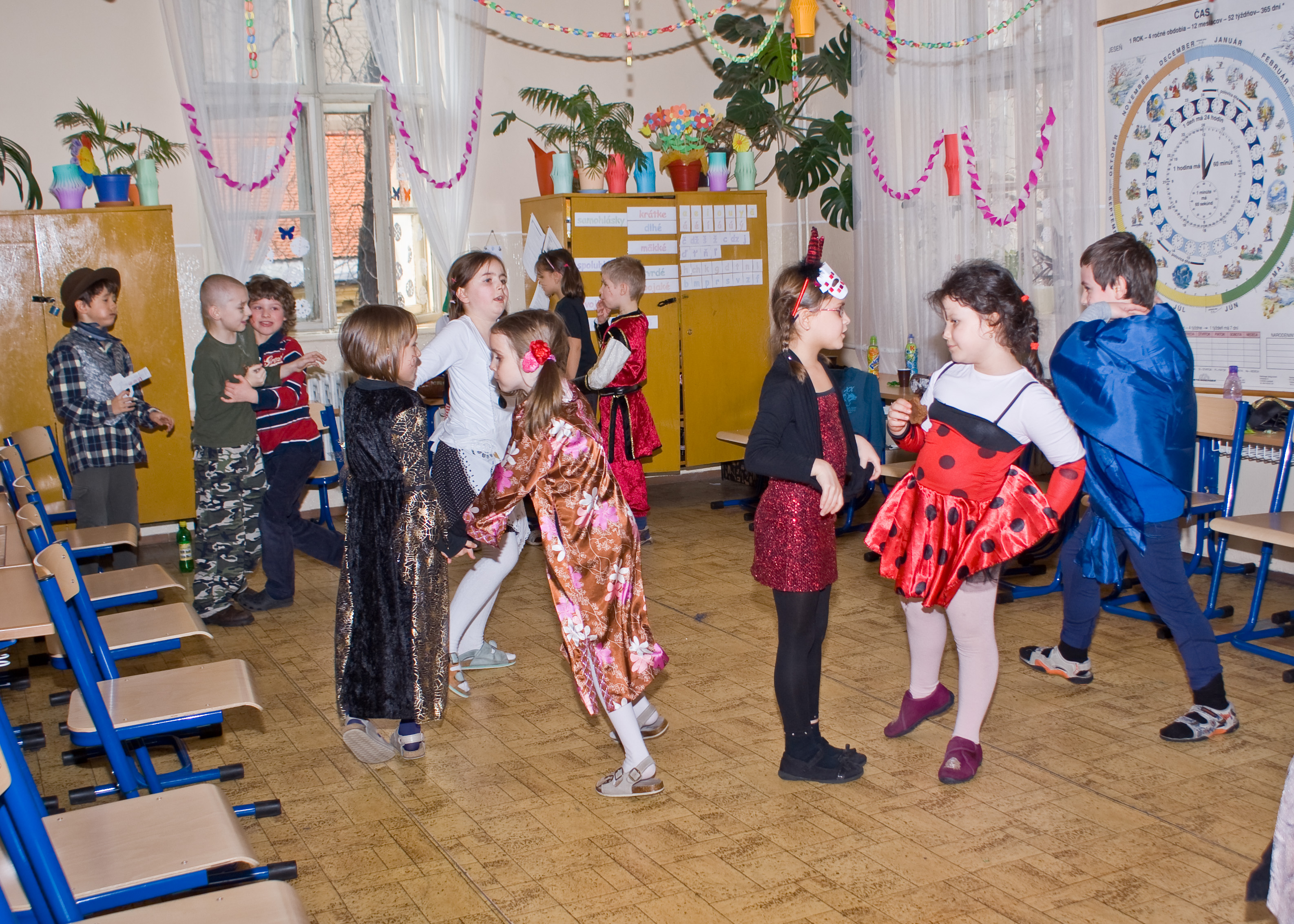 Na pár hodín sa z nich stali princezné, piráti, mačičky, ale aj mnohé iné zaujímavé postavy. Oddýchli si pri tanci a ochutnali množstvo dobrôt z dielní našich šikovných mamičiek. Karneval priniesol do našej školy veľa dobrej nálady a radosti.