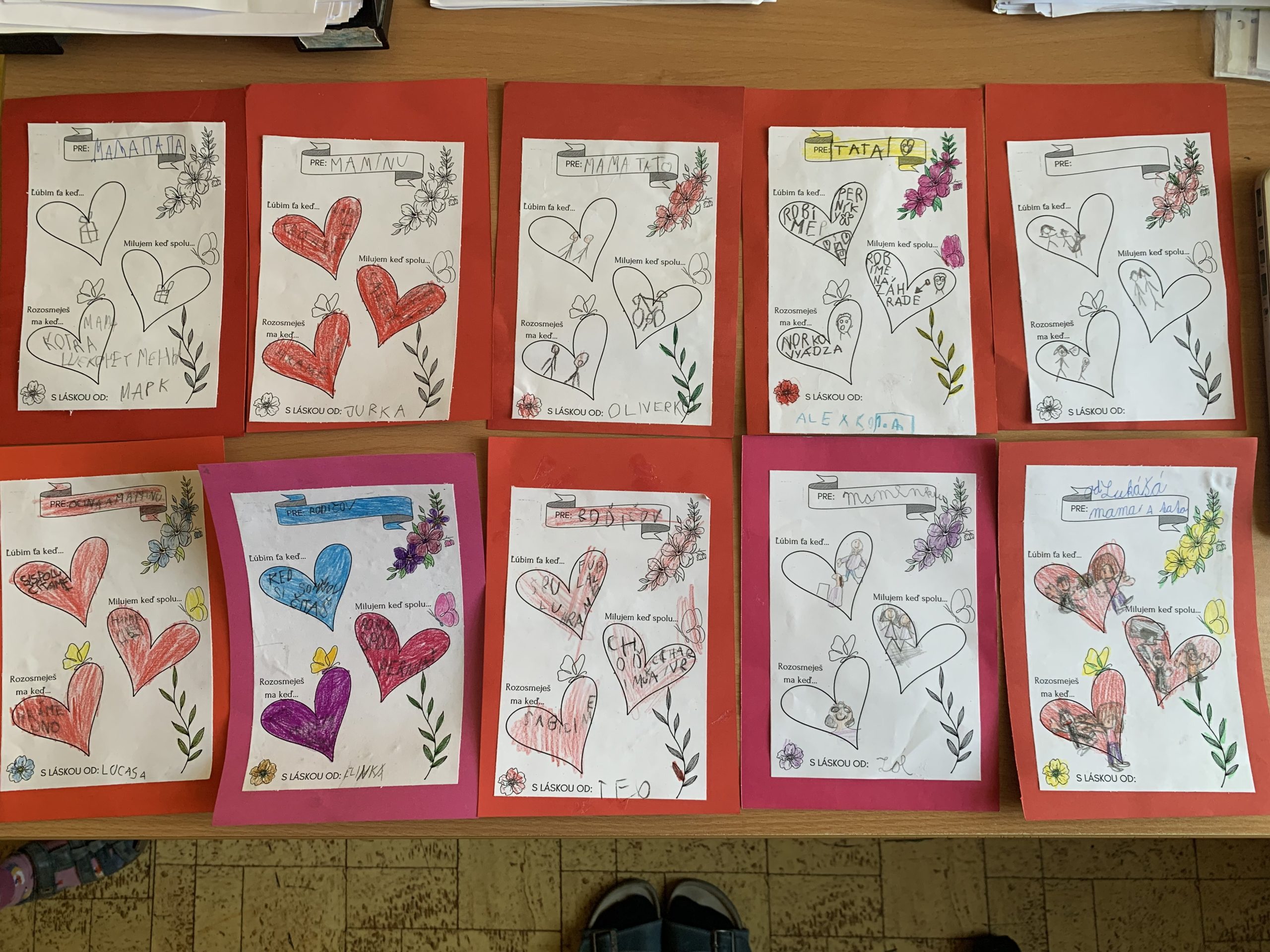 V mesiaci február žiaci prvého stupňa vytvorili množstvo krásnych vecí – téma bola valentínska a fašiangová. Písali a kreslili sa pohľadnice pre ľudí, ktorých majú radi, žiaci v 3.A dokonca ušili a ozdobili srdiečka pre rodičov. Prváci nezabudli ani na zvieratká v zime a venovali sa téme prikrmovania vtáčikov.