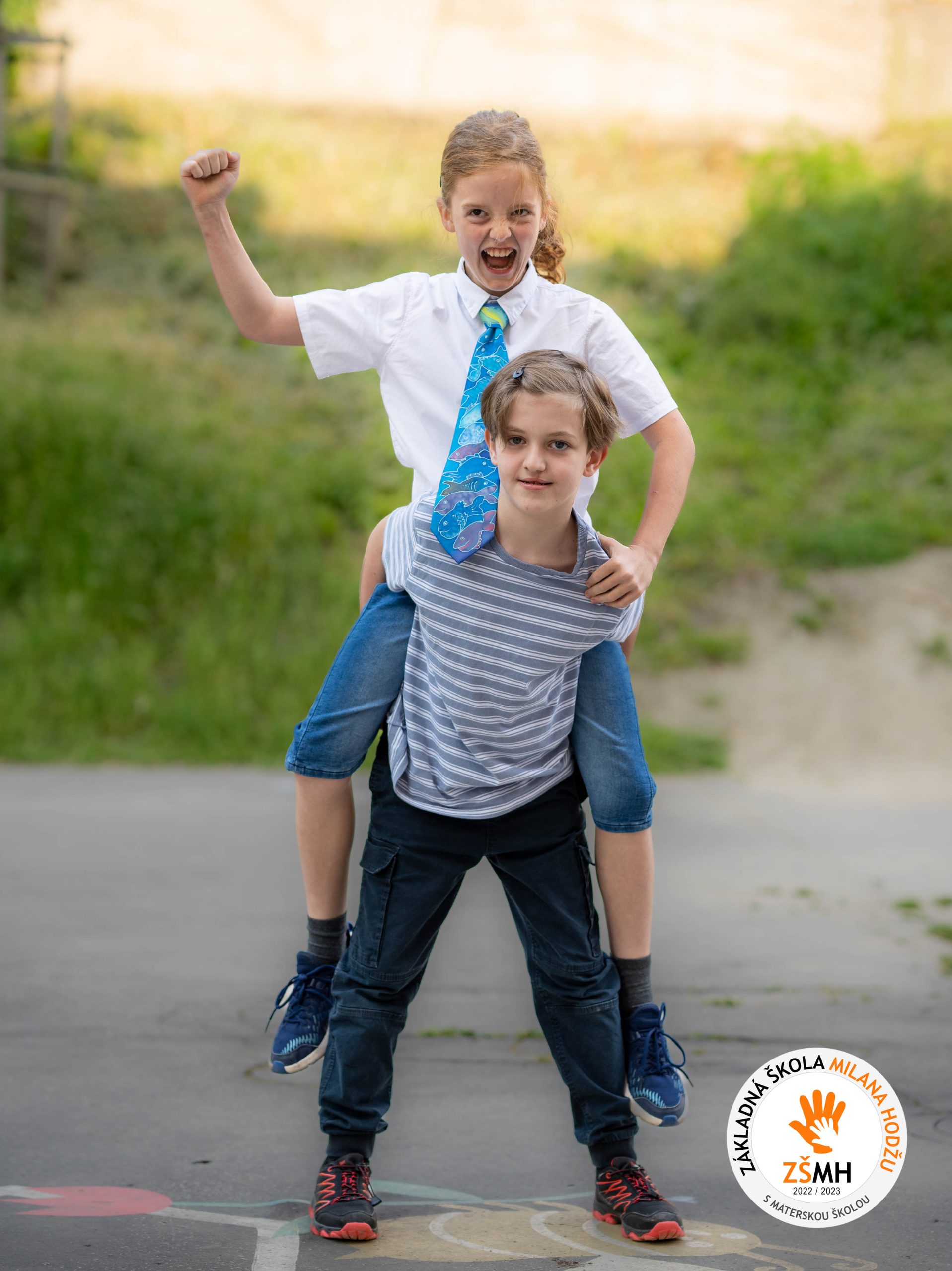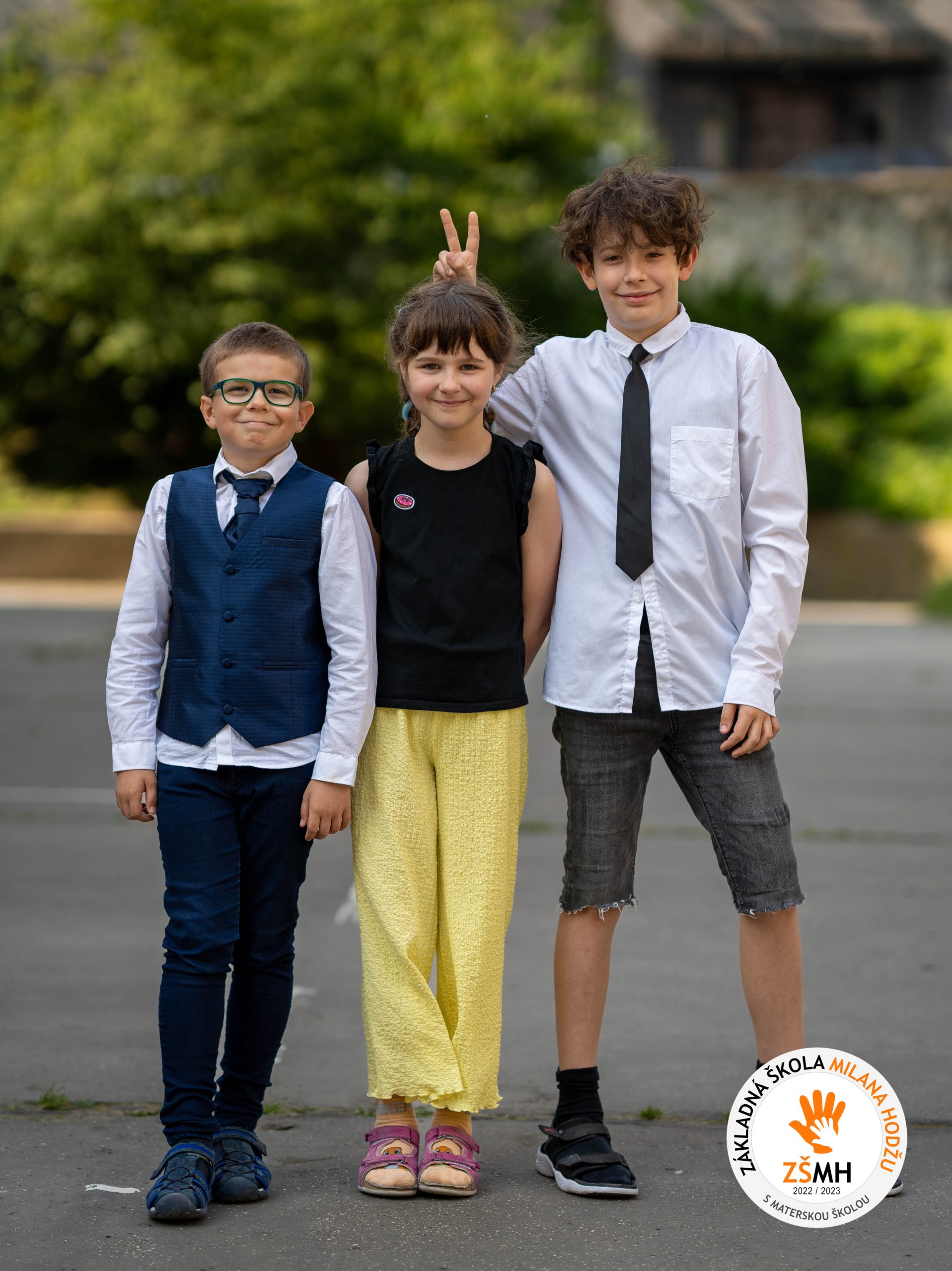 Spoločné a individuálne fotografie žiakov prvého stupňa z koncoročného fotenia v školskom roku 2022/2023.