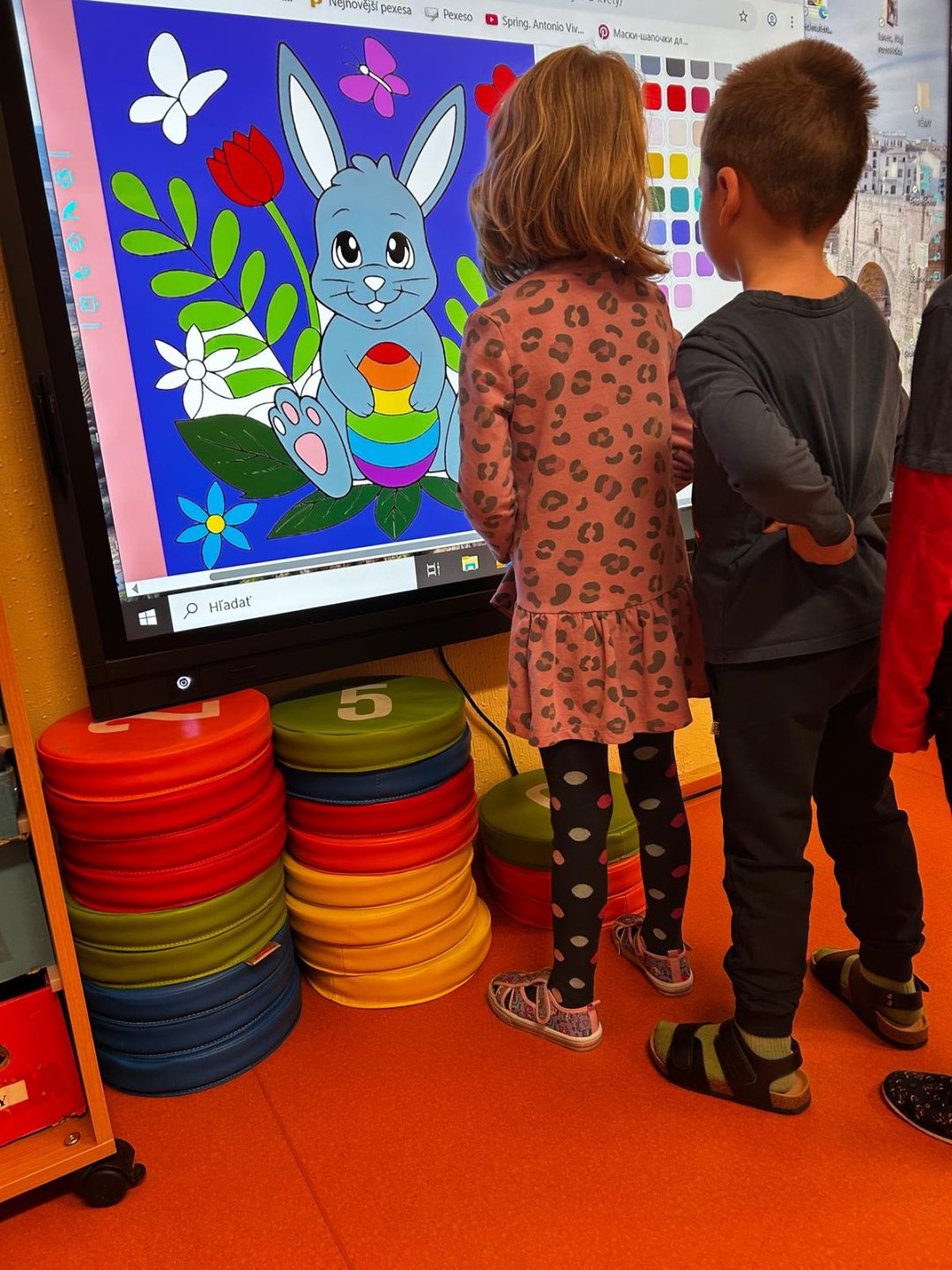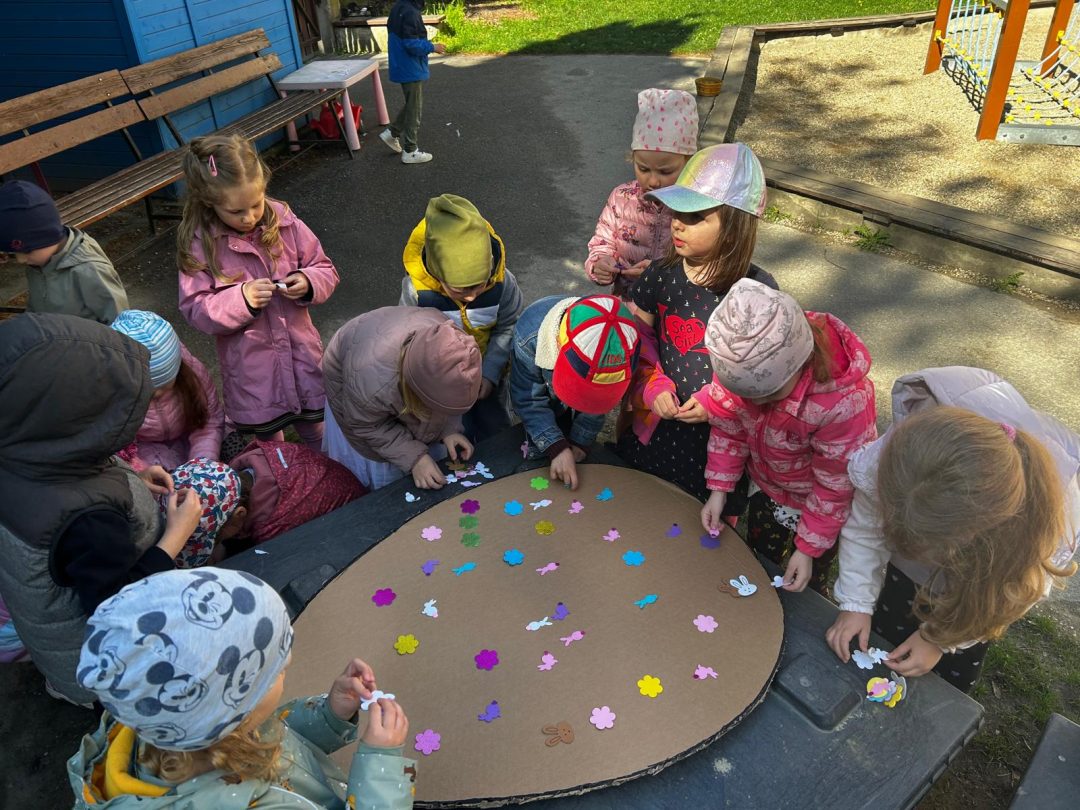 Pred Veľkou nocou čakalo našich škôlkarov v materskej škole prekvapenie v podobe veselého dňa plného tvorivých úloh. Po kine s veľkonočnou tematikou si spoločne s pani učiteľkami prečítali list od veľkonočného zajaca, v ktorom bolo napísané, aké úlohy deti čakajú. K týmto úlohám patrilo zdolanie cesty cez prekážkovú dráhu, zdobenie veľkonočných vajíčok kresbou kriedami, ozdobovanie veľkého veľkonočného vajíčka nálepkami, ktoré bolo treba najskôr pohľadať, a tiež hľadanie veľkonočných vajíčok. Na záver boli naši šikovní súťažiaci odmenení vrecúškom plným sladkých odmien. Deti odchádzali v tento deň domov plné zážitkov, ktoré svojim rodičom zvestovali hneď pri odchode z materskej školy.