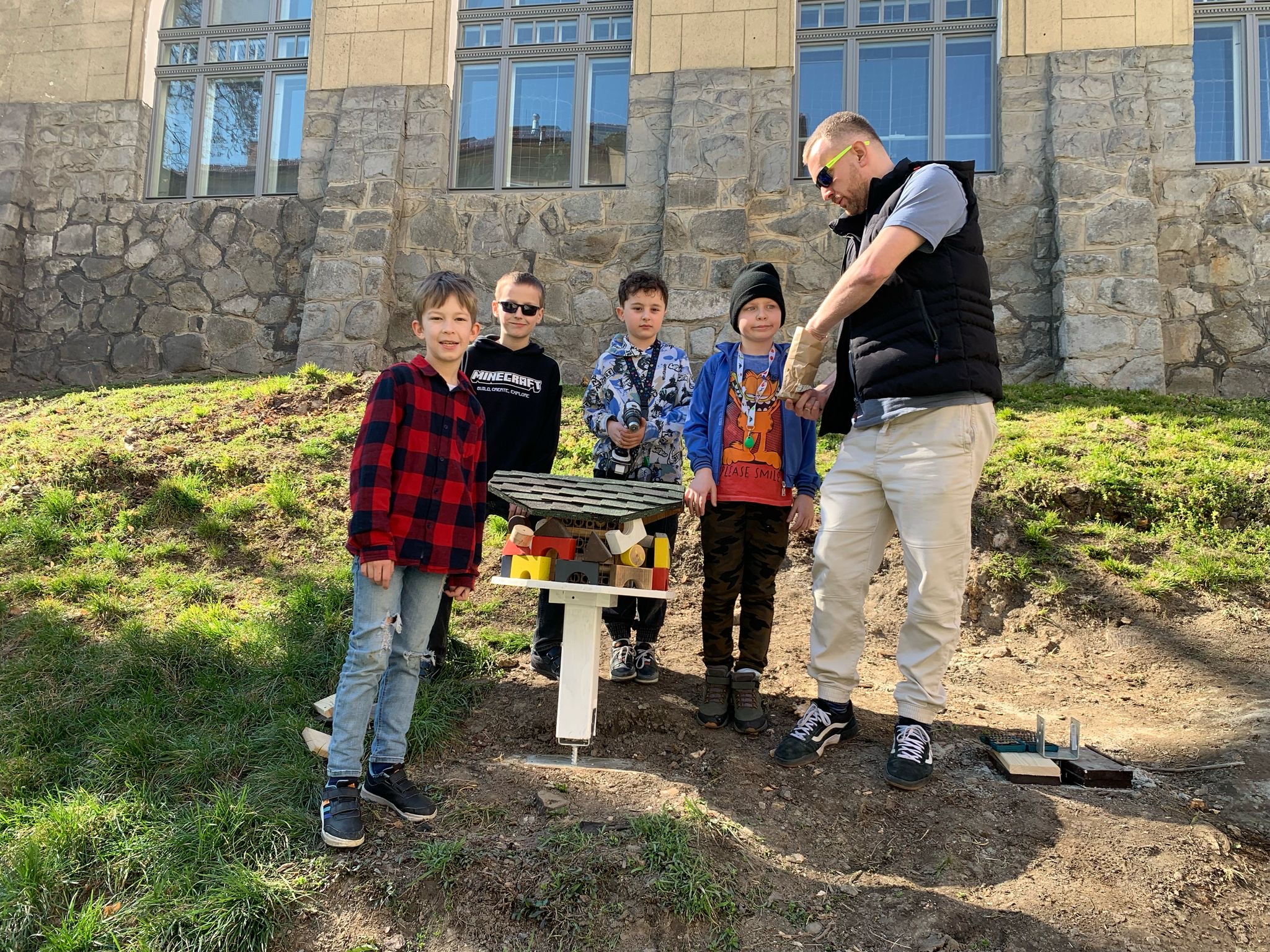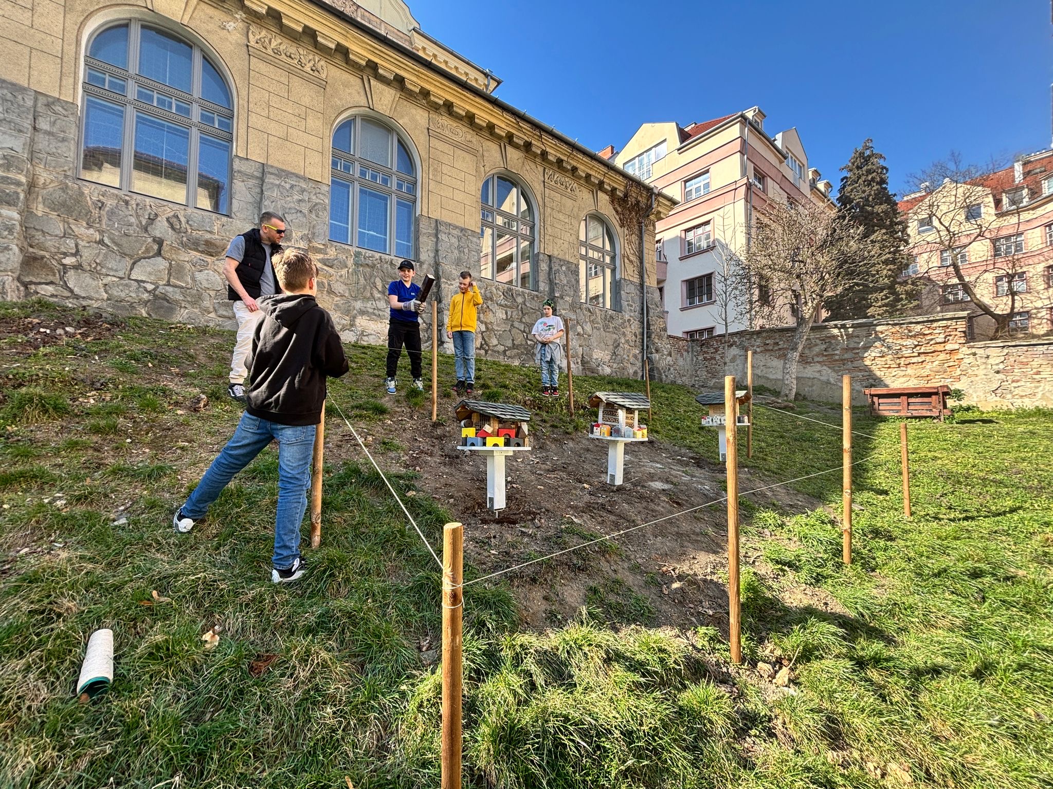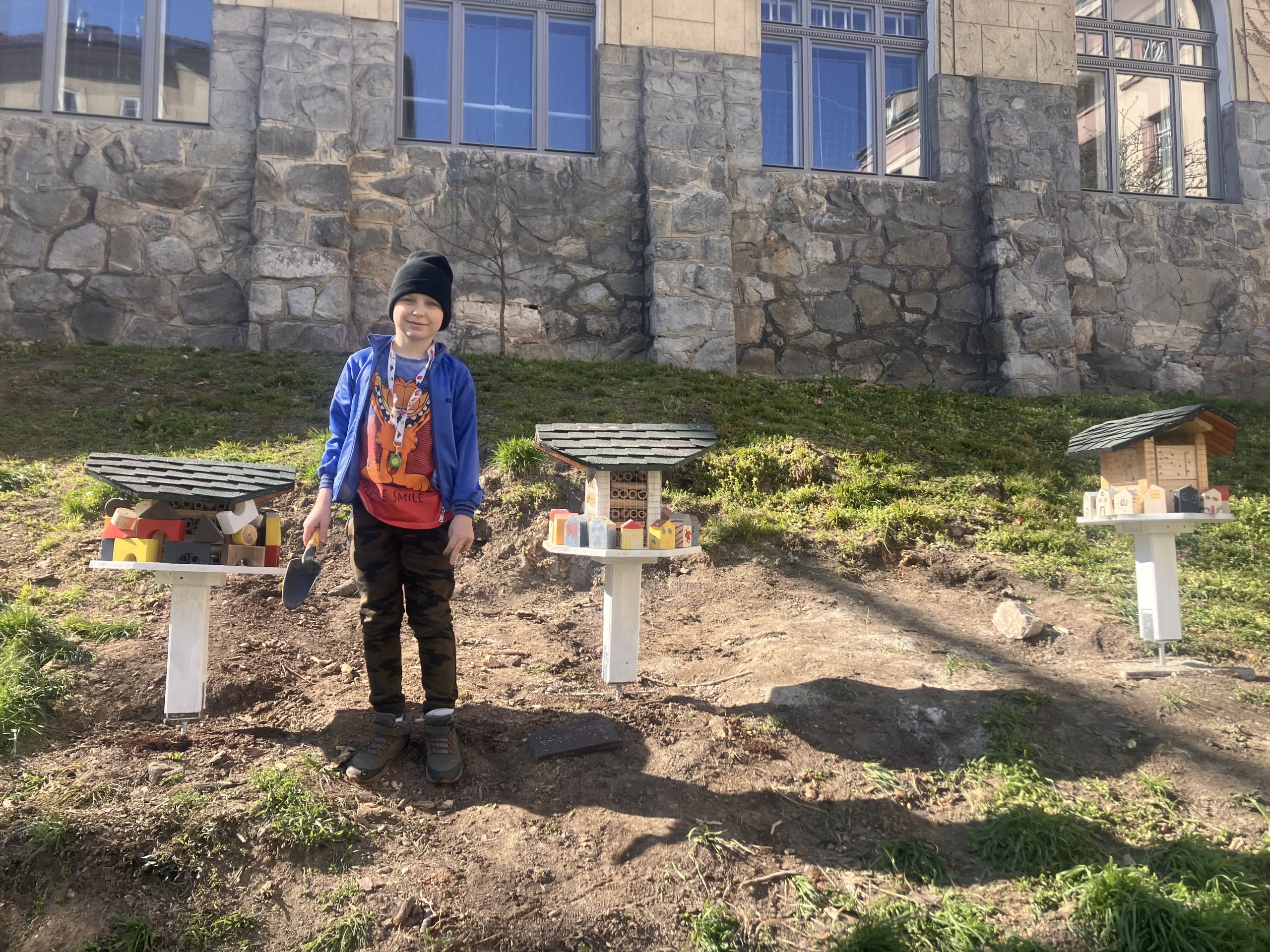 Už po štvrtýkrát sme sa ako škola zapojili do projektu Deti pre Bratislavu a opäť sme uspeli. Tentokrát s projektom Hmyzí rezort. Ide o jedinečný projekt, kde sme vytvorili hmyzie domčeky z recyklovateľného materiálu, akým je starý školský nábytok, europalety alebo rôzne odrezky dreva. Hotely pre hmyz sme osadili na svahu na školskom dvore prvého stupňa, ohradili ho a nasadili lúčne kvety. Práca to bola náročná, ale veľmi uspokojivá. Cieľom bolo pripraviť pre hmyz oázu, kde nájdu svoj bezpečný úkryt.