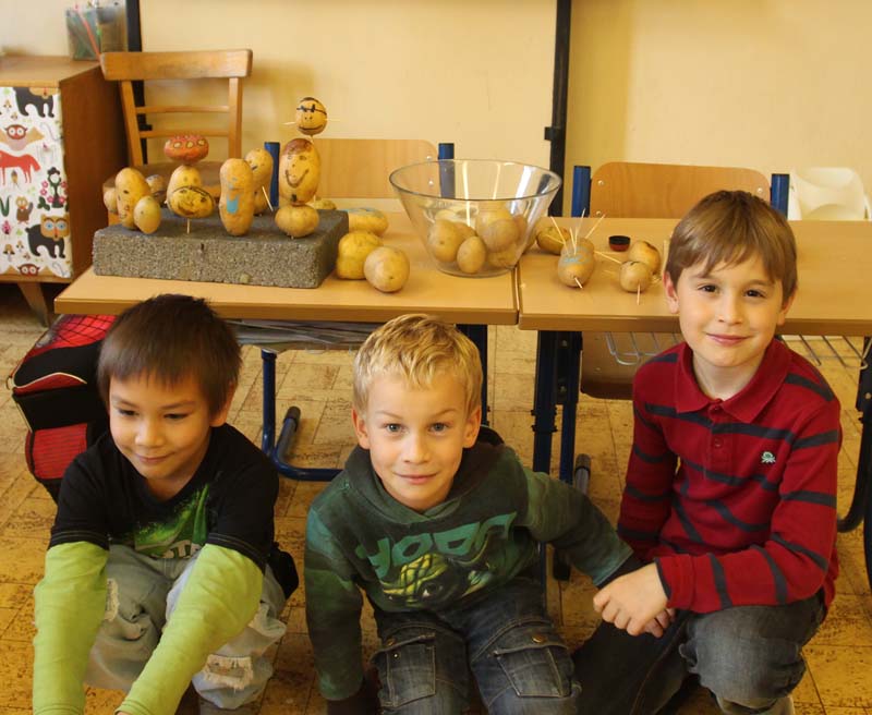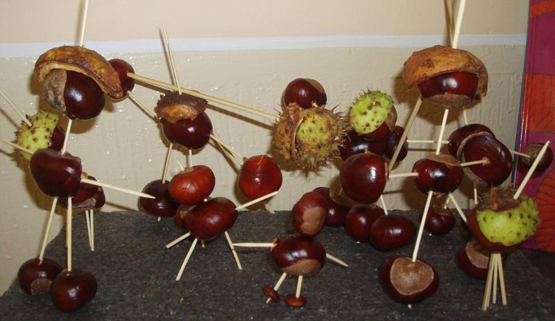 V príjemnej atmosfére nám pribúdali krásne výrobky – postavičky , zvieratká domčeky …Vďaka všetkým šikovným rukám sme mohli v jednotlivých oddeleniach vytvoriť farebnú jesennú výstavku.