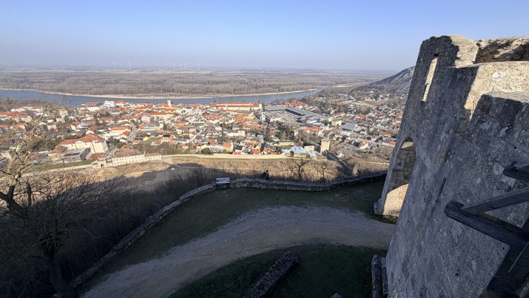 Z Hainburgu sme sa vydali k zrúcanine hradu Schlossberg, odkiaľ sa nám otvorili krásne výhľady na okolie. Trasa nás následne zaviedla cez pokojnú dedinku Wolfsthal až k ruine pohraničnej pevnosti Pottenburg.