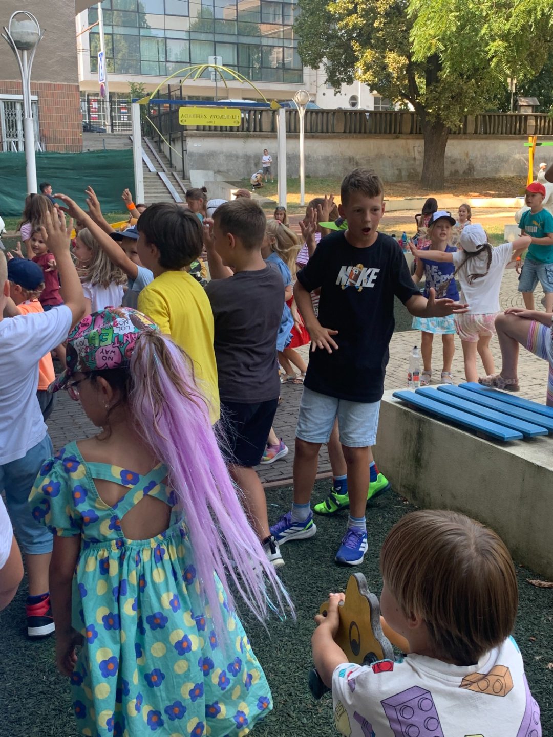 Žiaci v ŠKD si užili zábavné tanečné popoludnie na podujatí Hurá škola v Slubekovej záhrade pod taktovkou obľúbeného DJ-a Martina Žáka z divadla Agapé. Okrem tanca využili deti slnečné počasie aj na rôzne hry a spoločné šantenie.