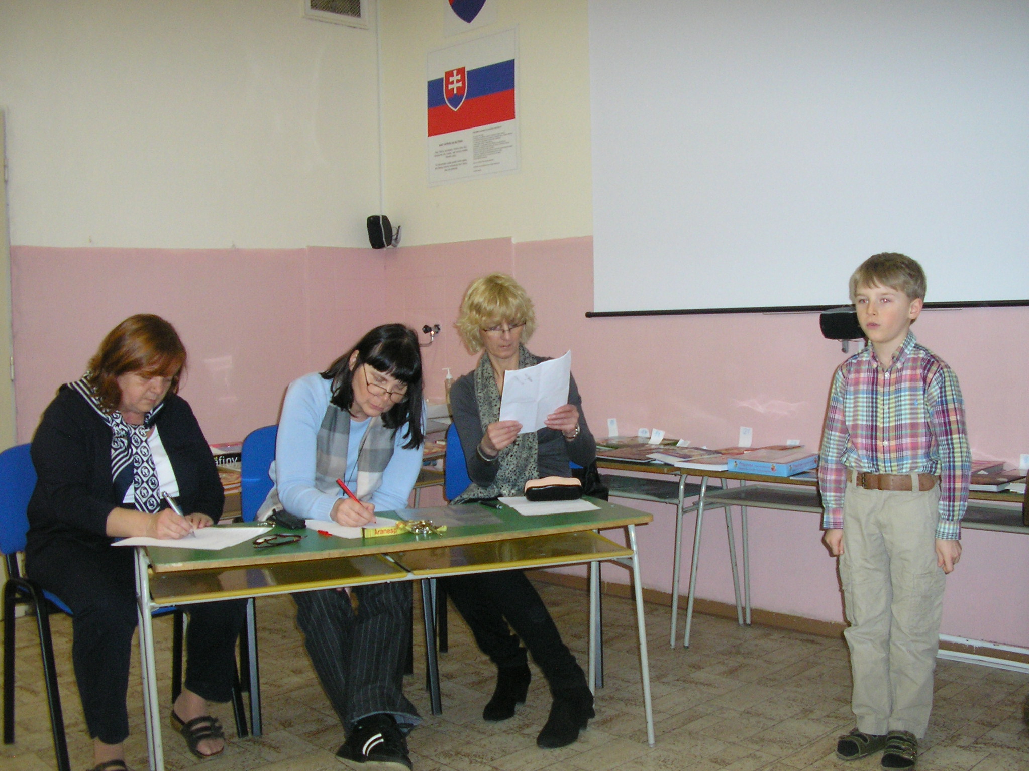 Na 1. stupni sa zúčastnilo 22 detí. V prednese poézie súťažilo 15 žiakov a v prednese prózy 7 žiakov.