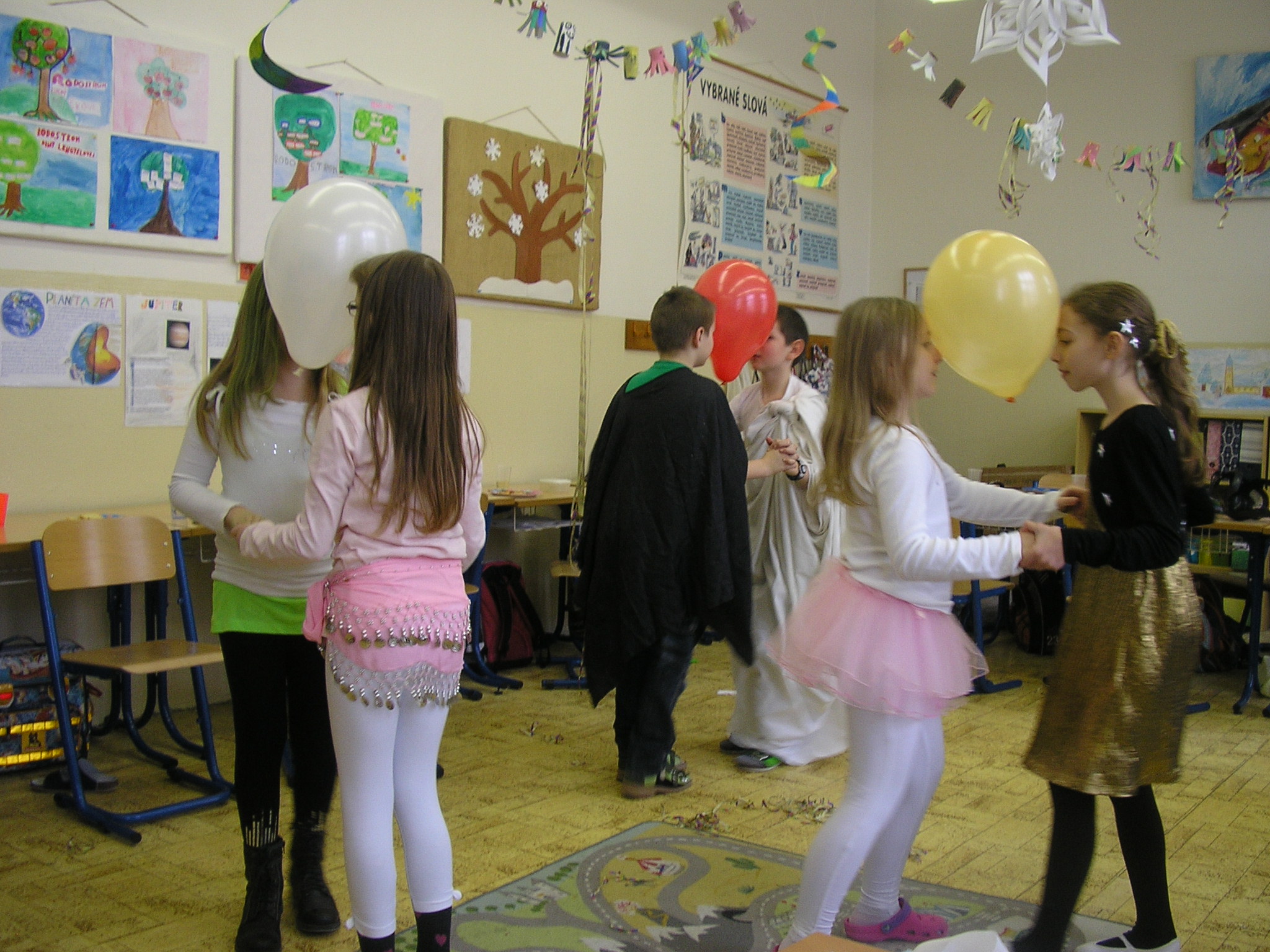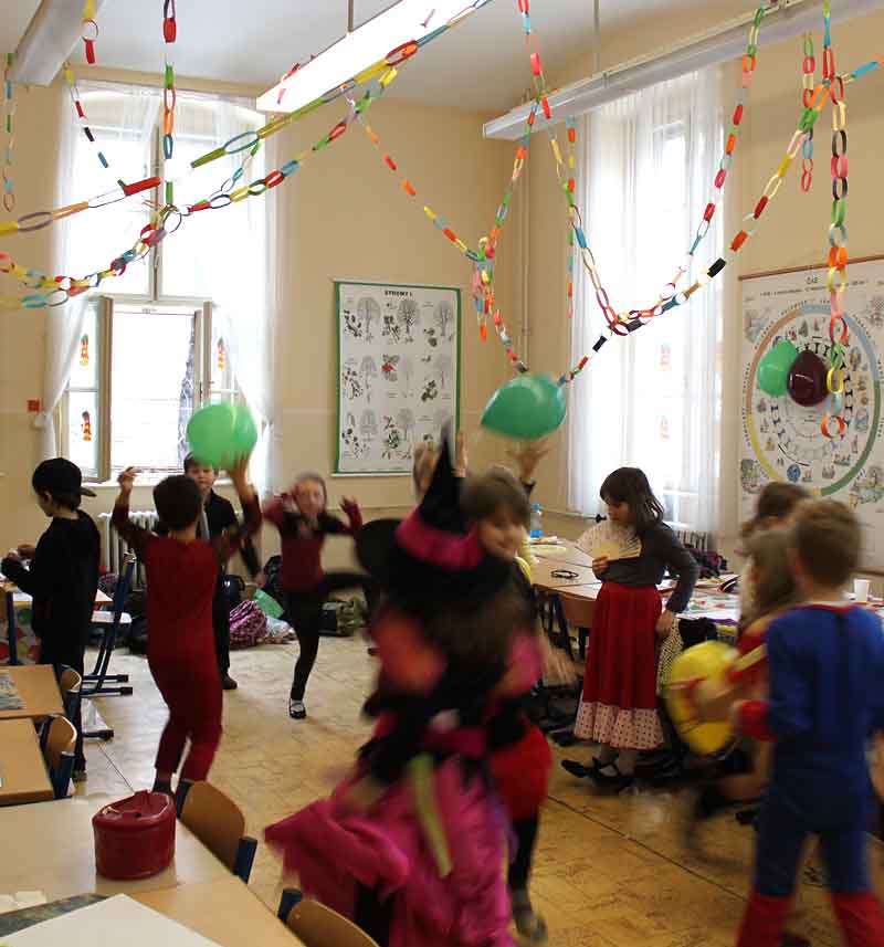 Predchádzali mu veľké prípravy – výzdoba tried, výroba masiek a naplánovanie programu. Deti si dali záležať hlavne na výbere masiek. Zavítali medzi nás rôzne rozprávkové bytosti. Prišli ježibaby, víly, princezné, ale aj kovboji, šašovia, vojaci a mnoho iných masiek. Všetci sa veselo zabávali, šantili, súťažili a tancovali. Nezabudli sme ani na dobroty, ktoré neodmysliteľne patria ku každej fašiangovej zábave. S pohostením nám pomohli maminky a babičky. Ale všetko pekné sa raz musí skončiť a tak to inak nebolo ani u nás.