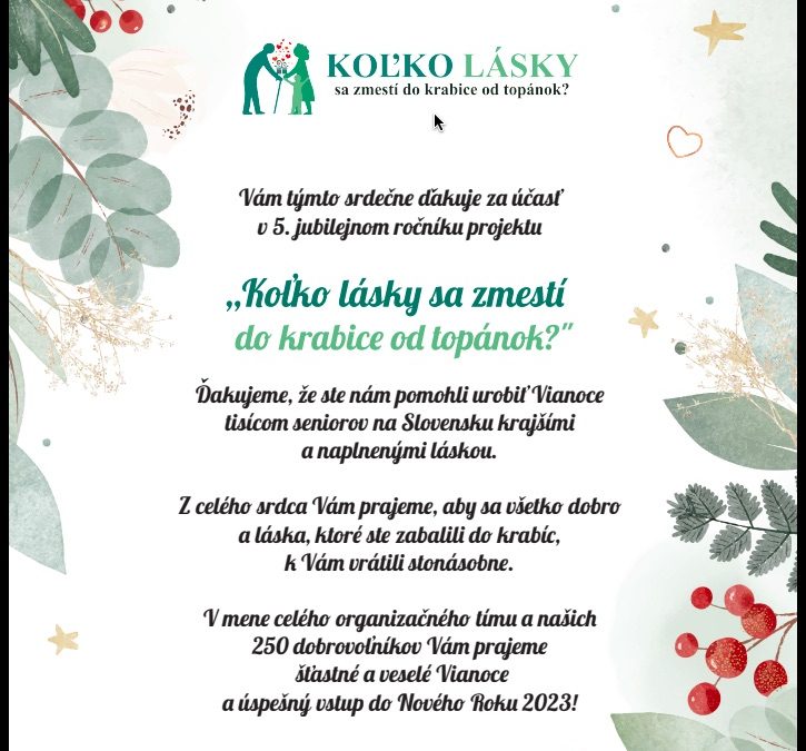 v mene celého kolektívu, ktorý zastrešuje skvelú zbierku „Koľko lásky sa zmestí do krabice od topánok?“,