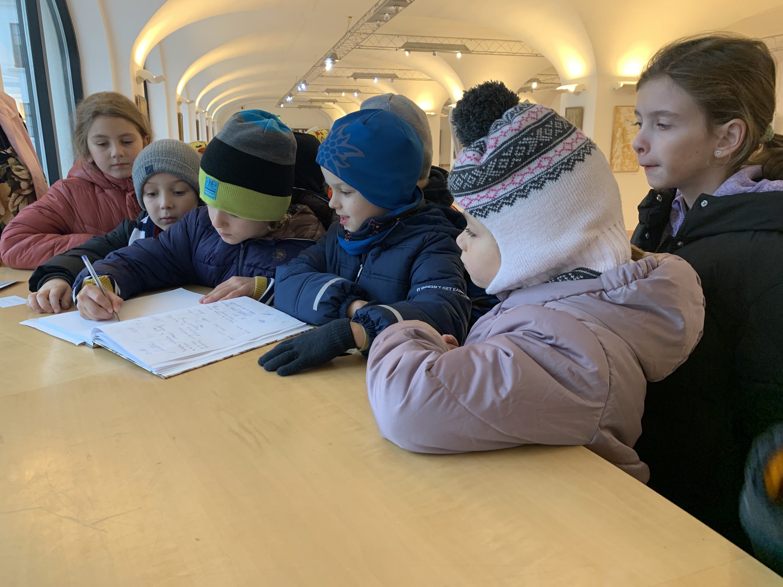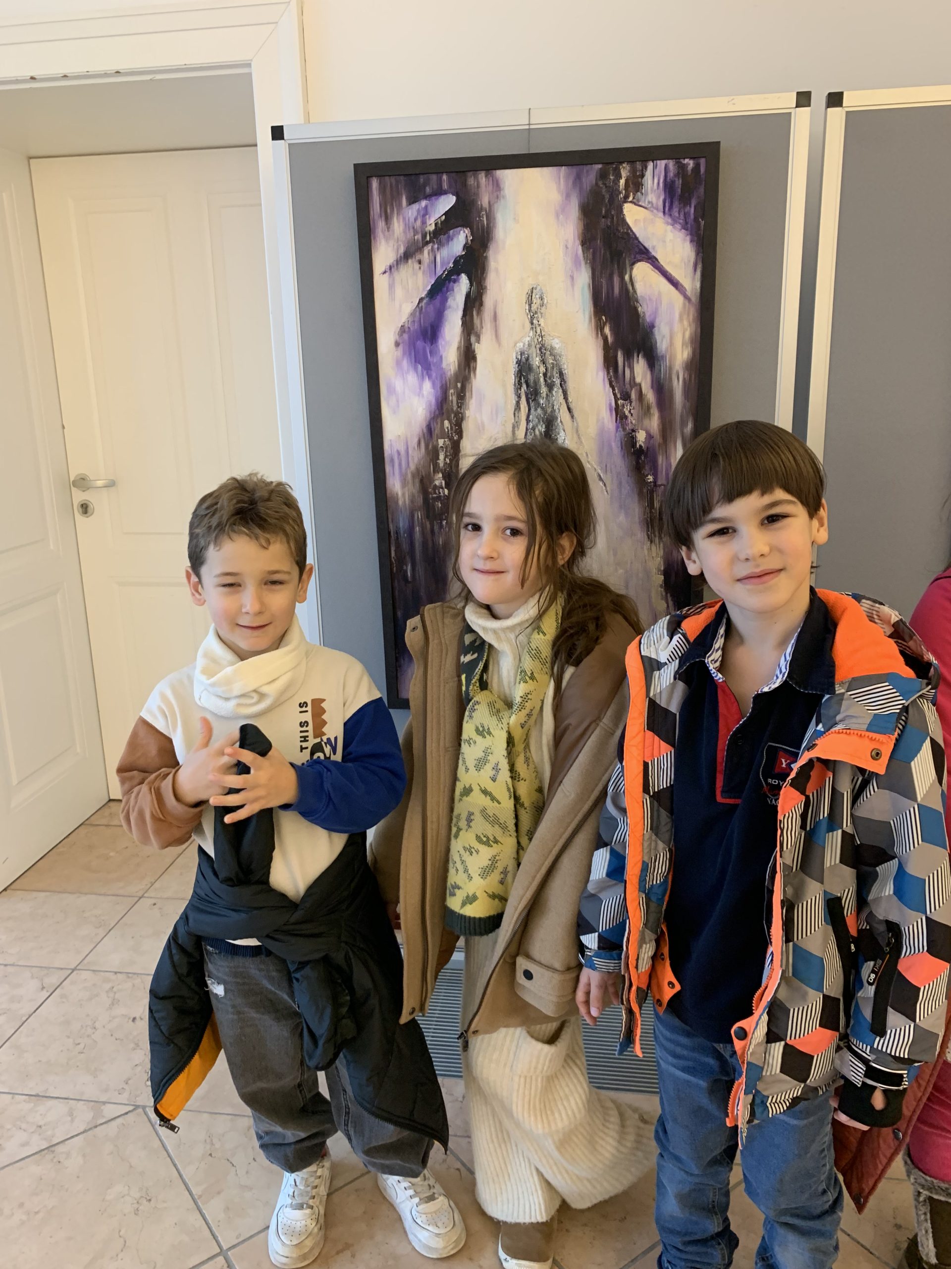 Prváci využili novembrové popoludnie na návštevu výstavy Kontúry života v galérii na Bratislavskom hrade. Figuratívne obrazy autorky Ivany Záleskej žiakov zaujali – hľadali v nich anjelov či niekoho, koho poznajú.