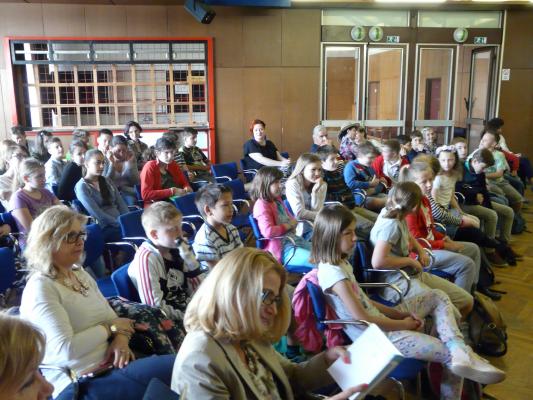 Pani Lena Riečanská, ktorú si žiaci 4.A vybrali v rámci projektu Náš spisovateľ, ich pozvala na krst svojej novej novej knižky Soňa, čo sa deje?