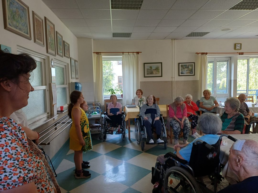 Kvety a kytice zdobili naše pozdravy, ktoré sme v rámci projektu Láska kvitne v každom veku, vyrábali pre seniorov. Pozdravy s prianím sme im aj osobne odovzdali. Radosť bola na každej strane. Krátkym kultúrnym programom sme im spríjemnili dopoludnie. Tešíme sa na ďalšie spoločné stretnutia.