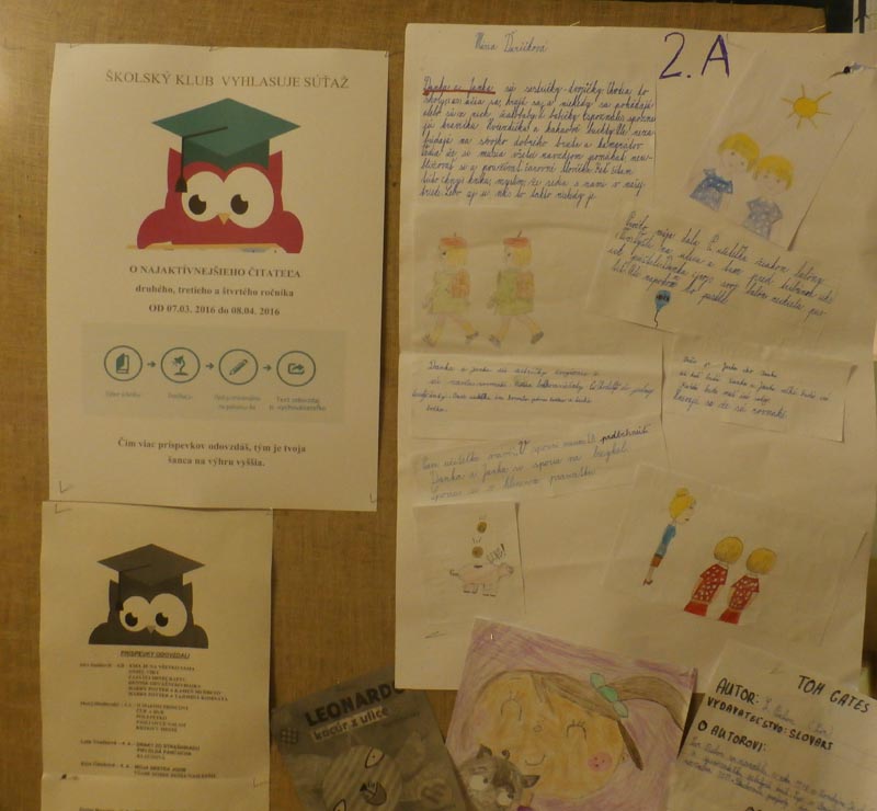 Deti sa zapojili do klubovej súťaže O najaktívnejšieho čitateľa, kde pravidelne posielali svoje príspevky s ilustráciami. Tie boli zasielané do celosloveskej súťaže Vráťme knihy do škôl a najkrajšie sme vystavili v priestoroch školy. V klube prebiehalo čítanie z rozprávkových kníh a prezentácie obľúbených diel. Samozrejme, na záver nechýbali vecné a sladké odmeny.