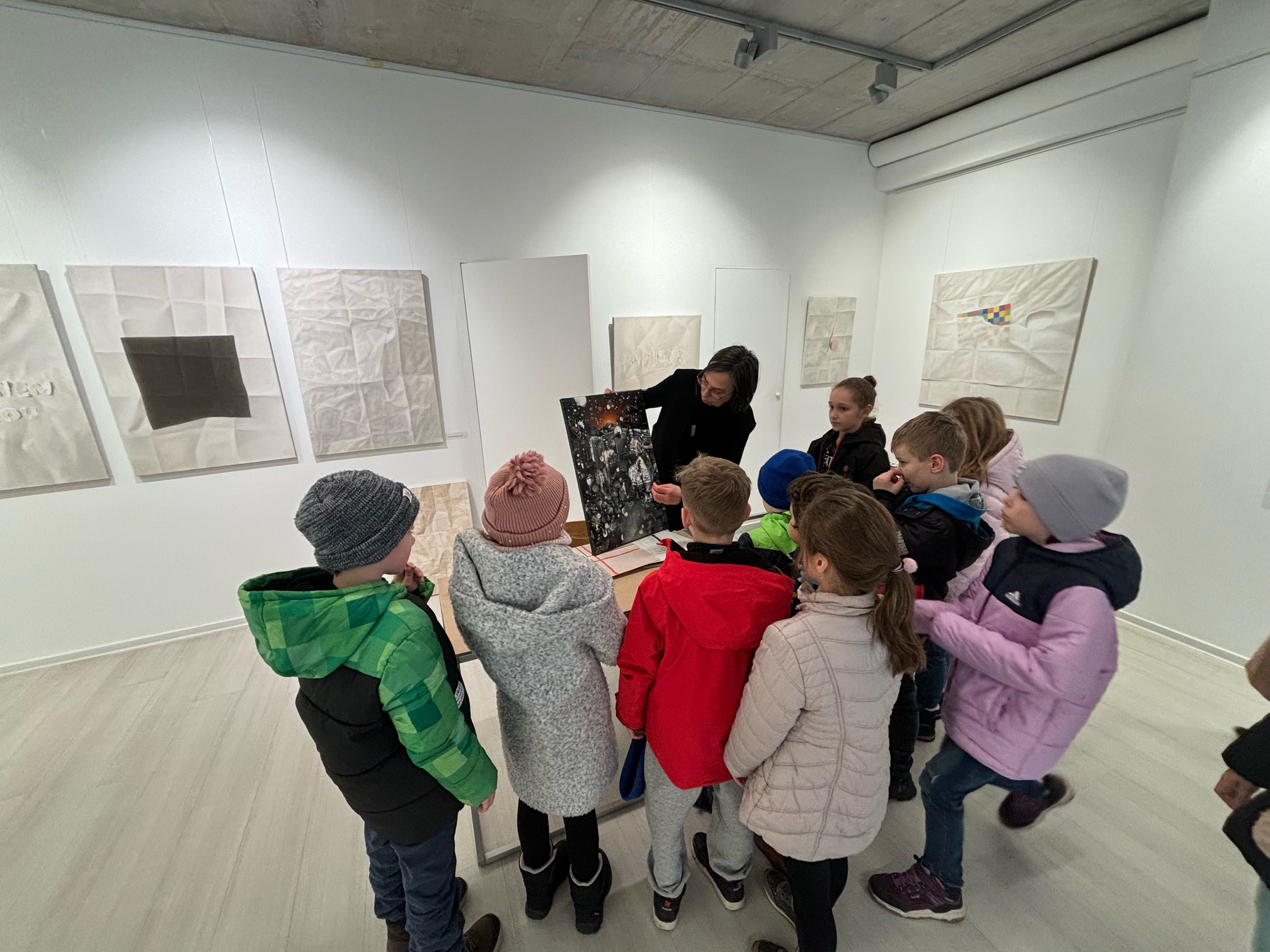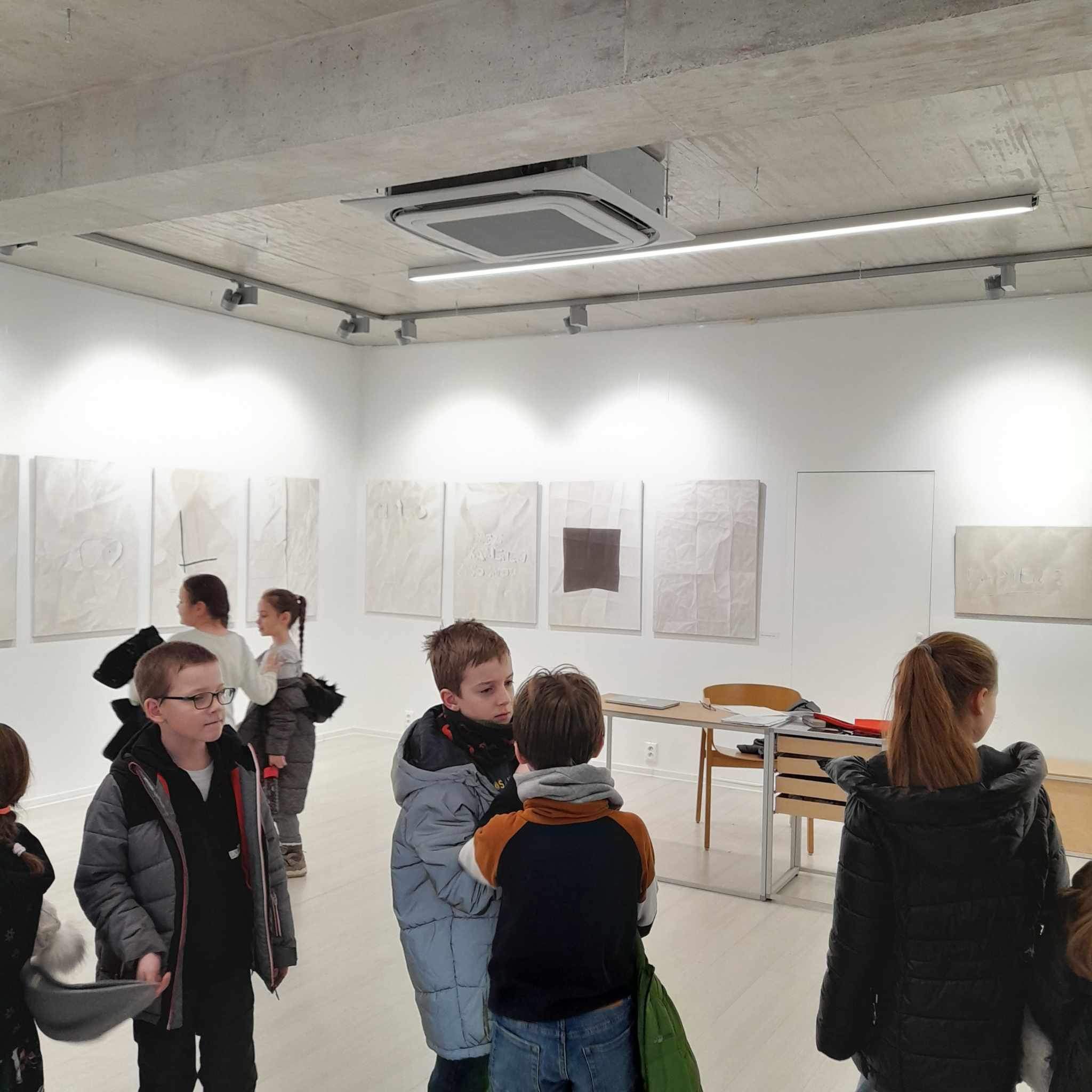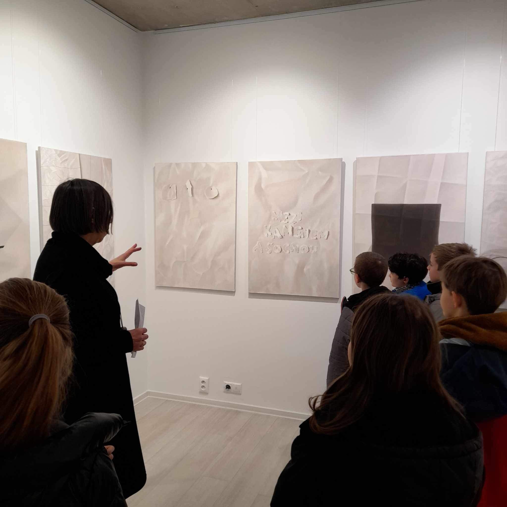 V mesiaci február navštívili prváci, druháci a tretiaci výstavu Milana Bočkaya v galérii ČIN ČIN. Žiaci mali možnosť vďaka profesionálnemu výkladu obdivovať 20 olejomalieb, ktoré iluzívne zobrazujú rôzne stavy papiera (viac či menej pokrčeného, poskladaného, prehnutého) s prípadnými zásahmi či citáciami.