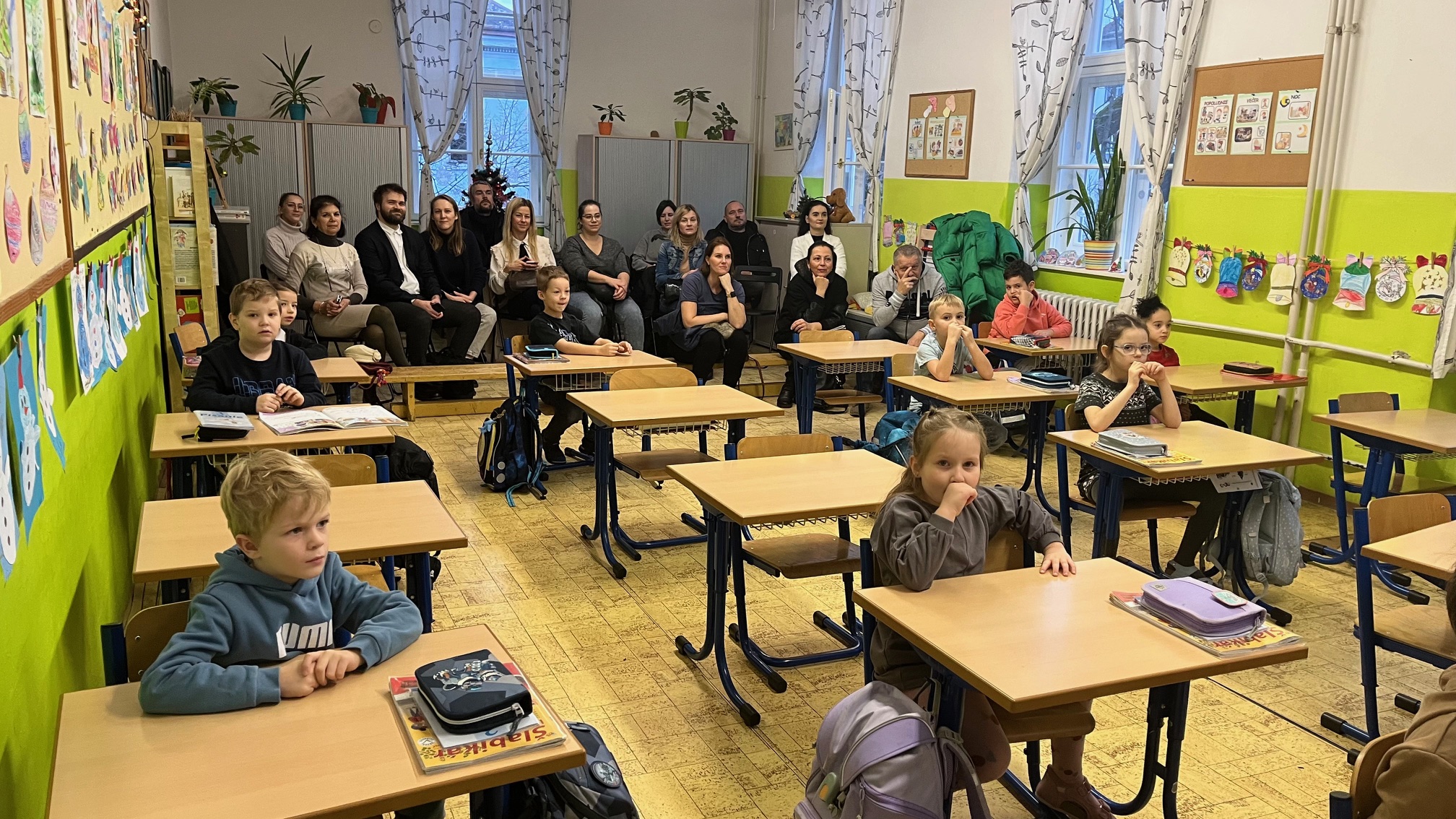 V triedach prvého ročníka pani učiteľky pripravili metodický deň, ktorého cieľom bolo formou komentovaného vyučovania slovenského jazyka, priblížiť rodičom, ako deti na hodinách pracujú. Po skončení sa všetci stretli v telocvični, kde na nich čakalo prekvapenie. Členovia skupiny Rytmika pre nich pripravili hudobno – rytmicko – pohybové interaktívne predstavenie. Deti spolu s rodičmi bubnovali a spievali. Všetci sa dobre zabavili a príjemne spoločne strávili dopoludnie v škole.