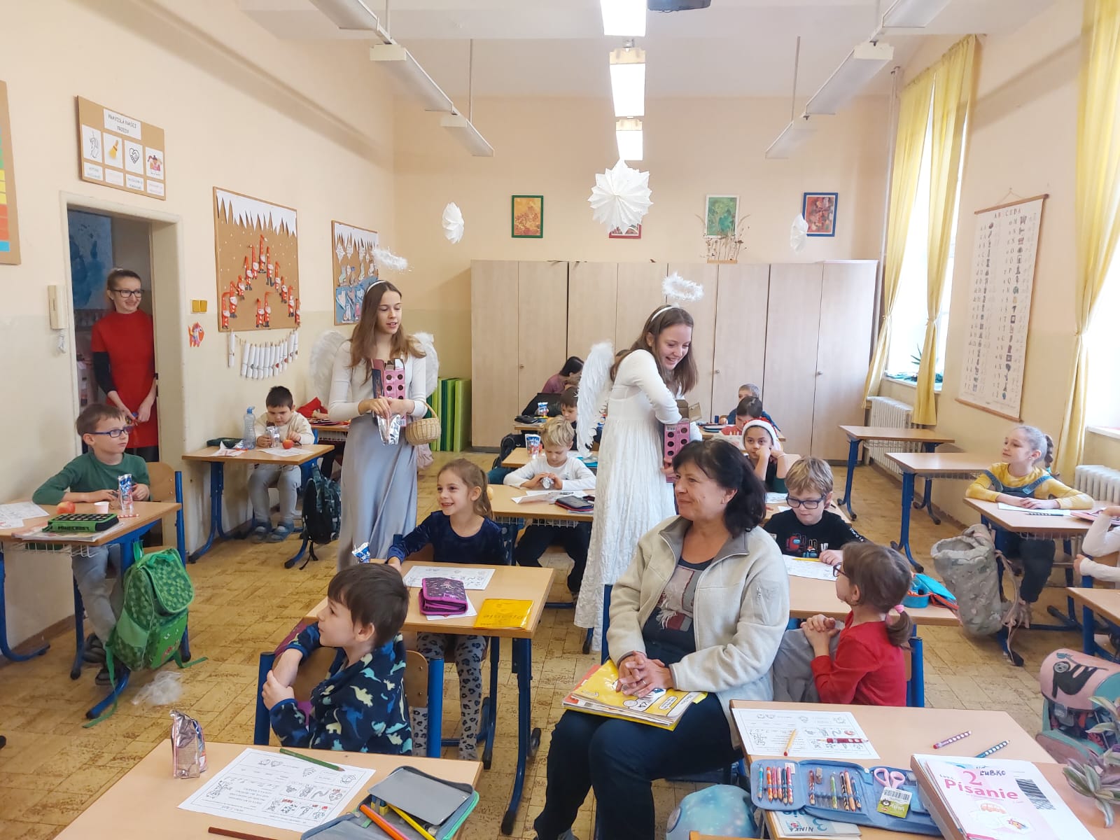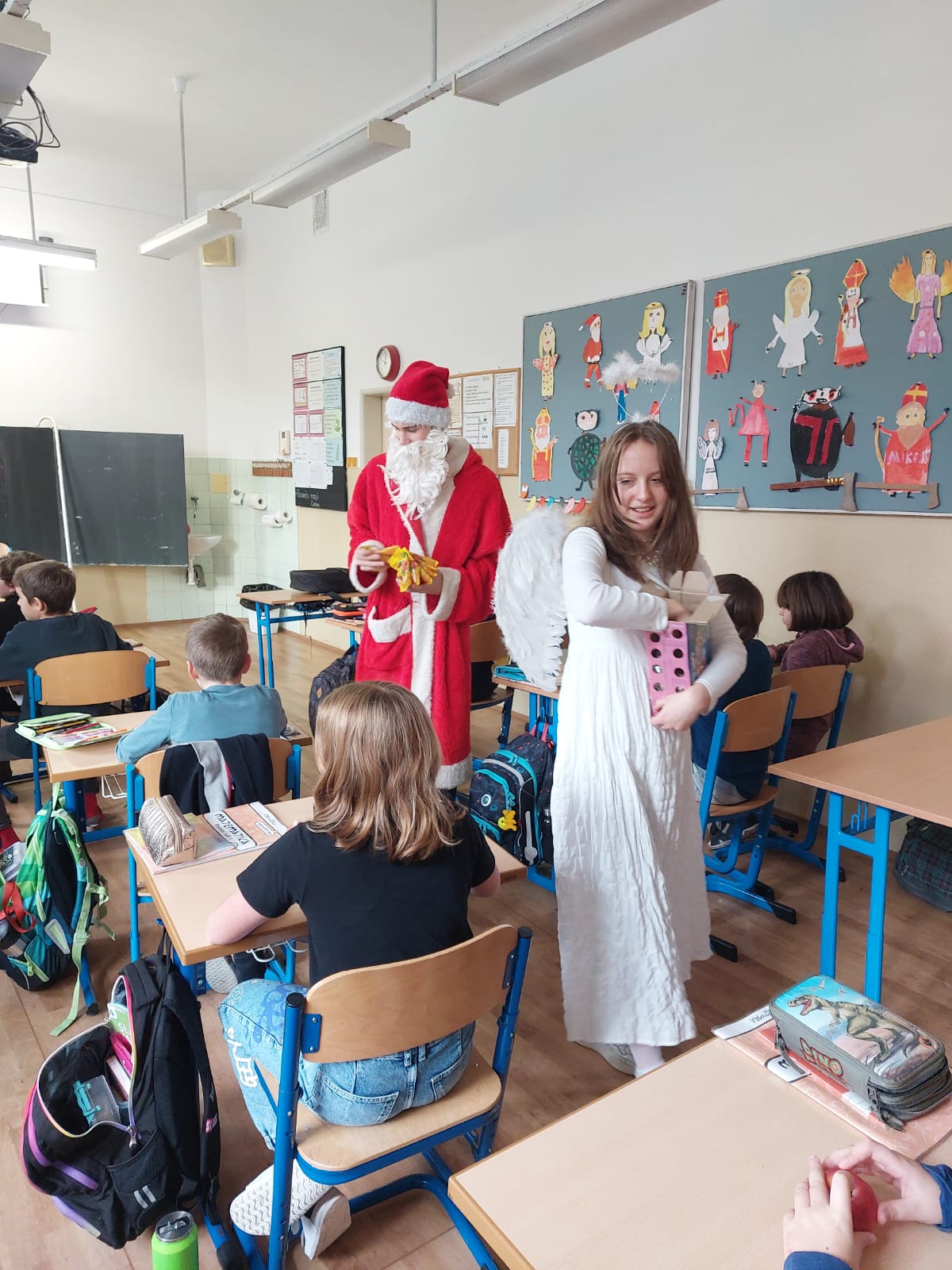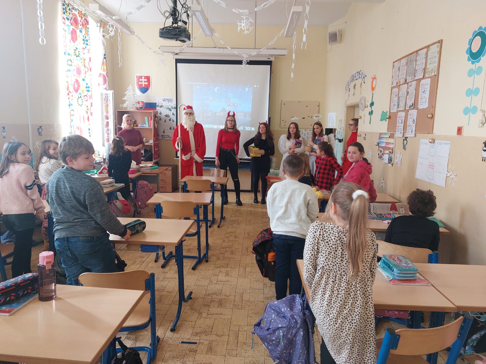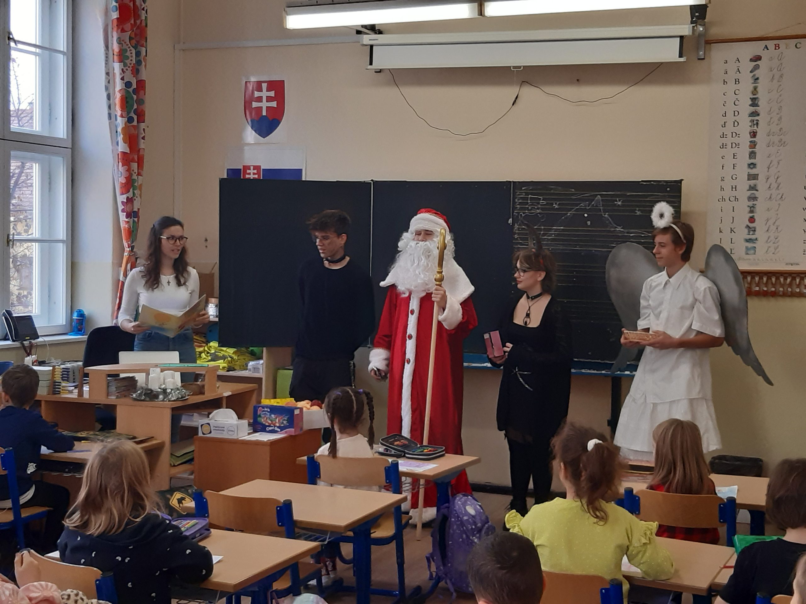 Navštívili deti v ŠKD, žiakov na prvom stupni, potom sa presunuli pozdraviť aj žiakov na druhom stupni.