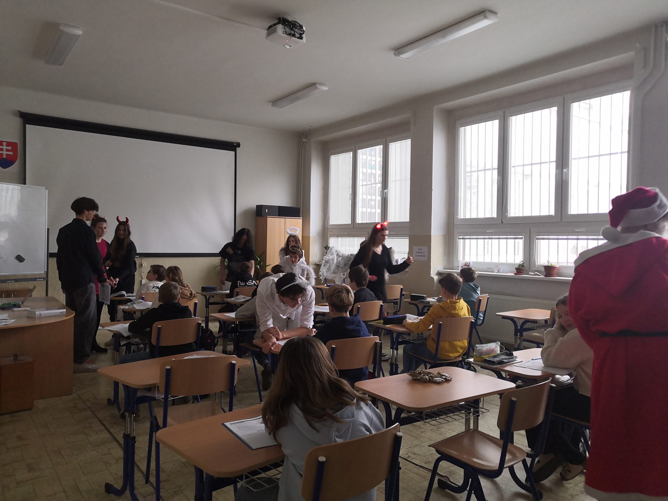 Ráno sme sa zobudili do krásneho zasneženého dňa, všetko sa zdalo akési tiché, magické a zrazu sme v škole počuli: „Cŕŕŕ, ho, ho, ho!“