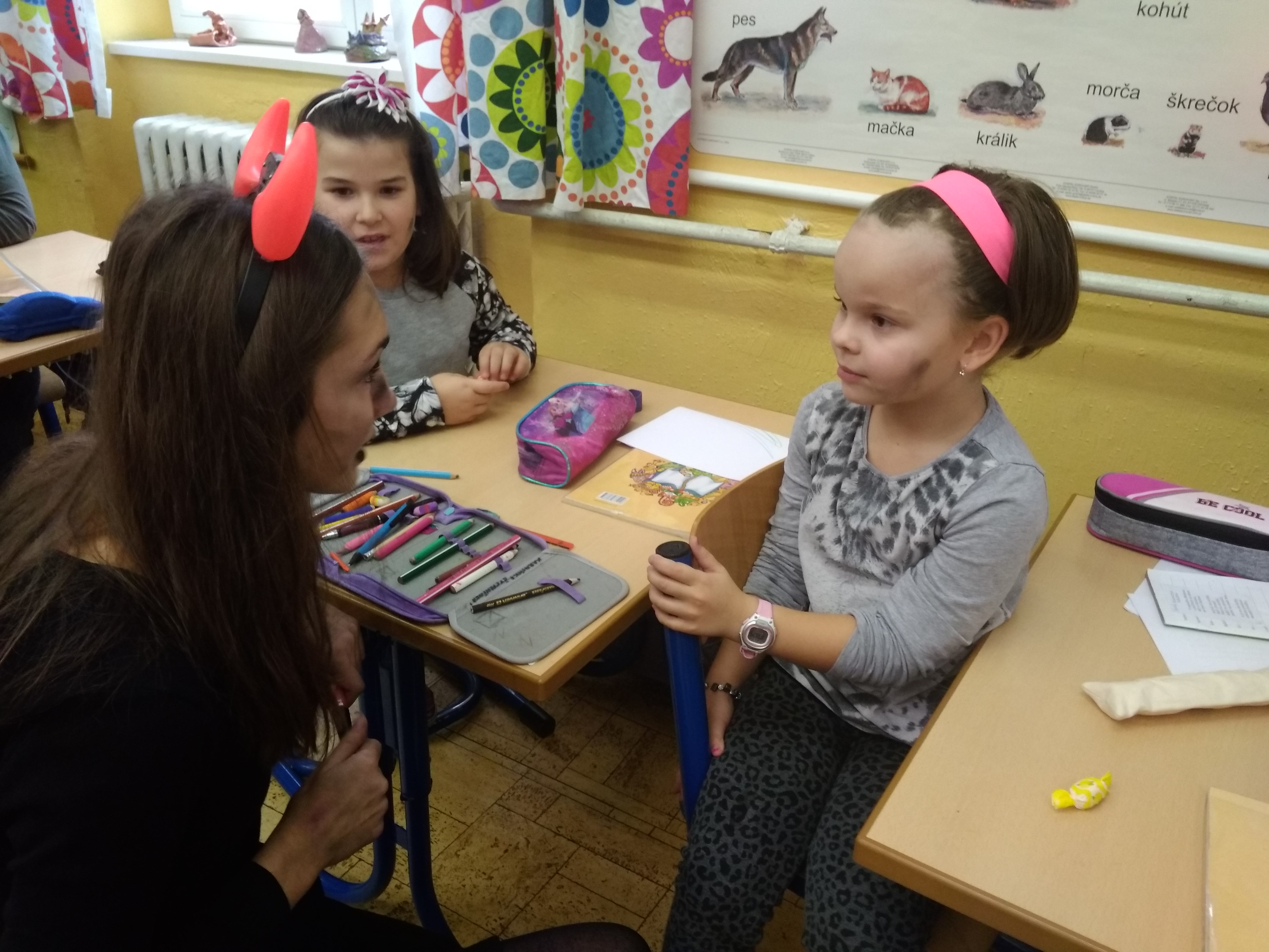Množstvo čertov a anjelov z mikulášskeho sprievodu navštívilo všetky triedy našej školy, nezabudli ani na našich najmenších škôlkarov. Návšteva sa tradične nezaobišla bez smiechu, hluku, dobrej nálady, básničiek a pesničiek. Poslušné aj menej poslušné deti odmenil Mikuláš sladkosťami.