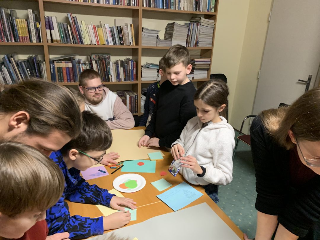 Najprv sme začali prehliadkou výstavy prekrásnych vianočných vystrihovačiek ukrajinskej umelkyne Tetyany Kyianytsy, ktoré zdobia okná knižnice.