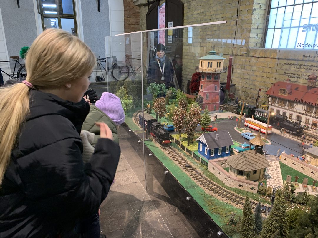 V múzeu nás čakala prehliadka historických automobilov a motocyklov, deti potešil najmä funkčný model železnice vo vstupnej hale múzea a pokračovanie do expozície histórie železníc.