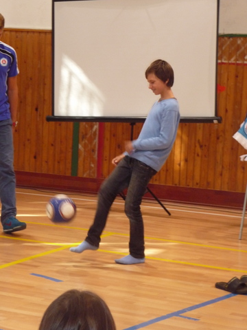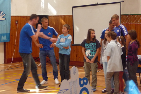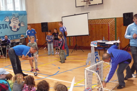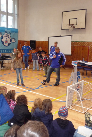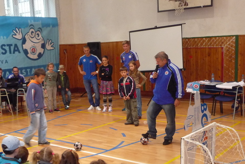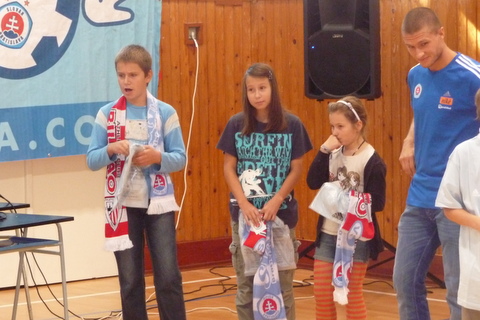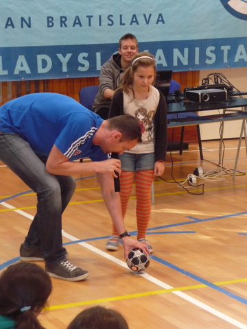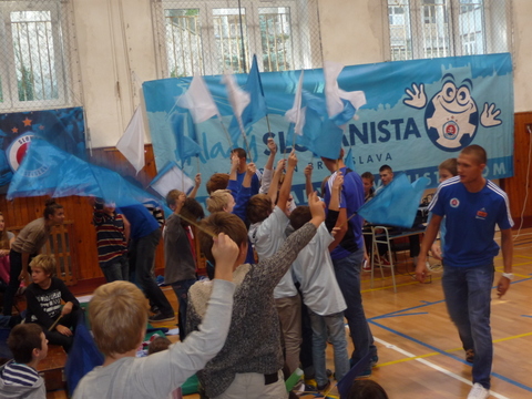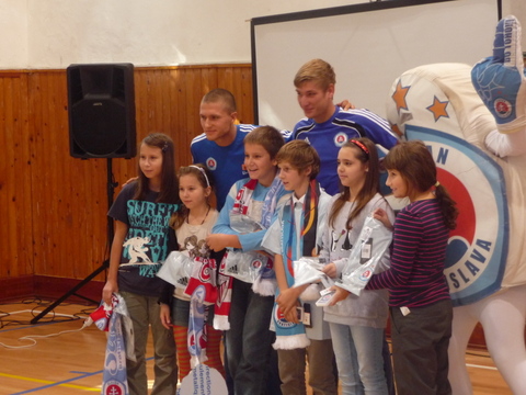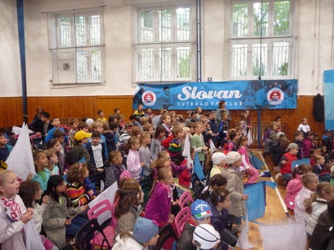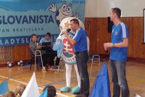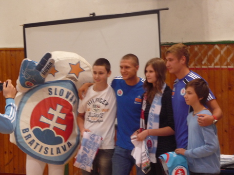 Na prezentácii klubu sa zúčastnili najskôr žiaci prvého, potom aj druhého stupňa. Deti potešila prítomnosť maskota klubu Boba a najmä hráčov ŠK Slovan Erika Čikoša a Tomáša Bagiho. Slovanisti prichystali rôzne súťaže o suveníry futbalového klubu. Žiaci sa dozvedeli základné informácie o futbale a jeho histórii. Nakoniec využili možnosť položiť hráčom zaujímavé otázky a dozvedeli sa aj to, čo pre Erika a Tomáša znamená obliekať si belasý dres a čo všetko treba urobiť, aby si človek splnil svoj sen.