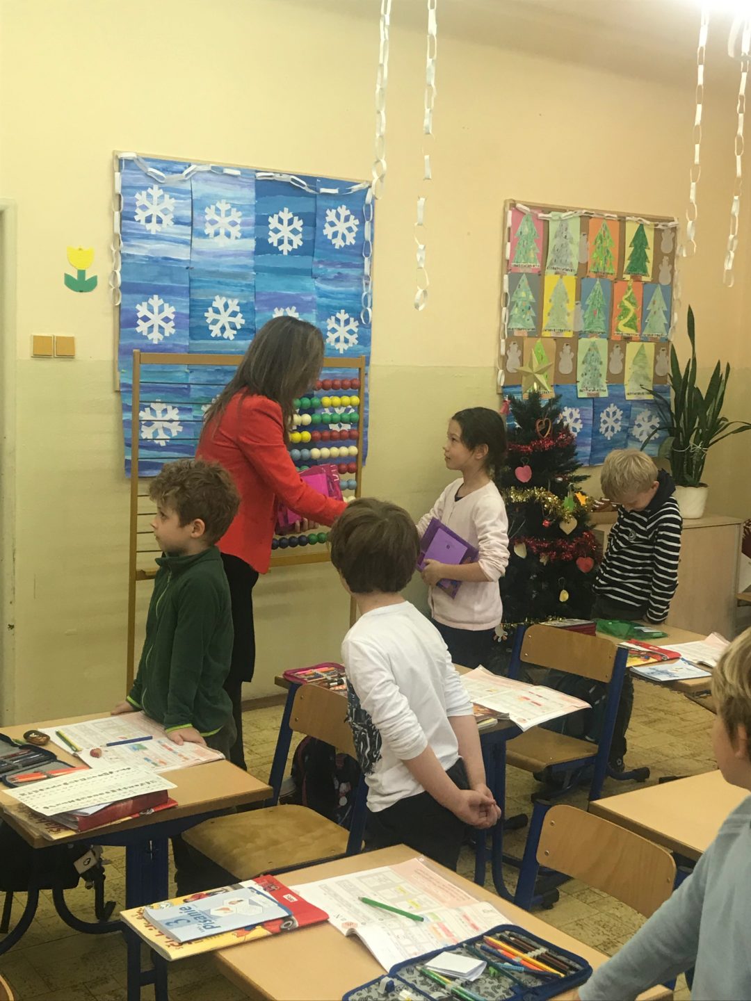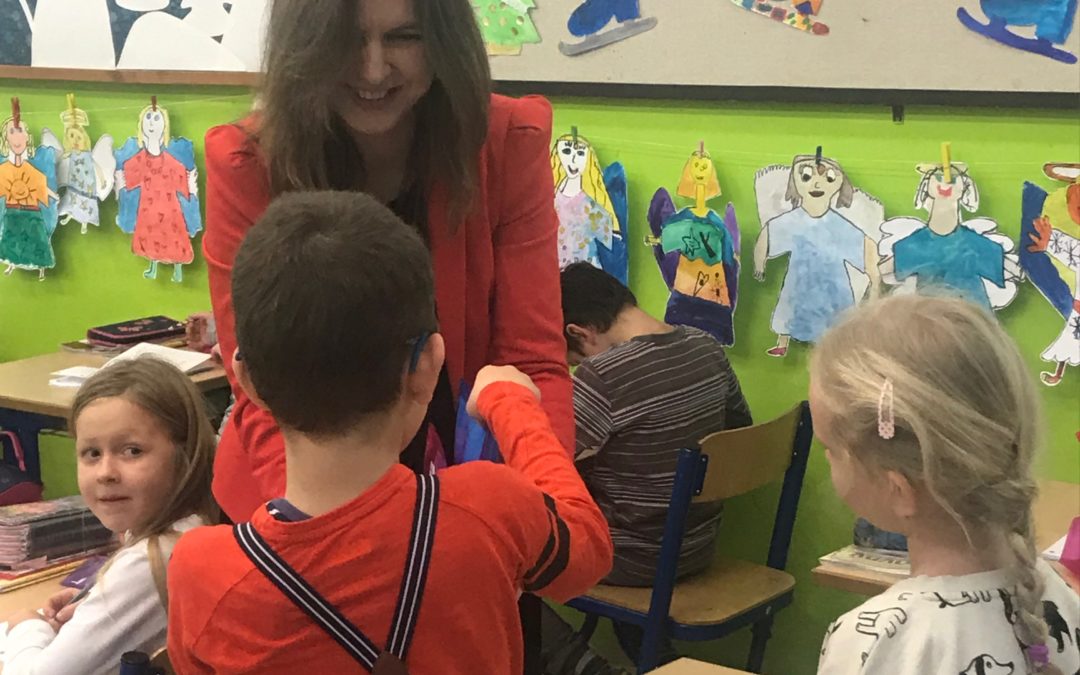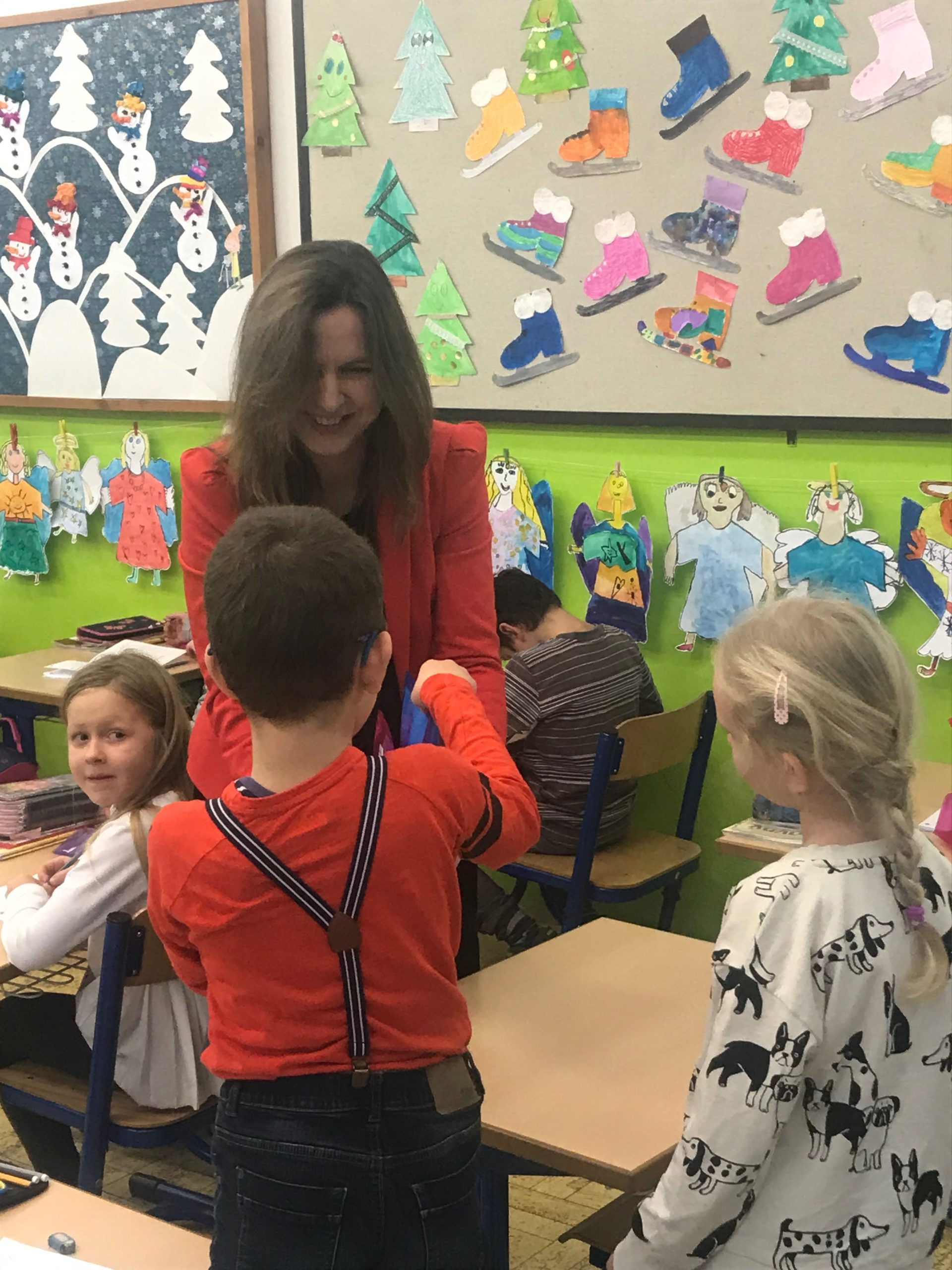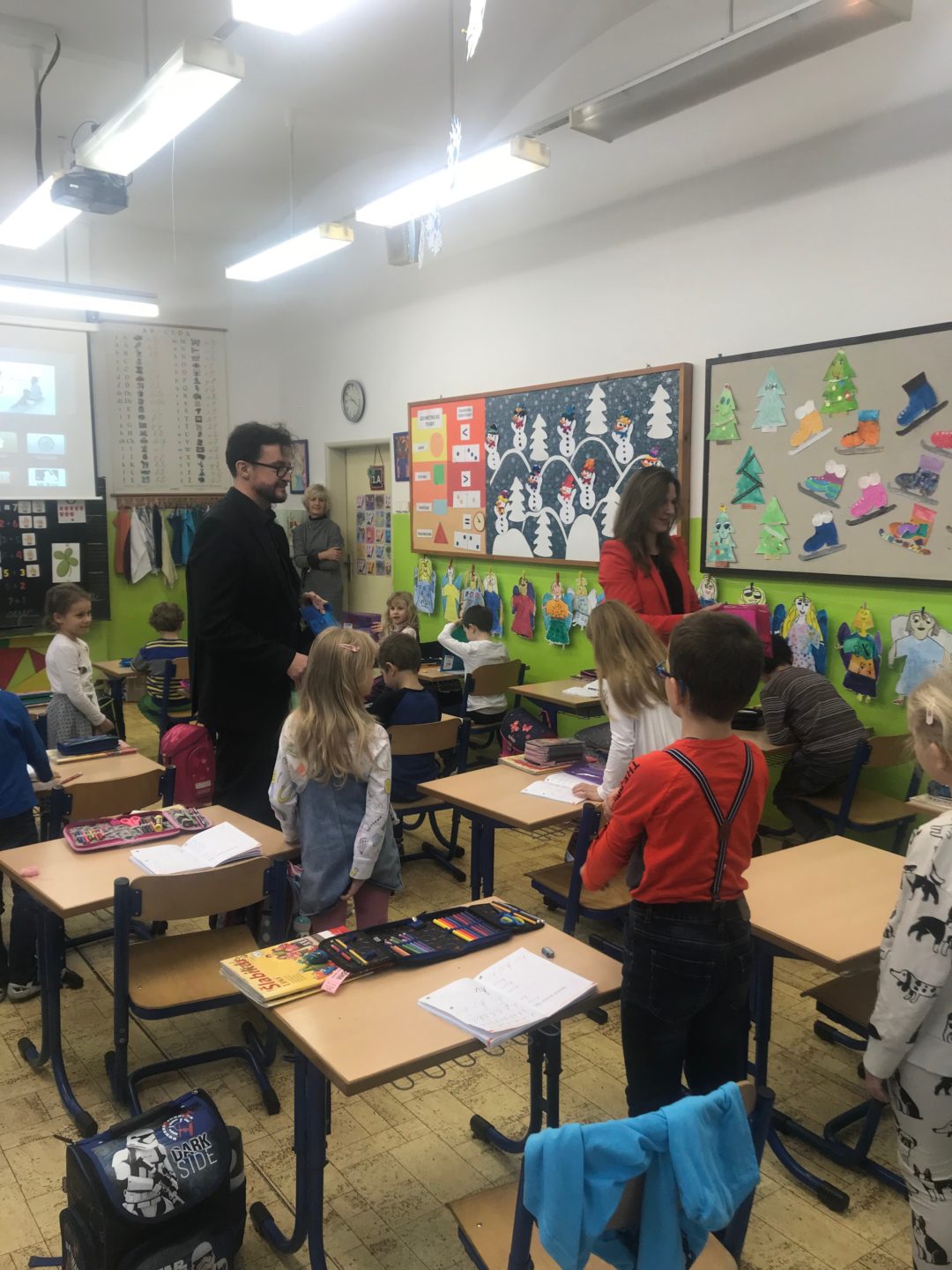 Ing. arch. Zuzana Aufrichtová, starostka mestskej časti Bratislava-Staré Mesto navštívila žiakov prvého ročníka, aby ich pozdravila a porozprávala sa s nimi o tom, ako sa im darí. Priniesla každému hodnotný darček v podobe školských potrieb. Deti mali veľkú radosť a okrem poďakovania predviedli, čo sa už v škole naučili. Zaspievali pesničky, zarecitovali básničky a pochválili sa svojimi písankami. Okrem toho pani starostka odovzdala pani riaditeľke Mgr. Etele Hessovej ešte jeden darček, tentokrát pre všetkých žiakov, projektor a plátno.