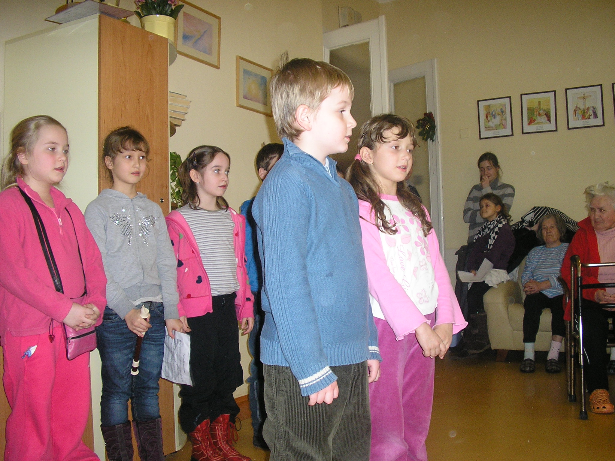 13. decembra našim žiakom pripadla milá úloha pozdraviť a potešiť starkých pri príležitosti najkrajších sviatkov roka. Táto slávnostná udalosť sa konala v Domove dôchodcov na Podjavorinskej ulici. Žiaci si pripravili pekný kultúrny program plný básní, kolied, vinšovačiek a tanca.