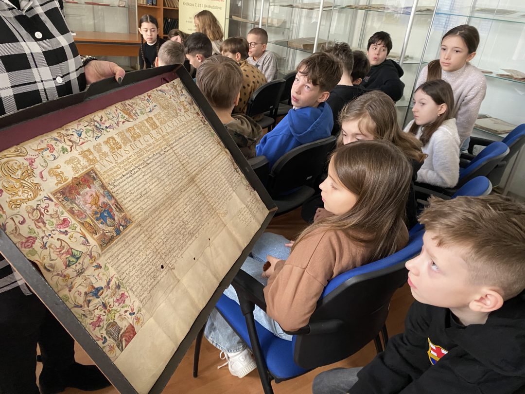 V piatok 27.2. sa naši piataci zúčastnili na plánovanej exkurzii. V rámci učiva o historických prameňoch sme po múzeu navštívili aj ďaľšiu pamäťovú inštitúciu – Štátny archív v Bratislave.