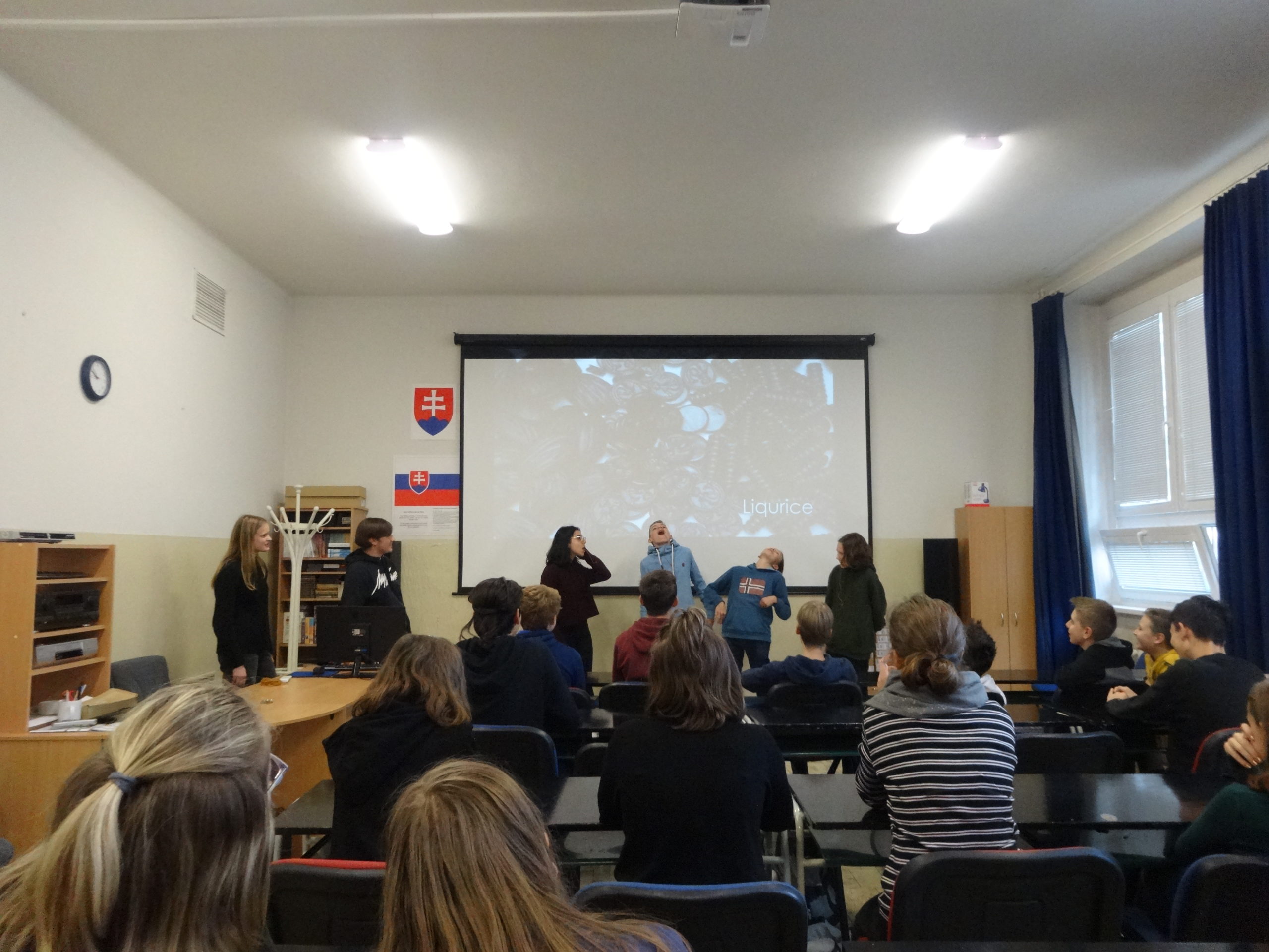 Deviataci a ôsmaci sa zúčastnili na interaktívnej prezentácii o Dánsku, ktorú viedli študenti z tejto severskej krajiny. Okrem zaujímavých informácií o Dánskom kráľovstve mohli žiaci diskutovať o téme osamelosti, ale aj zasúťažiť si o tradičné cukrovinky „Liquorice“. Zúčastnené triedy predviedli výbornú úroveň angličtiny.