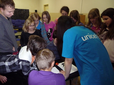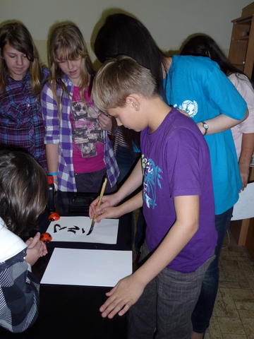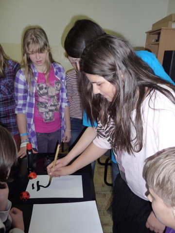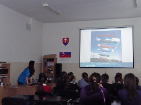 S našou školou spolupracuje slečna Tomoe Komatsu z Japonska, ktorá už absolvovala stretnutie s našimi ôsmakmi a siedmakmi. Jej aktivity sa veľmi osvedčili, preto sa na programe zúčastnili aj šiestaci. Uvádzame názor našej žiačky Emy Dobišovej: ,,Z návštevy slečny Tomoe som bola nadšená. Robili sme s ňou rôzne aktivity, no najviac ma zaujalo písanie našich mien po japonsky. Bolo zaujímavé pozorovať, ako písala na papier rôzne znaky, ktoré boli časťami nášho mena. Rozprávala nám aj o kultúre, histórii a tradíciách Japonska. Najviac ma prekvapilo, že slečna Tomoe je na Slovensku iba dva roky a veľmi dobre ovláda slovenský jazyk.“ Žiaci boli zo stretnutie opäť nadšení, veľmi sa im páčilo.