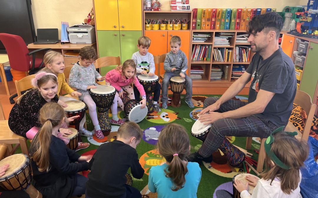 Posledný novembrový piatok privítali naši starší škôlkari vo svojej triede pána Janka Boldiša. Na Sovičky tak opäť čakal nevšedný hudobný zážitok plný radosti, hrania (sa) a pohybu, za čo pánovi Boldišovi veľmi pekne ďakujeme!