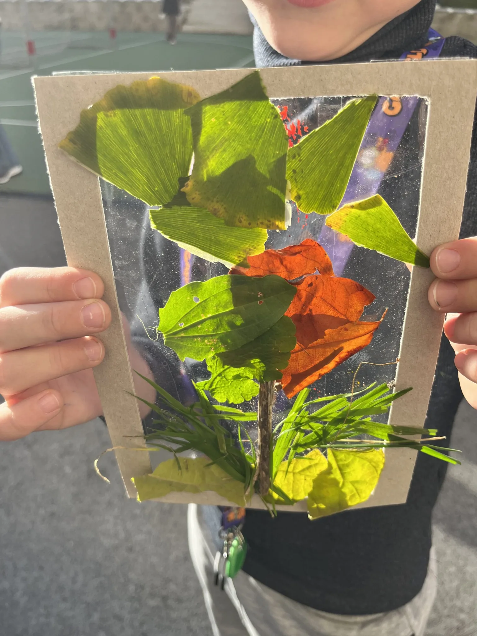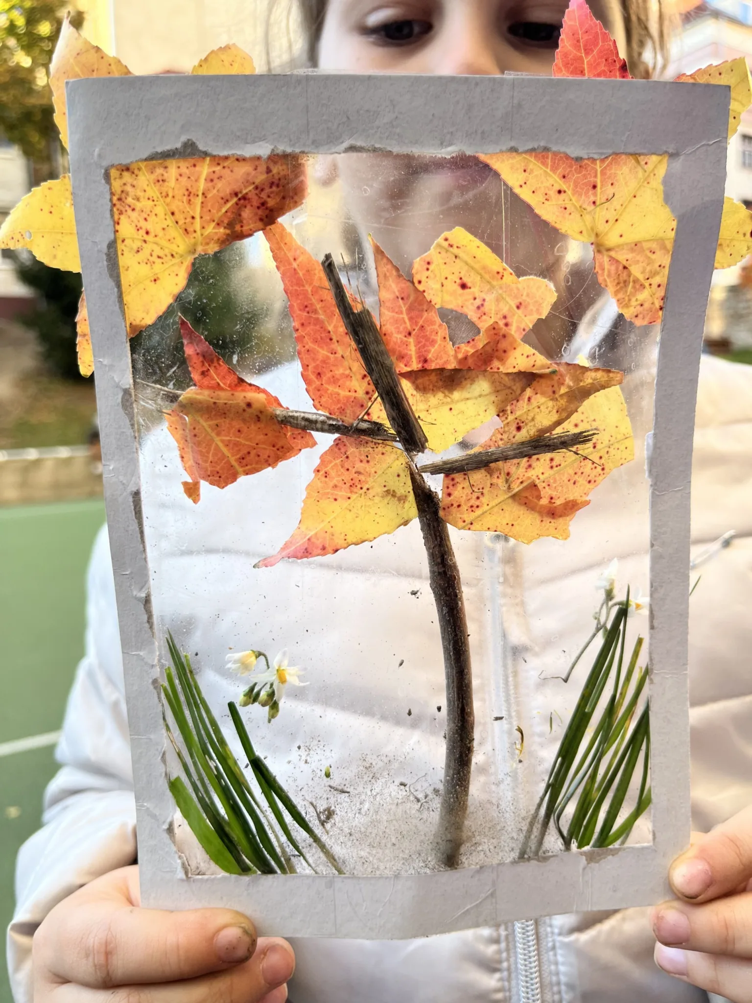 Keď je krásna jeseň, mali by sme to využiť. Preto sme na Environmentálnom krúžku vybehli na školský dvor a z prírody sme si vytvorili obrázky dýchajúce jeseňov. Každý vytvoril svoje – domy, stromy, zvieratá, niekto abstraktné diela. Ale všetky boli originálne a krásne.