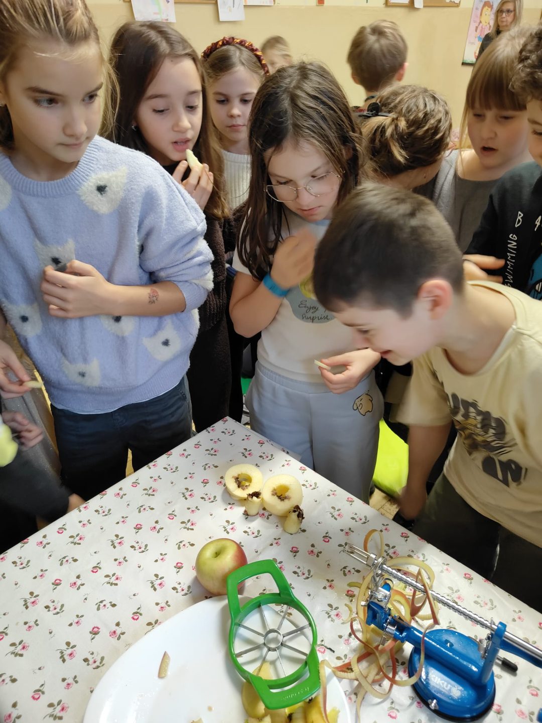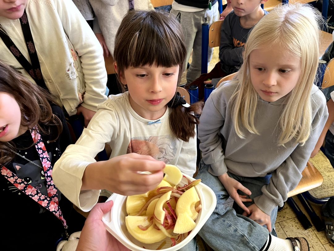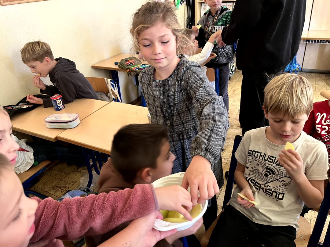 Čo viac si môžu žiaci priať, ako spojenie jedla a vedomostí? Vitamíny ukryté v jabĺčkach a ochutnávku rôznych odrôd si žiaci mohli vyskúšať s Dobrým ježkom. Dozvedeli sa ako fungujú ovocné sady a čo všetko musia jablká absolvovať, kým sa dostanú až domov na stôl.