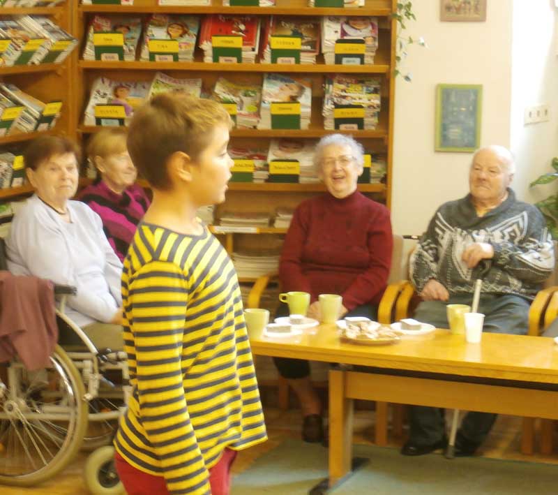 Aj naši žiaci pozdravili starkých pri príležitosti ich sviatku. Slávnosť, ktorá sa konala v Knižnici na Panenskej ulici, bola spojená s otvorením výstavky ich ručných prác. Deti si s radosťou pripravili pekný kultúrny program. Naším prianím bolo, aby sa starkí dobre cítili a aby im na túto slávnostnú chvíľu zostali milé spomienky.