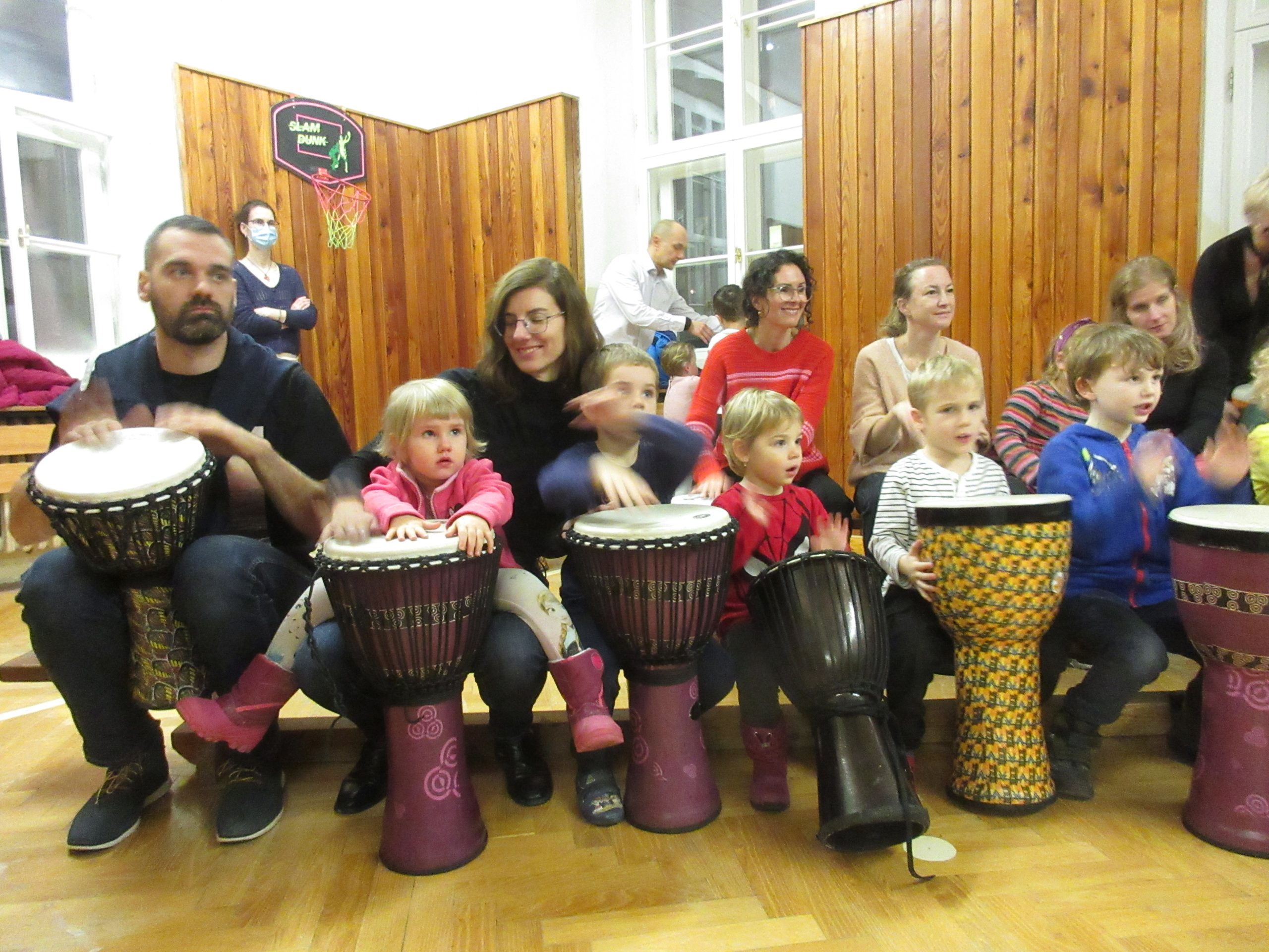 V novembri sme v našej škole oslávili Deň materských škôl, ktorým je 4. november. V tento deň bola v roku 1829 v Banskej Bystrici grófkou Máriou Teréziou Brunswickovou založená prvá detská opatrovňa na našom území. Túto udalosť sme sa rozhodli osláviť spolu s rodičmi veľkolepou bubnovačkou s hudobníkmi z hudobnej školy Rytmika. Po krátkom úvodnom vystúpení, kedy naši škôlkari predviedli aspoň kúsok zo svojej šikovnosti, sa už naše Žabky a Sovičky rozpŕchli medzi svojich rodičov, súrodencov a ďalších rodinných príslušníkov a s neskrývanou radosťou a zanietením si užili toto popoludnie.
