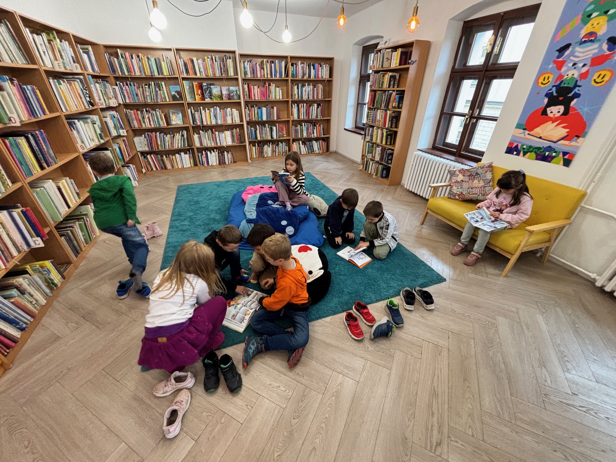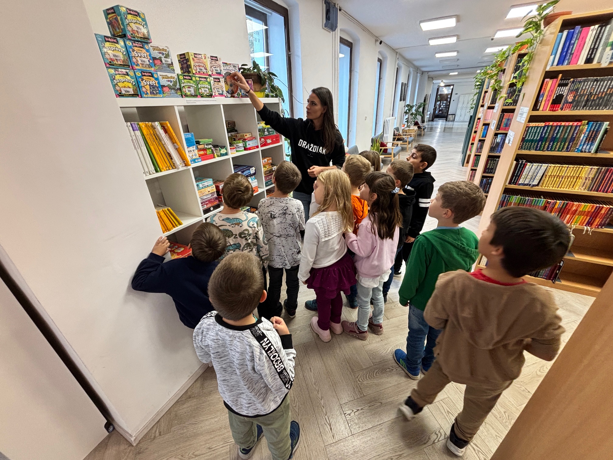 Prváčikovia z 1.B prvýkrát zavítali na Oddelenie pre deti a mládež v Mestskej knižnici, aby sa naučili čo je knižnica, ako funguje, ako sa v knižnici správať, aké má oddelenia a aké zaujímavé knižky a hry si môžu požičať domov.