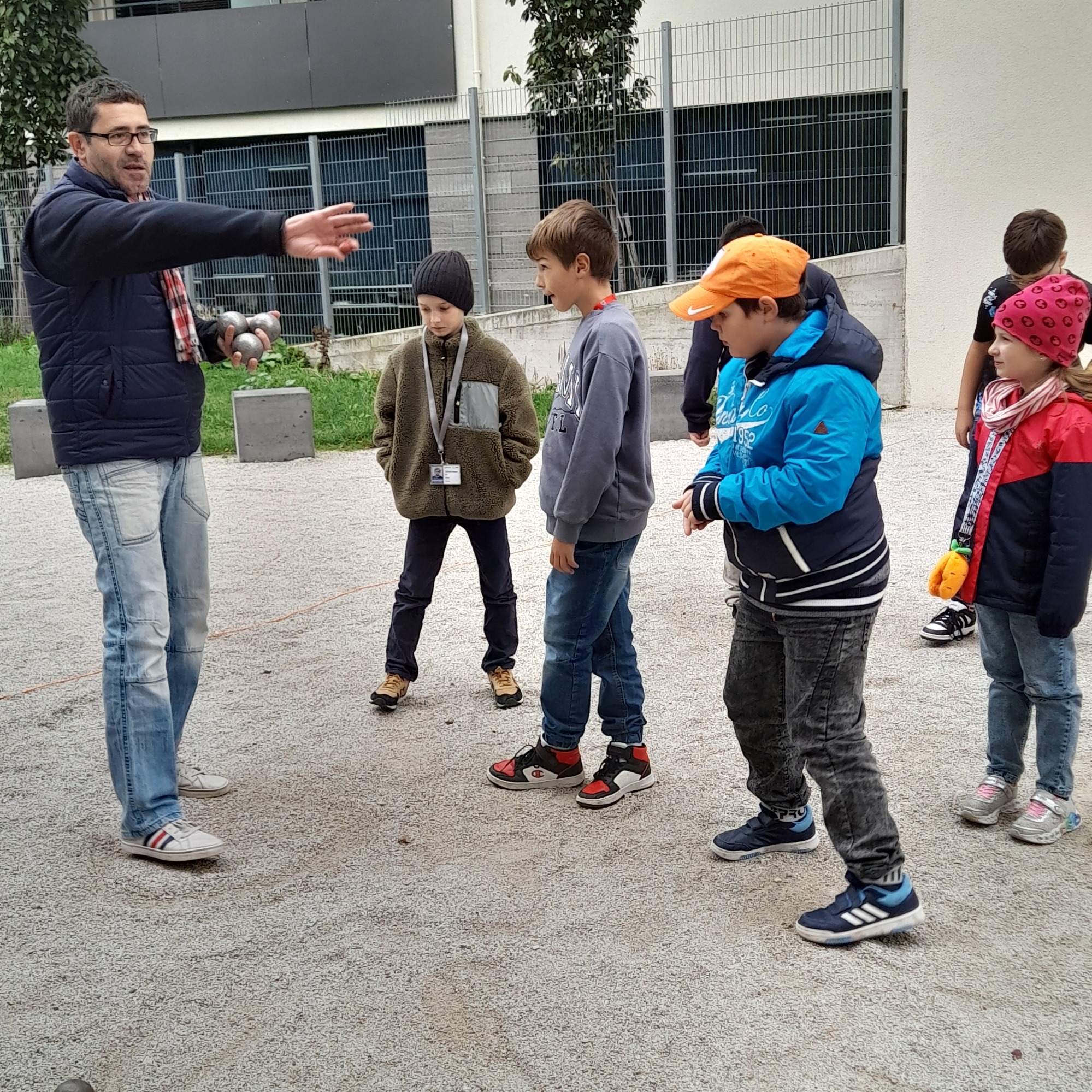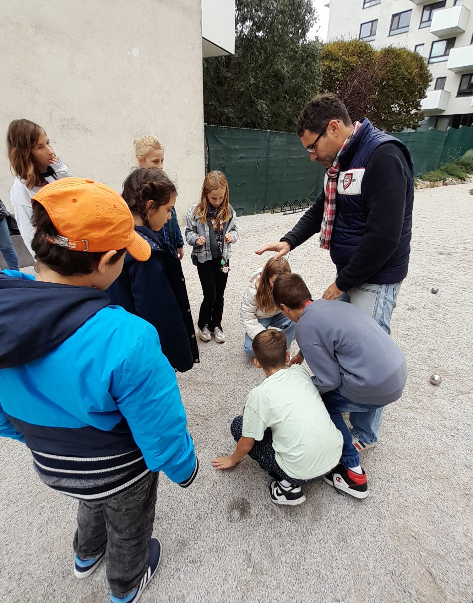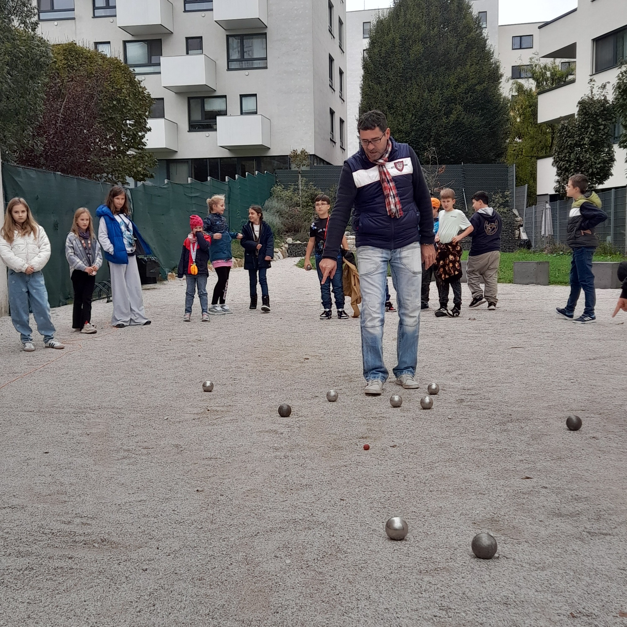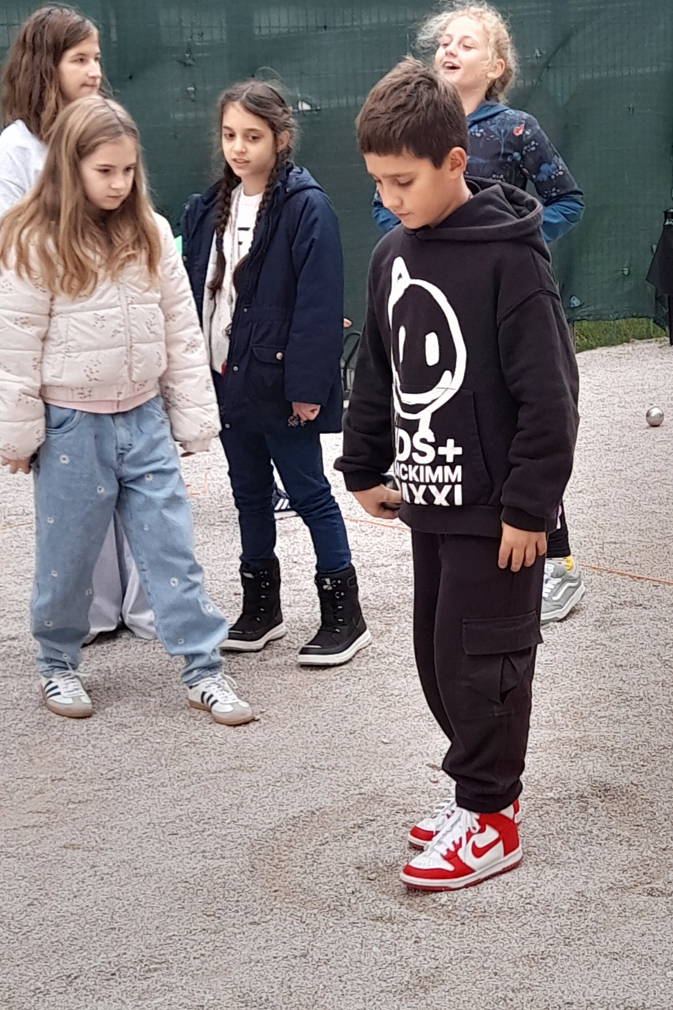 Pri opätovnej návšteve Komunitnej záhrady vymenili štvrtáci čítanie za šport. Do tajomstiev petangu ich zasvätil majster Slovenska Dušan Lančarič.