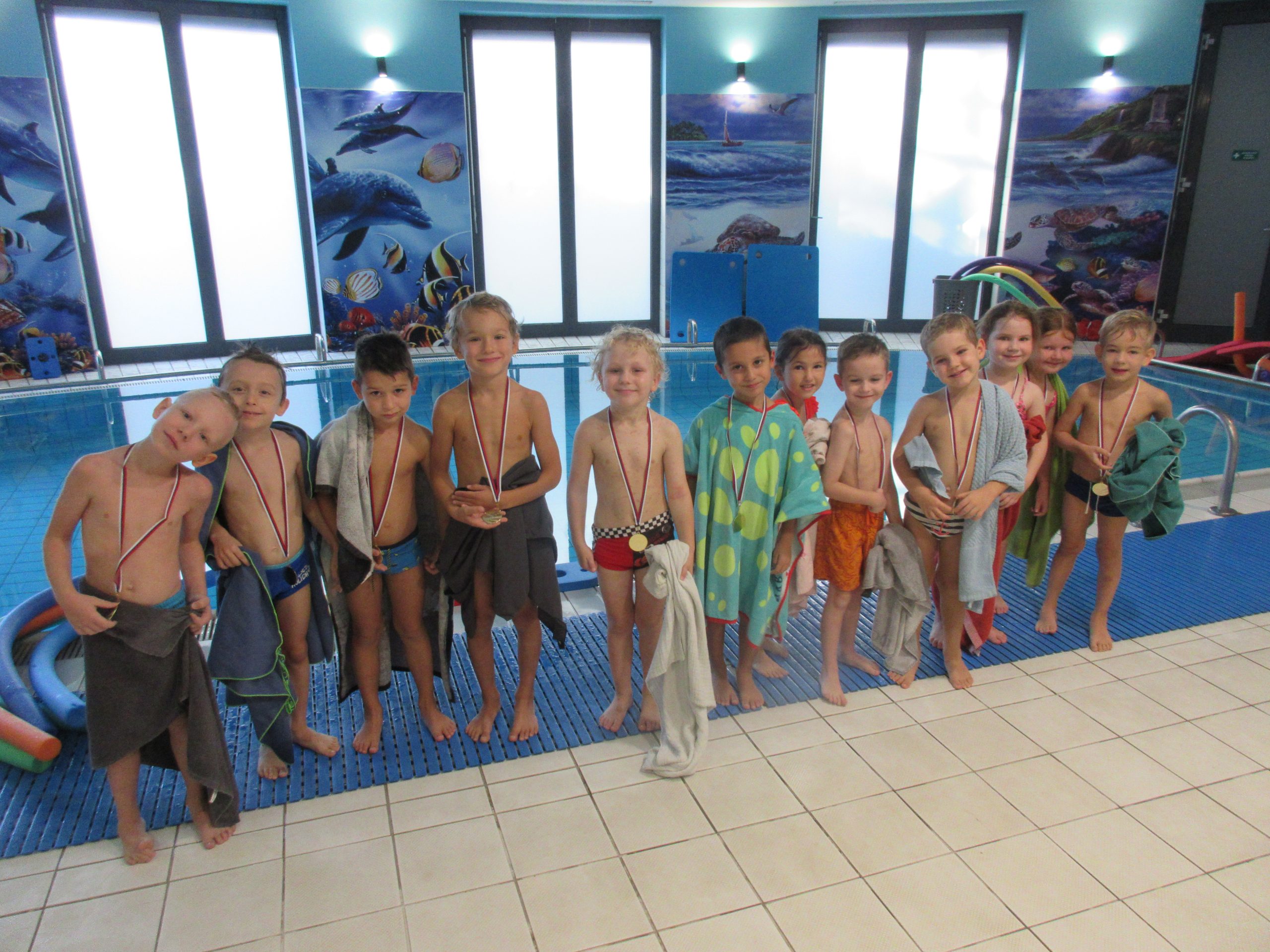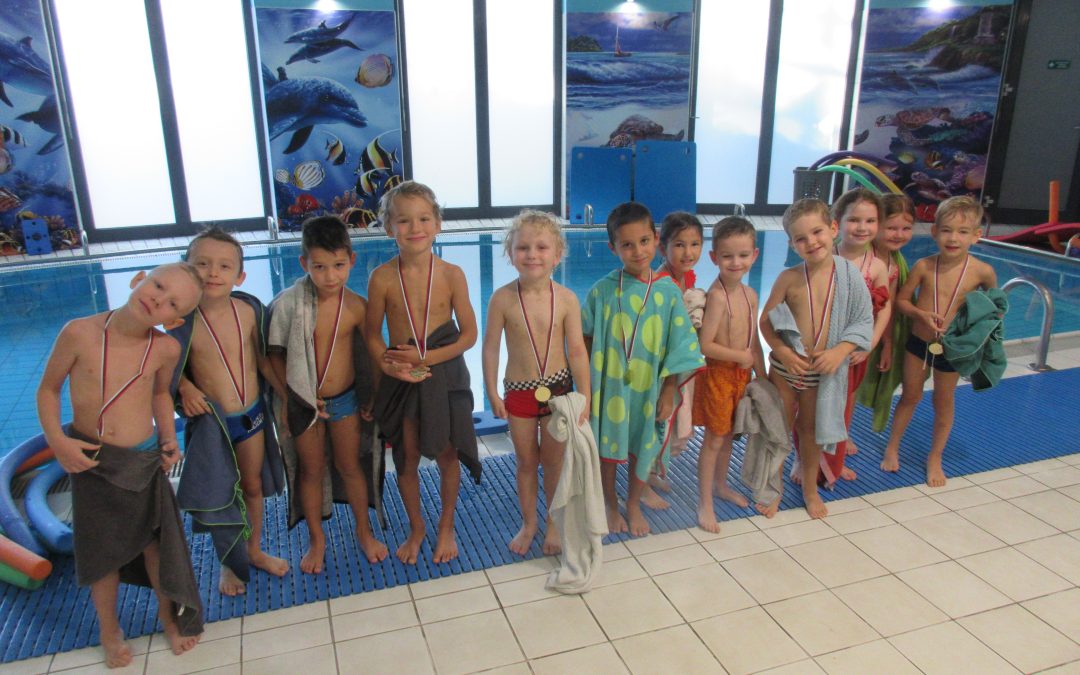 Prvý októbrový týždeň sa v triede našich starších škôlkarov niesol v znamení plaveckého výcviku. Od pondelka do piatku prichádzali naše Sovičky do materskej školy zavčas rána, aby hneď po desiate vyrazili za plaveckým dobrodružstvom. Po hravom rozcvičení svalstva celého tela sa učili základy vybraných plaveckých štýlov a užili si veľa zábavy. V posledný deň výcviku si za svoju odvahu a húževnatosť priniesli domov plaveckú medailu.