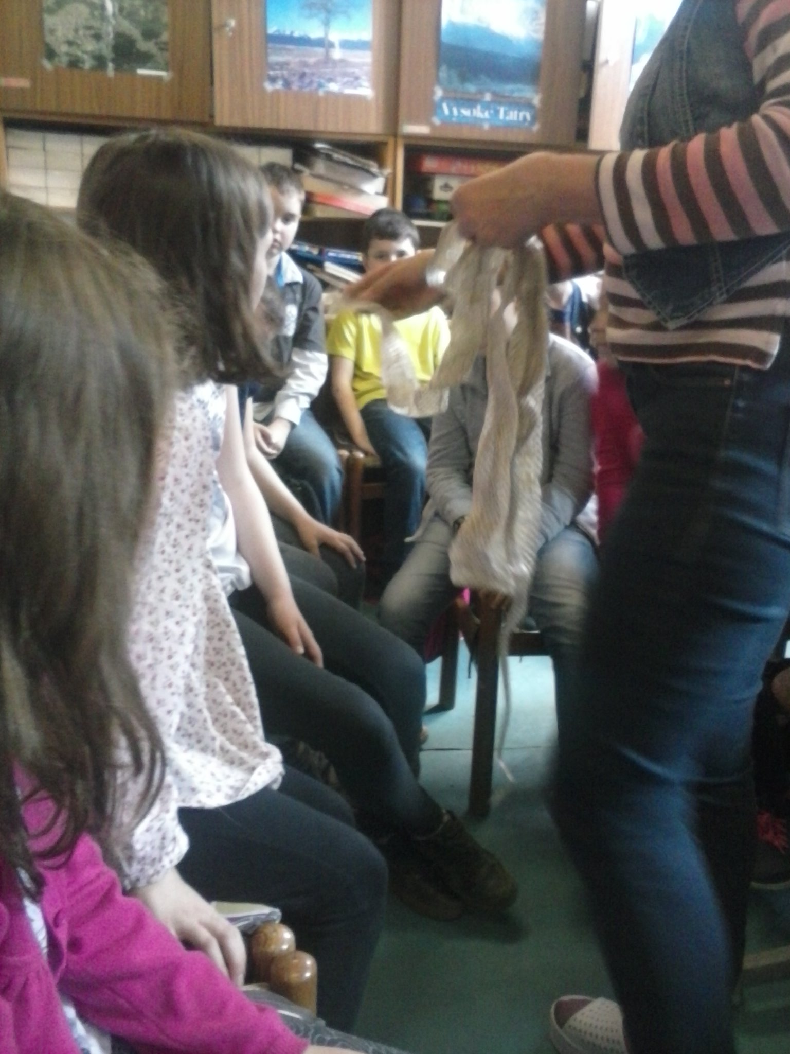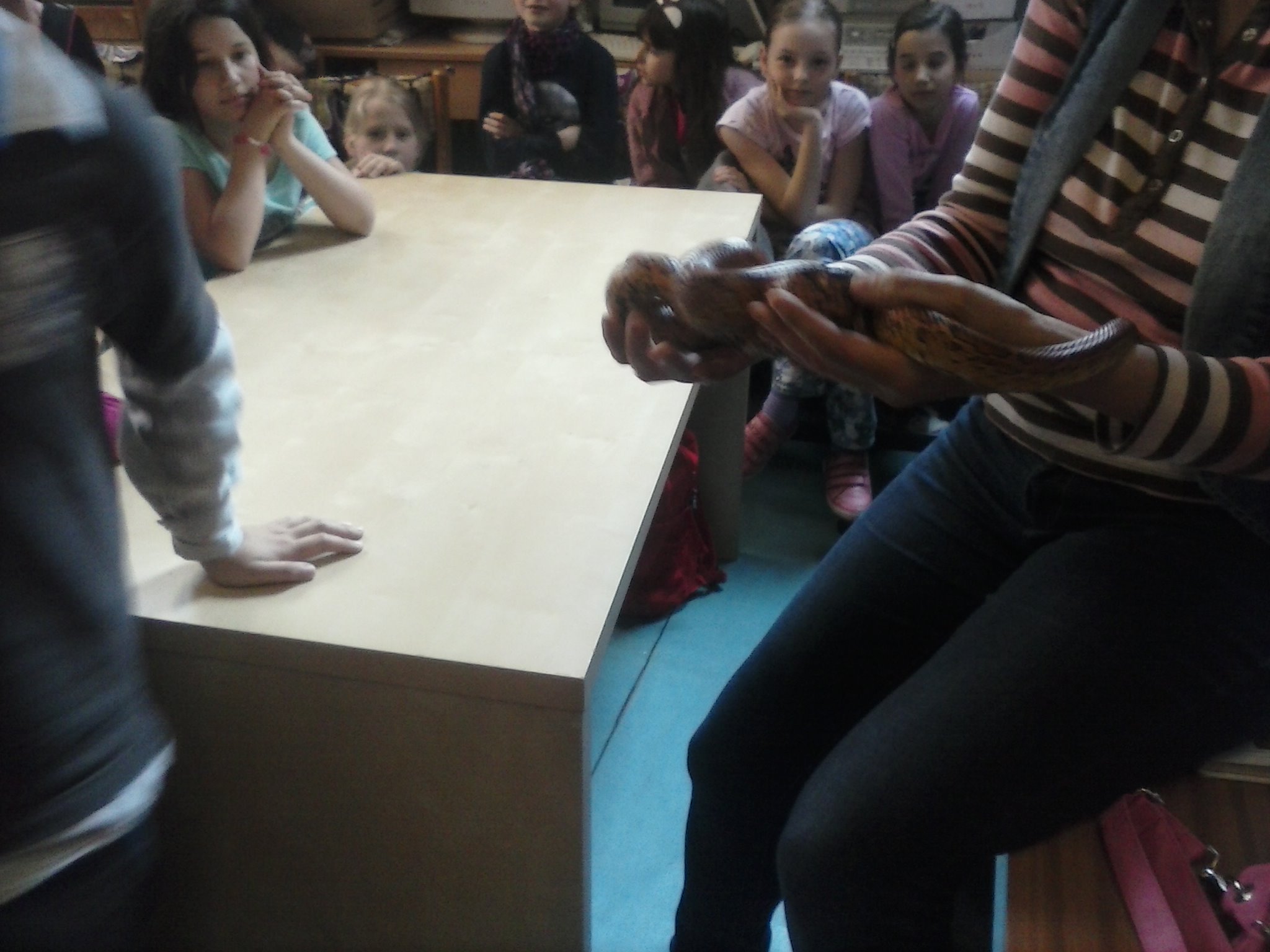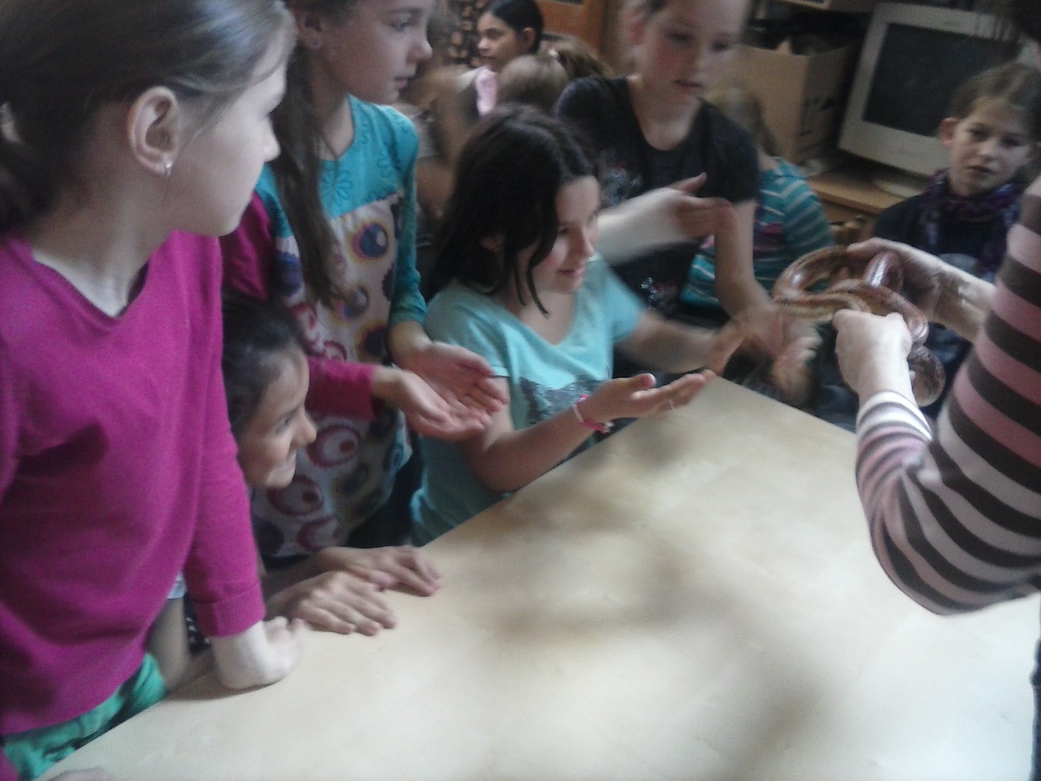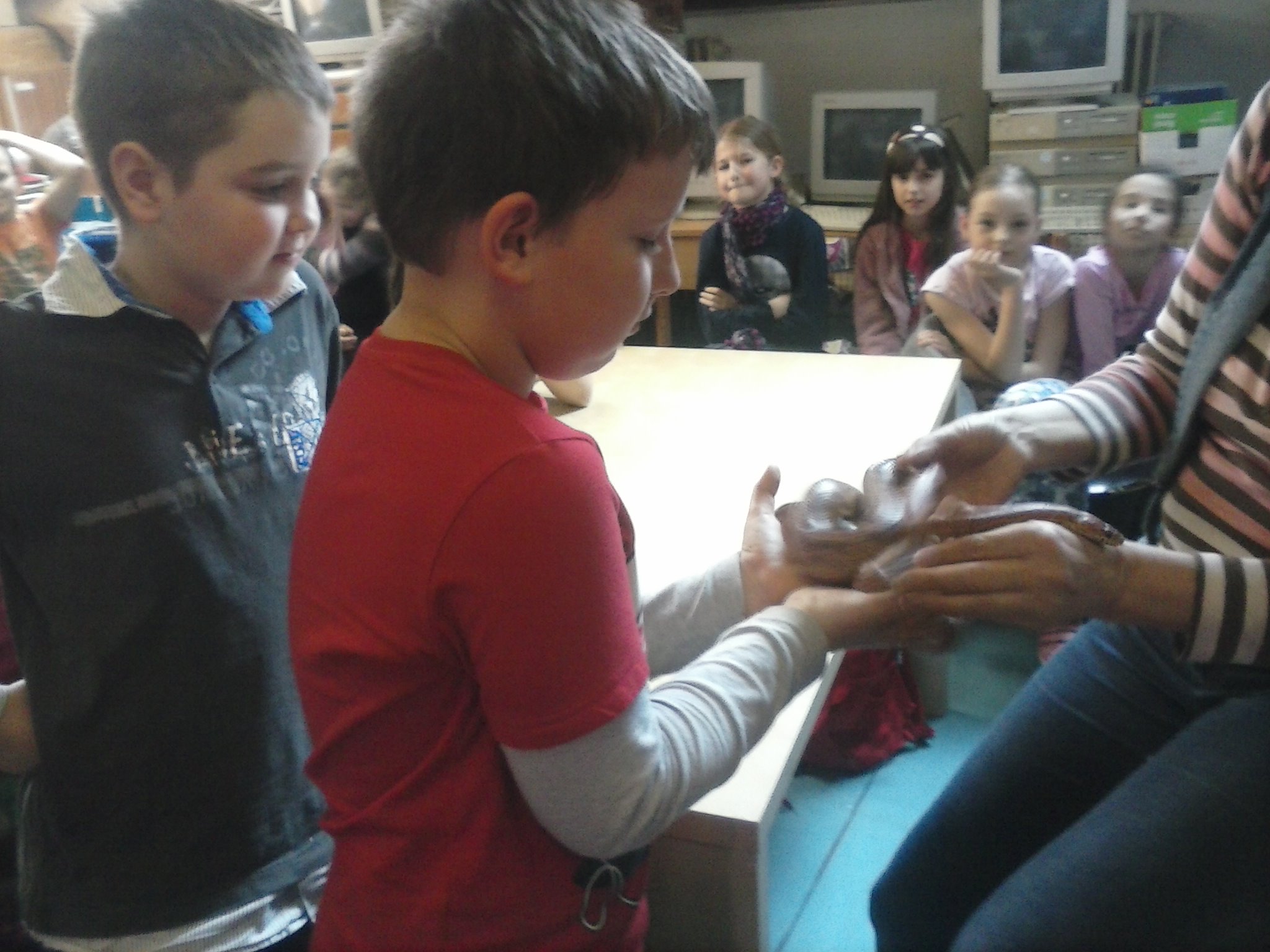 Tentokrát sa tretiaci vybrali naučiť sa niečo o živote plazov. Vypočuli si pútavú prednášku, pozreli si film, ale aj držali v rukách skutočného, živého hada. Zistili, že má príjemný povrch tela a vôbec sa ho nebáli. Pozreli si ako vyzerá jeho zvlečená koža, videli korytnačie vajíčka. Nezabudli ani na ostatné zvieratká, o ktoré sa v centre stará pani Knézlová. Do školy si priniesli pracovný list, ktorý vypracovali na hodine prírodovedy. Pani učiteľka deti pochválila za to, že veľa naučili.