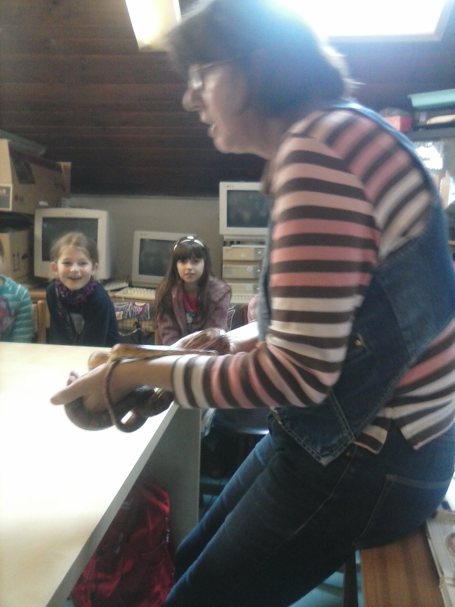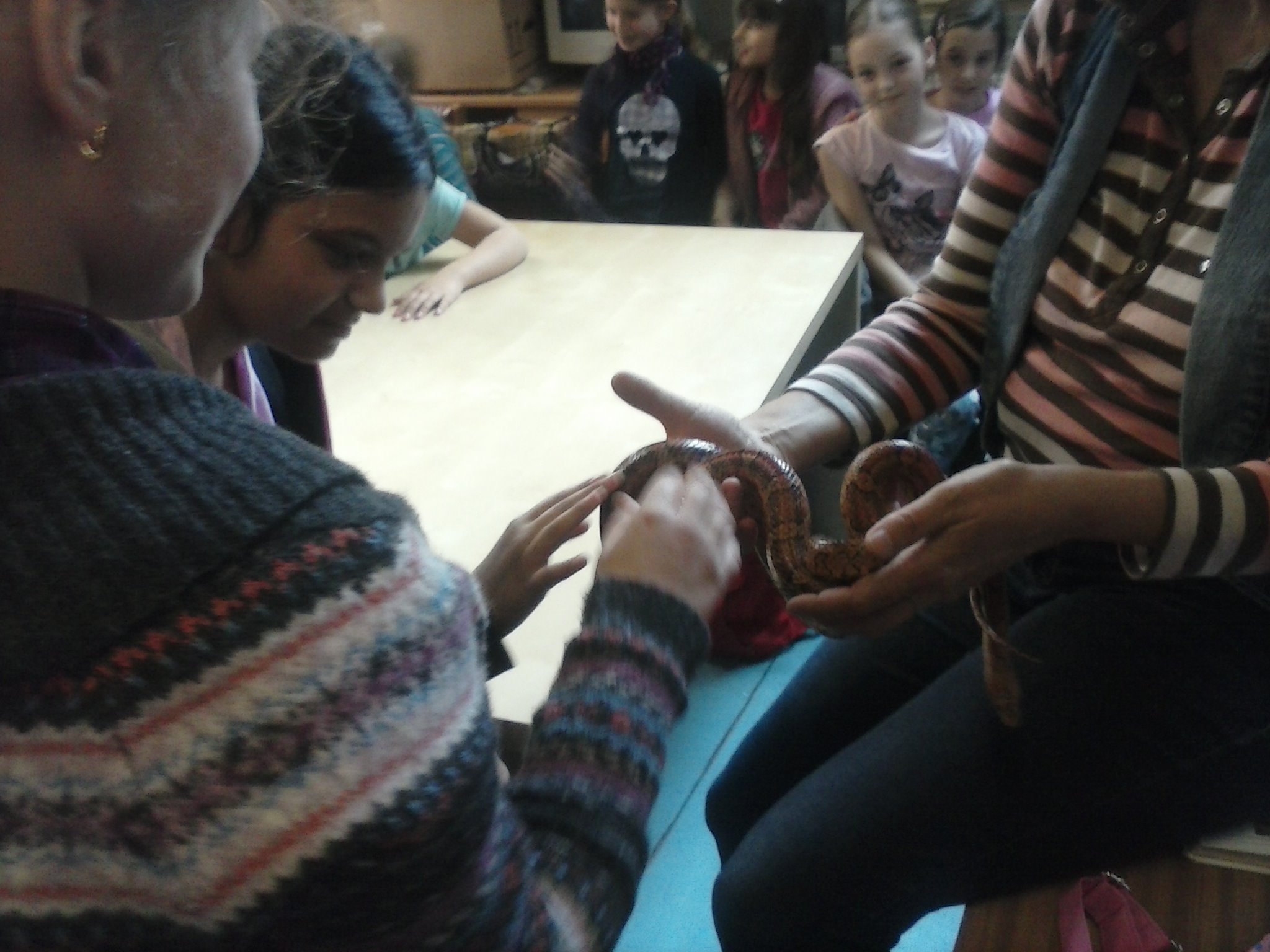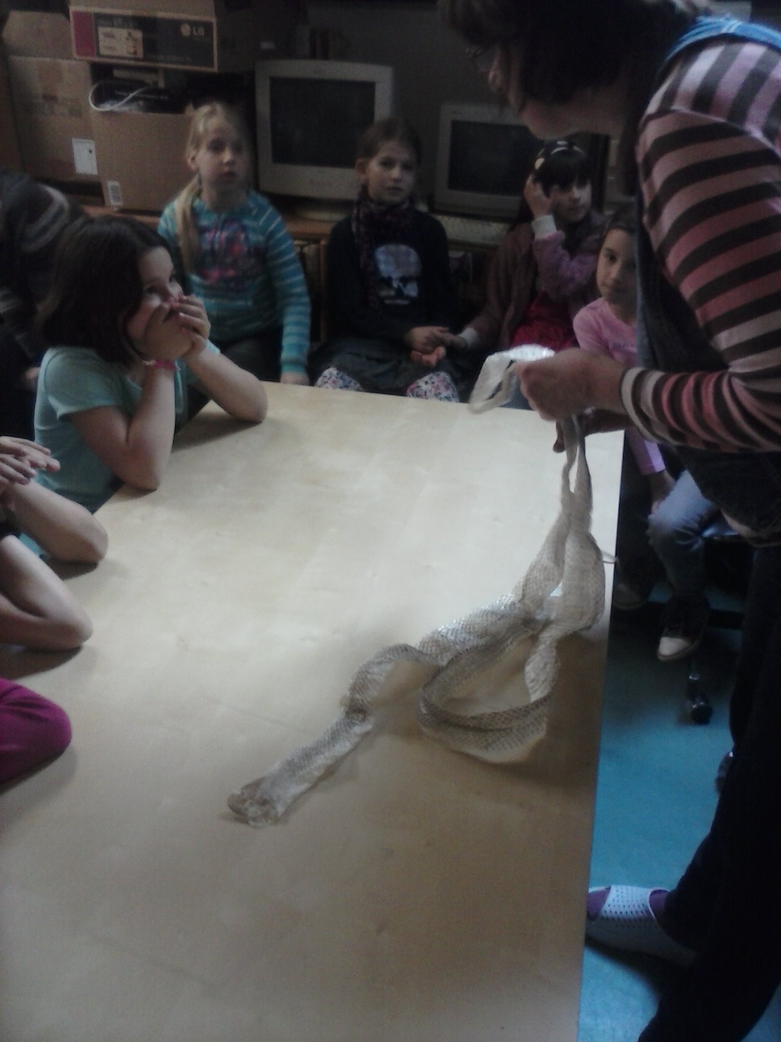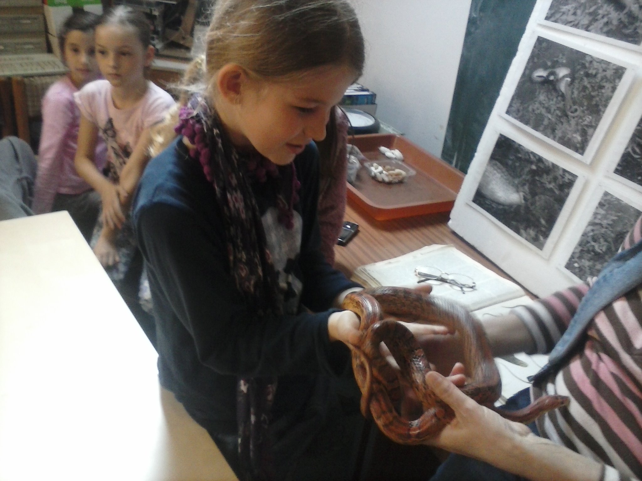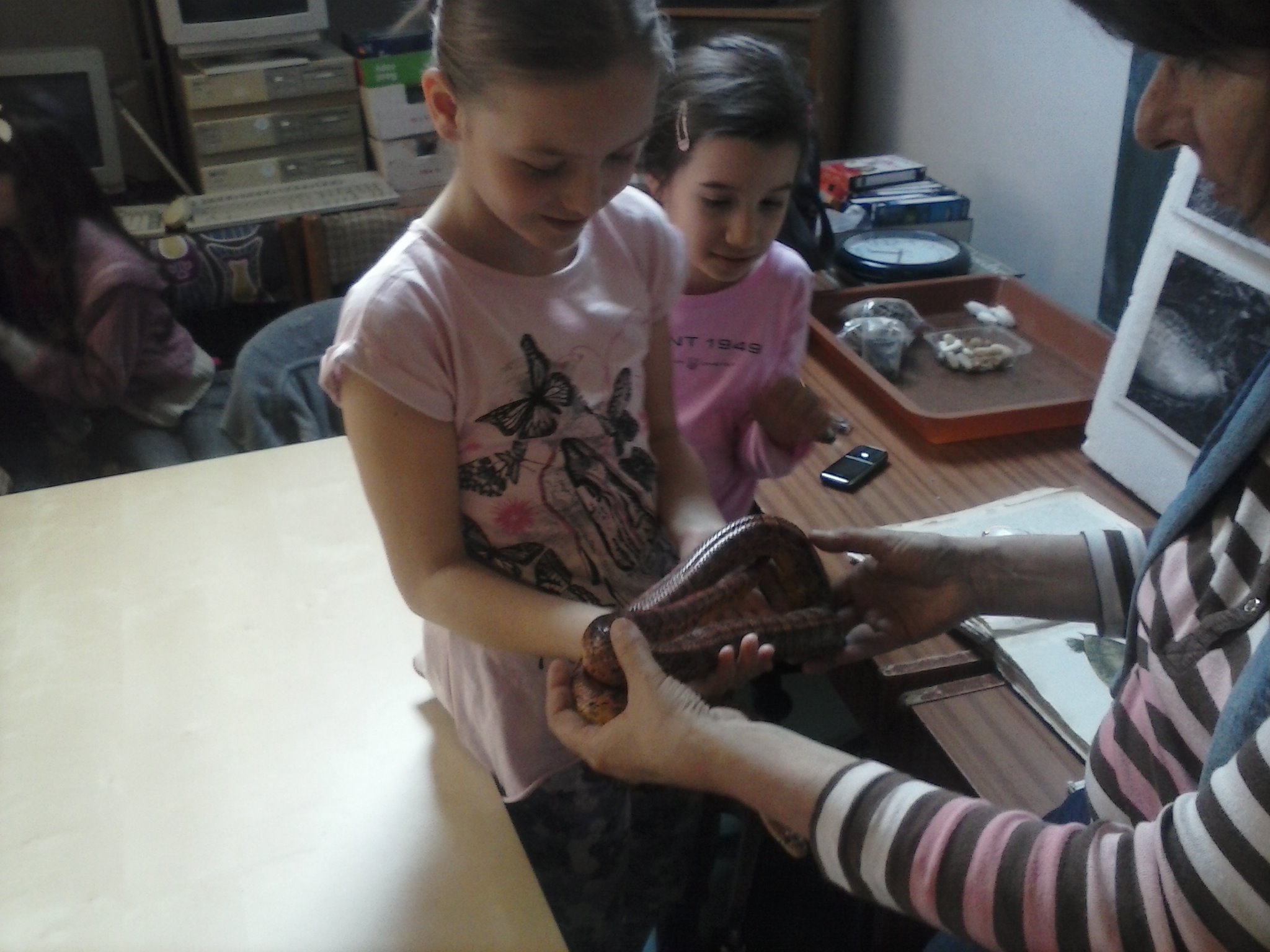 Tentokrát sa tretiaci vybrali naučiť sa niečo o živote plazov. Vypočuli si pútavú prednášku, pozreli si film, ale aj držali v rukách skutočného, živého hada. Zistili, že má príjemný povrch tela a vôbec sa ho nebáli. Pozreli si ako vyzerá jeho zvlečená koža, videli korytnačie vajíčka. Nezabudli ani na ostatné zvieratká, o ktoré sa v centre stará pani Knézlová. Do školy si priniesli pracovný list, ktorý vypracovali na hodine prírodovedy. Pani učiteľka deti pochválila za to, že veľa naučili.