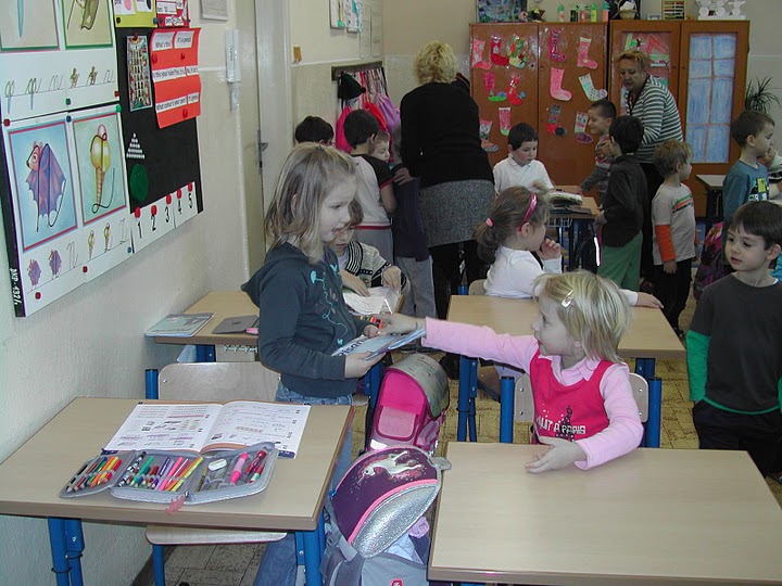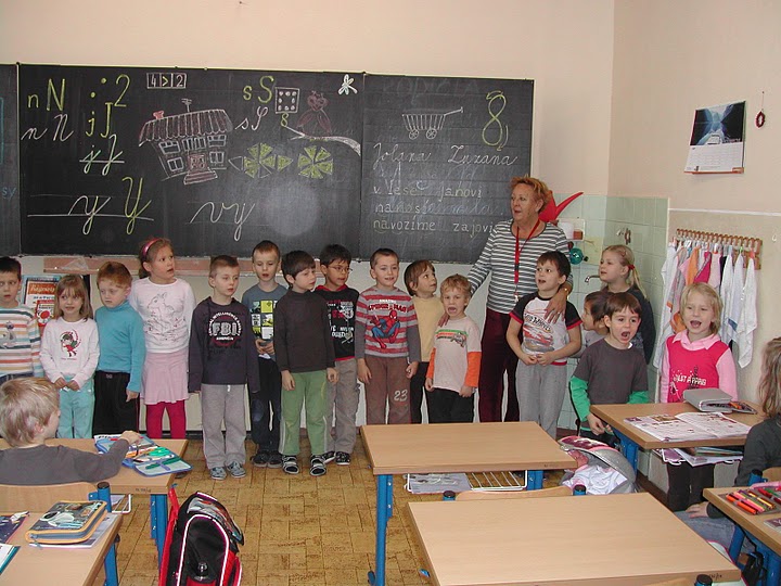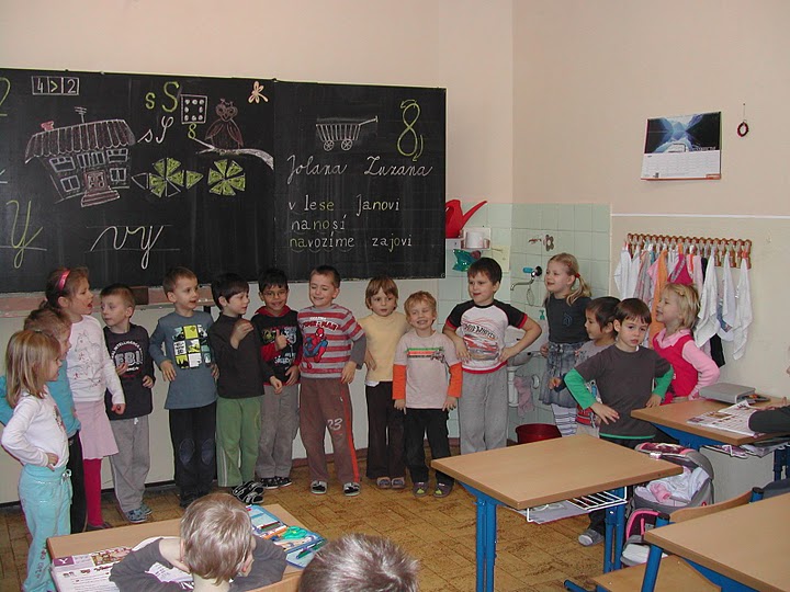 S radosťou navštívili svojich kamarátov školákov v triede. Oboznámili sa s prostredím a zistili, čo ich v septembri čaká. Predstavili sa so svojím krátkym programom a vypočuli si aj piesne a básne v podaní školákov. Prezreli si učebnice a písanky detí. Už teraz sa tešia na druhý september.