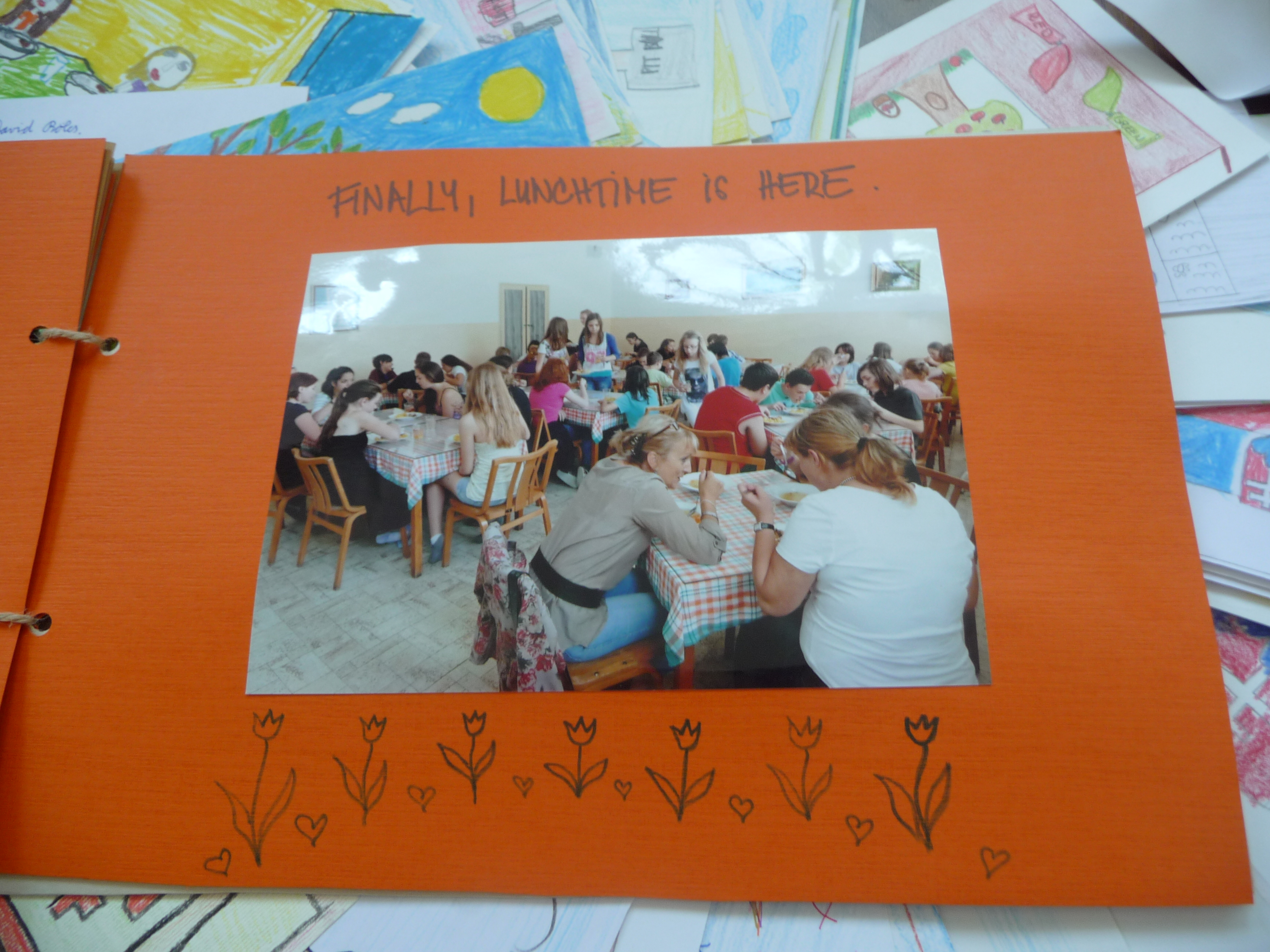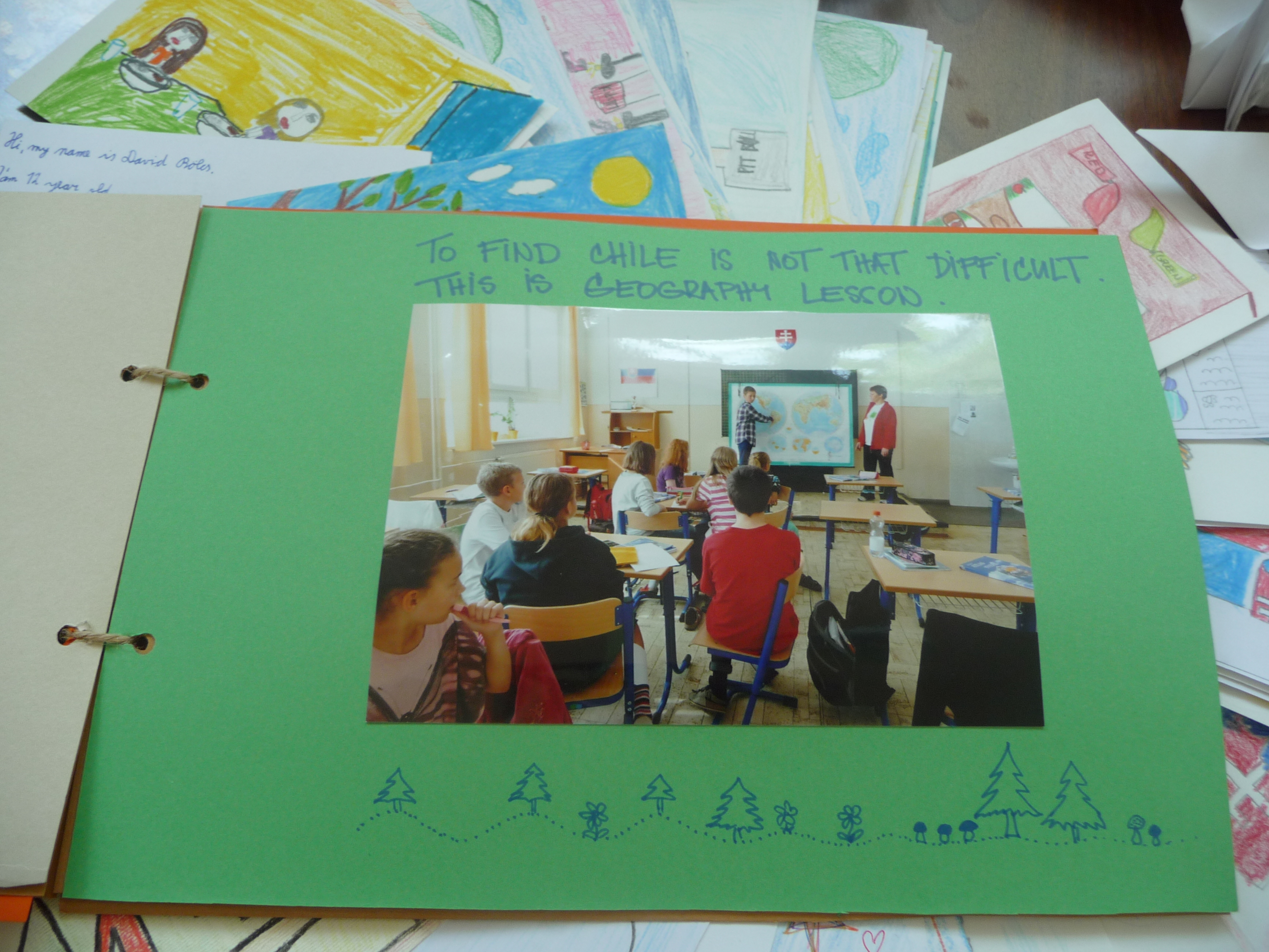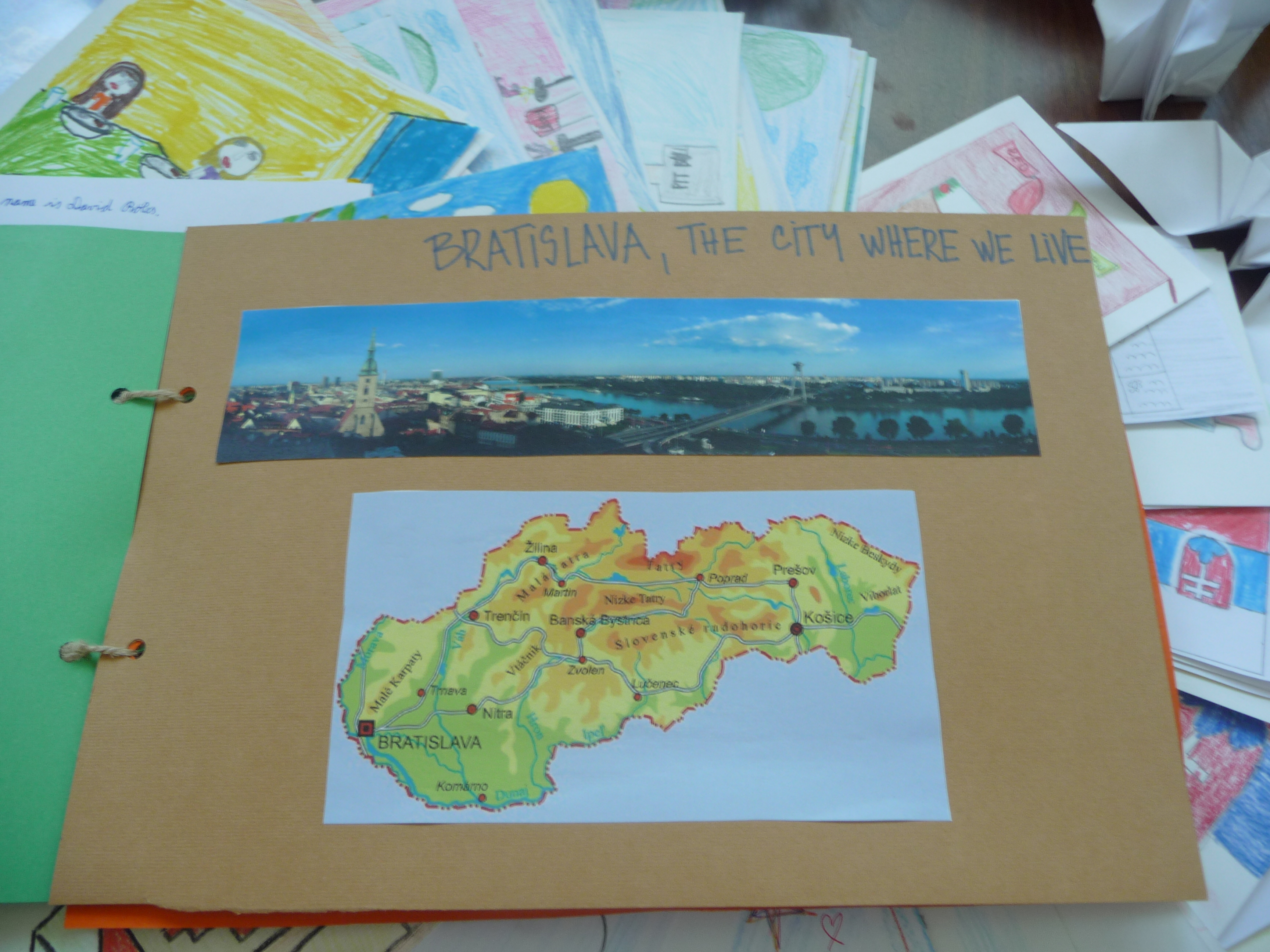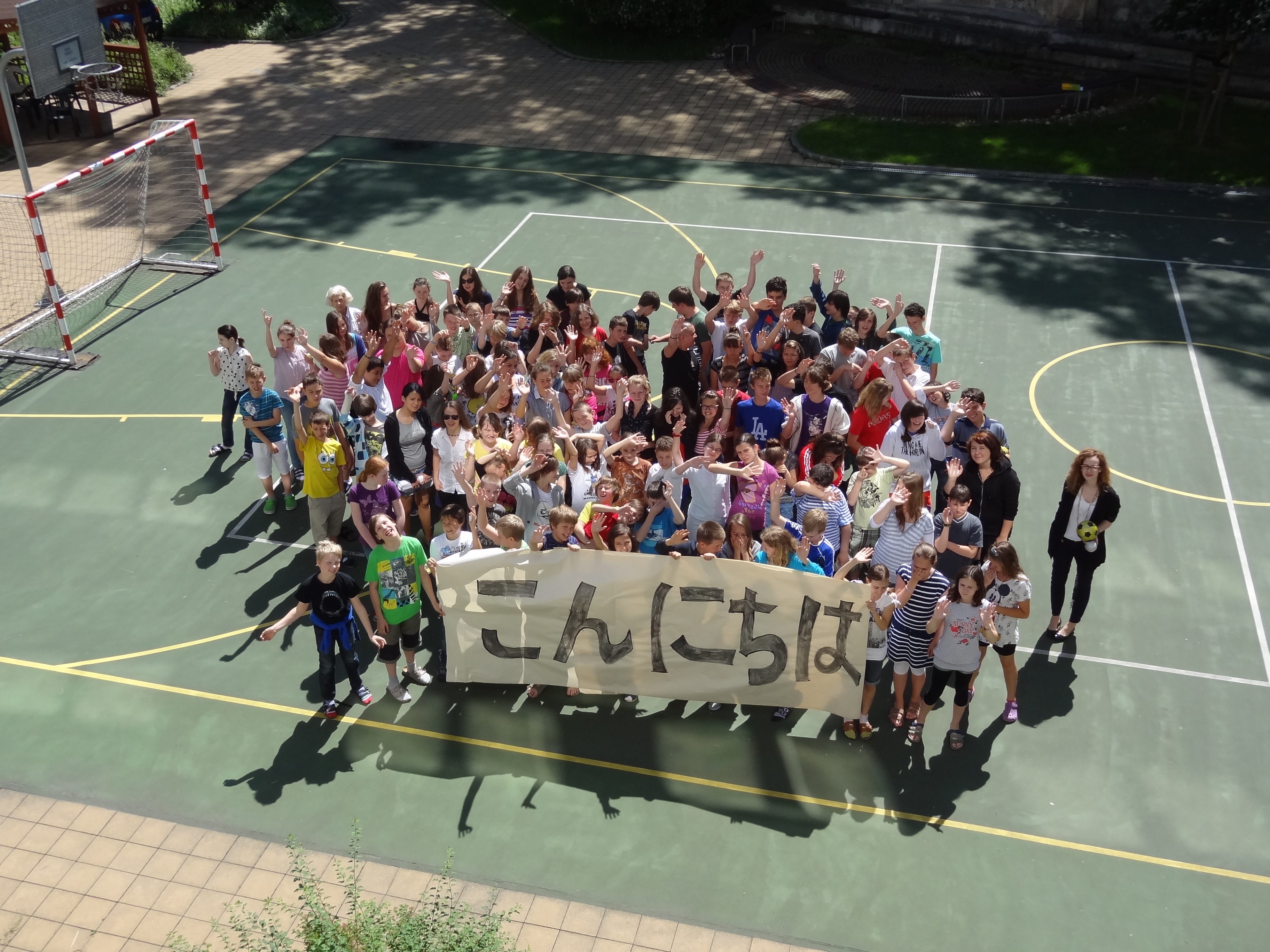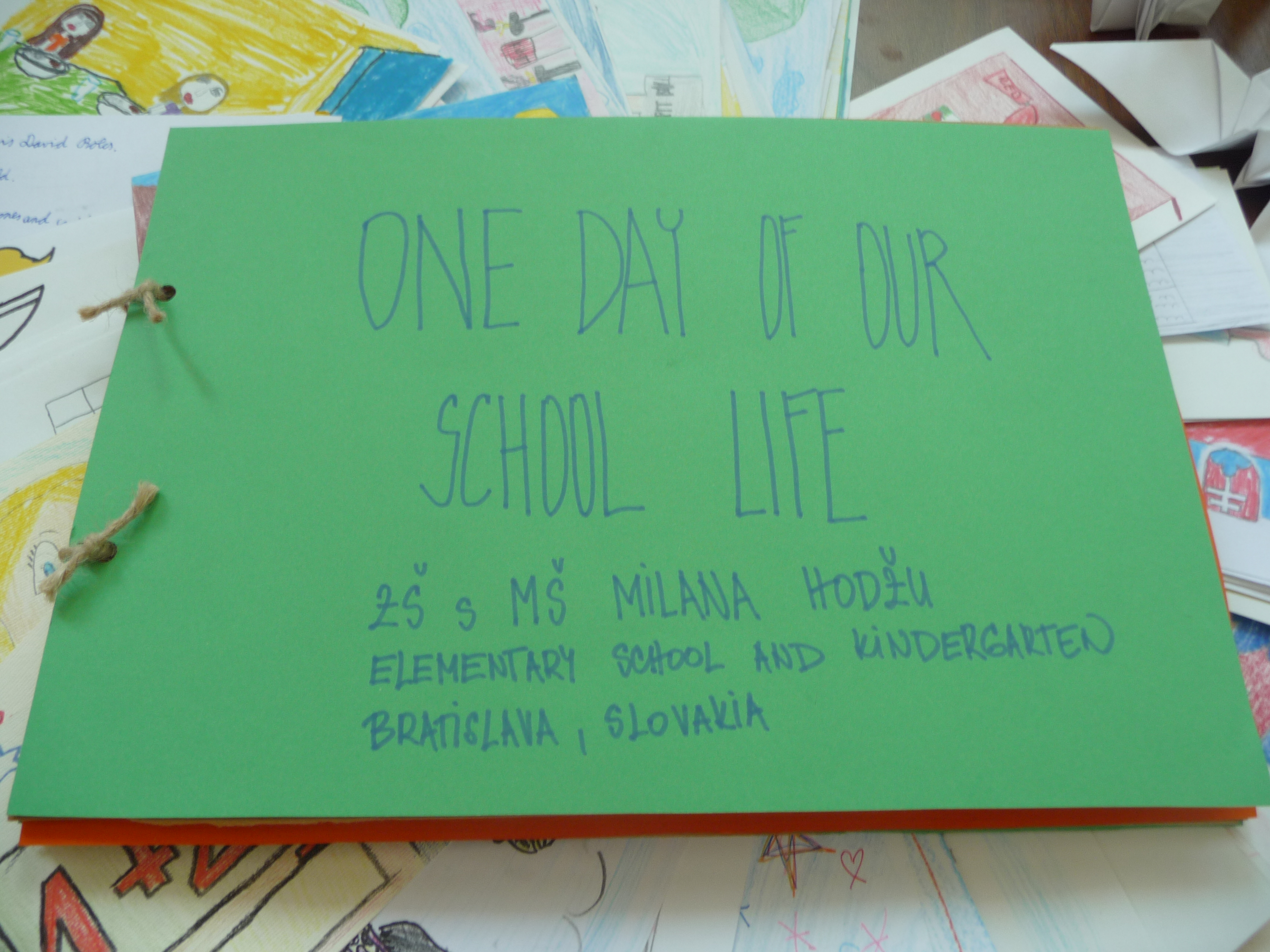 Tak sme sa všetci pustili do práce. Žiaci z nižších ročníkov nakreslili krásne obrázky týkajúce sa hlavne okolia školy a Bratislavy. Vyrobili aj jednu veľkú koláž z fotografií z rôznych školských akcií. Starší žiaci, medzi nimi aj moji spolužiaci a ja, vyrábali origami. Vlastne sme ani netušili, že sa z obyčajného papiera dá vytvoriť toľko odlišných zvierat, kvetov a iných vecí. Ďalej sme kreslili vlastné pohľadnice. Z jednej strany bol obrázok a z druhej krátky text po anglicky, ktorý sme napísali na hodine angličtiny. Následne sme si spravili jednu veľkú fotografiu, na ktorej držíme plagát s japonským nápisom Ahoj. Napokon sa chystáme zostaviť zbierku fotiek, ktorá bude obsahovať nafotené zábery pred školou, cez vyučovanie alebo na záujmových krúžkoch, aby sme deťom v Japonsku priblížili jeden deň zo života našej školy.