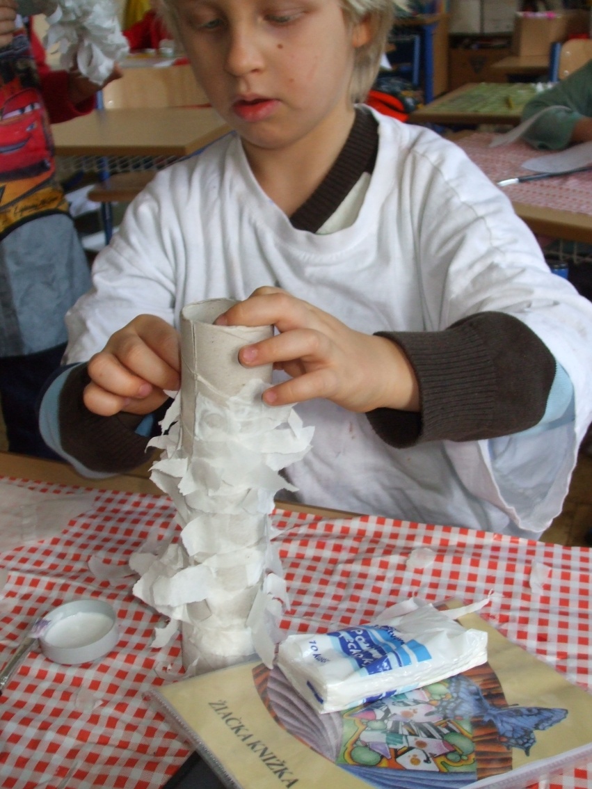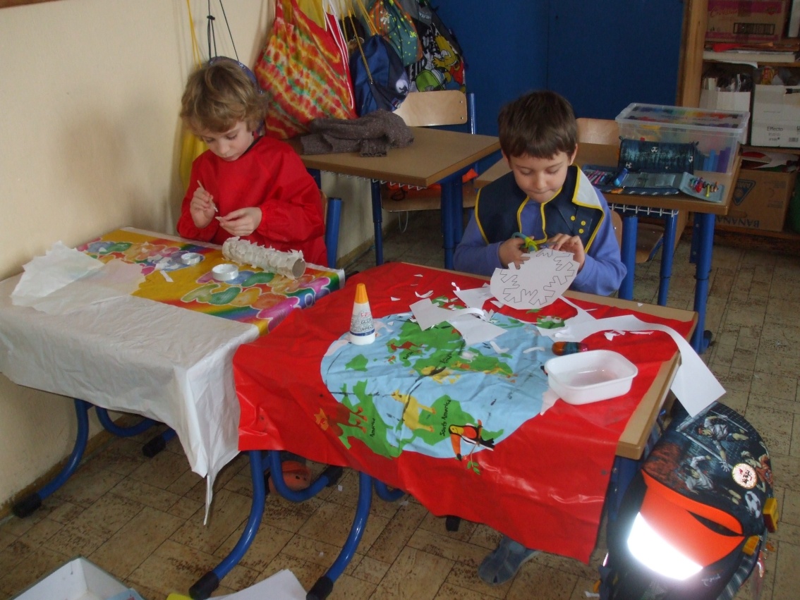 Jeden deň sme hľadali odpoveď na otázku, prečo máme v zime snehovú perinku? Dala nám ju rozprávka Anjelská perinka. Druhý deň to boli farební, šantiví i uletení anjelikovia, ktorých sme si vyčarovali pomocou farbičiek. Tretí deň to boli anjelikovia – strážničkovia pri našom stromčeku. Na ich tvorbu sme potrebovali lepidlo, špagát, papier a hlavne naše šikovné pršteky.