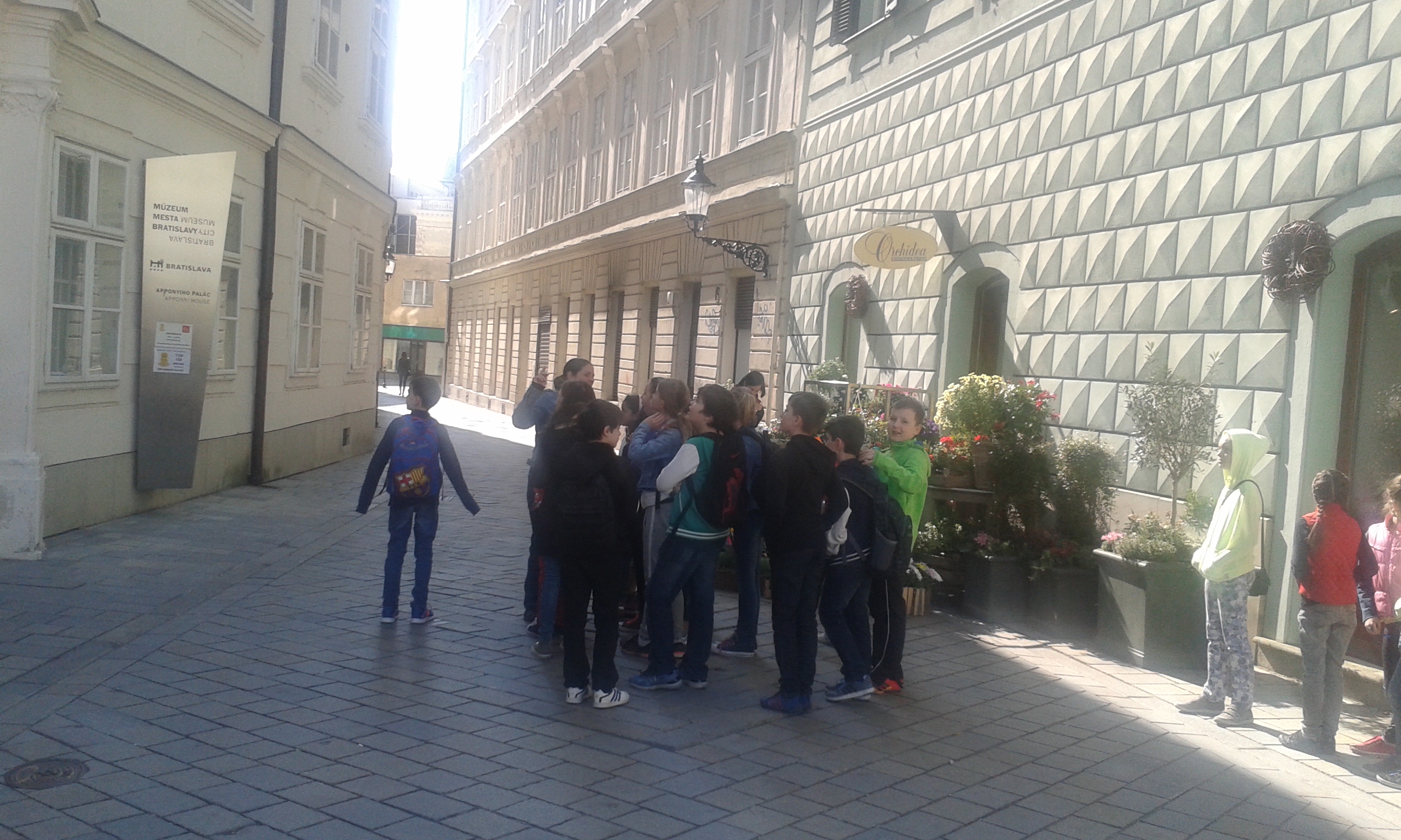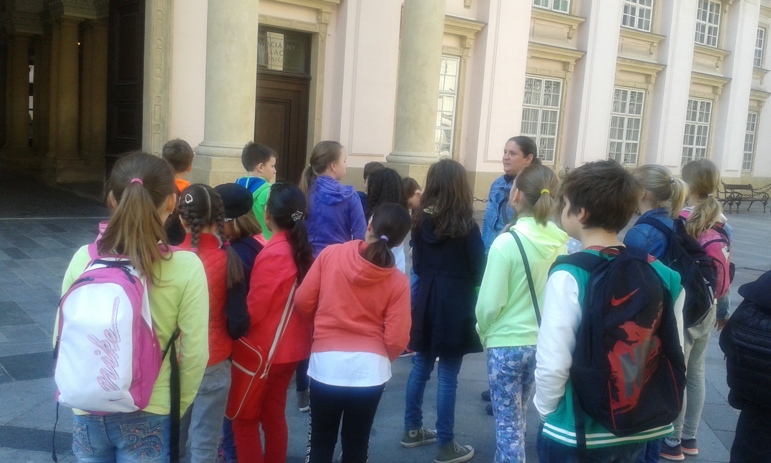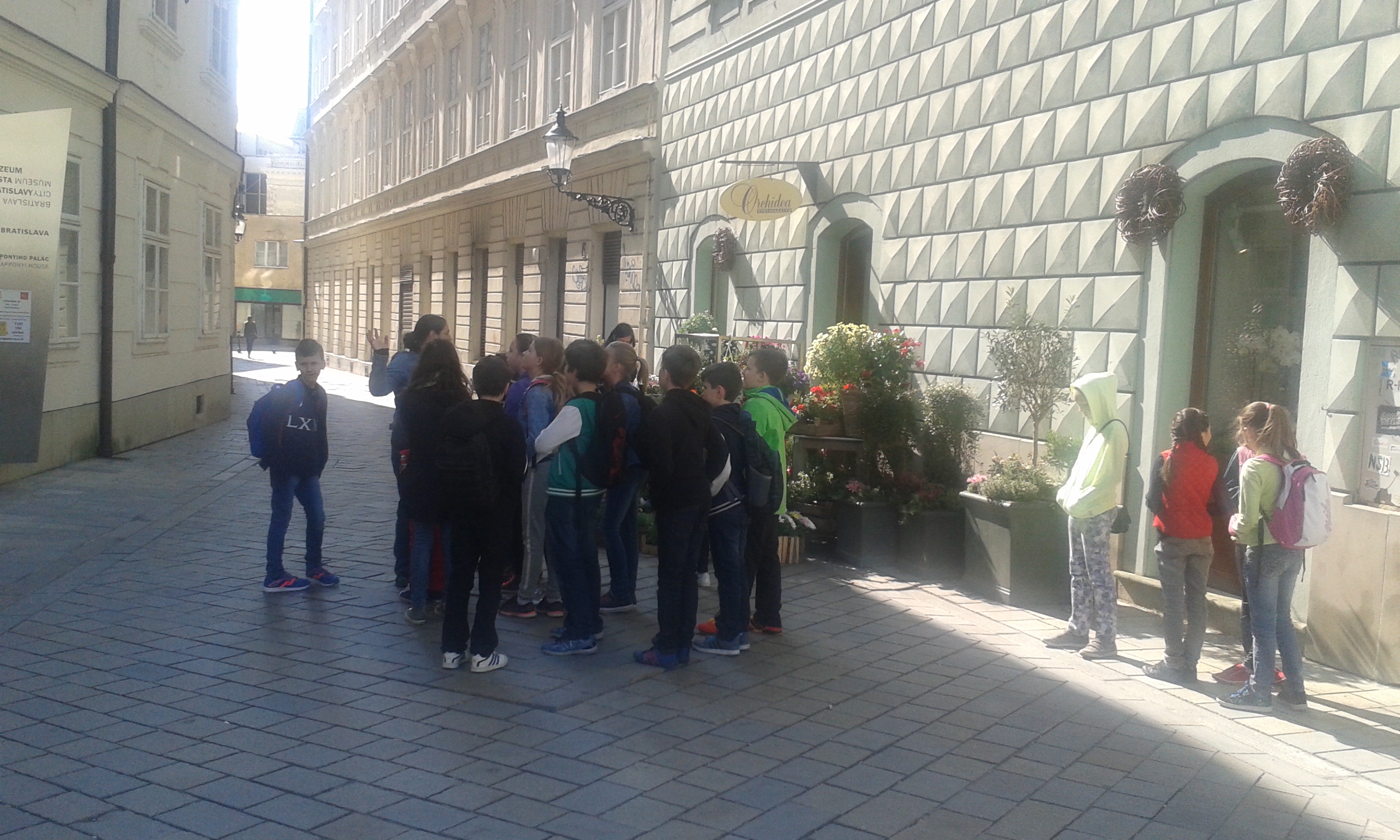 Počas prehliadky sa štvrtáci prešli uličkami historického centra nášho mesta. Od sprievodkýň p. Hamerlíkovej a p. Gašparovej sa dozvedeli veľa cenných a zaujímavých informácií o Primaciálnom paláci, o Starej radnici, vypočuli si povesť o vzniku Rolandovej fontány. Prezreli si sochu Schöne Náciho v jeho životnej veľkosti, ktorý bol kedysi veľmi známou postavou. Rozdával ľuďom radosť, humor, lásku, smiech a dobro. Prešli sa Panskou ulicou bohatou na historické budovy. Prehliadku ukončili pri Michalskej bráne. Na jeseň sa budú môcť školáci opäť zapojiť do súťaže o histórii hlavného mesta.