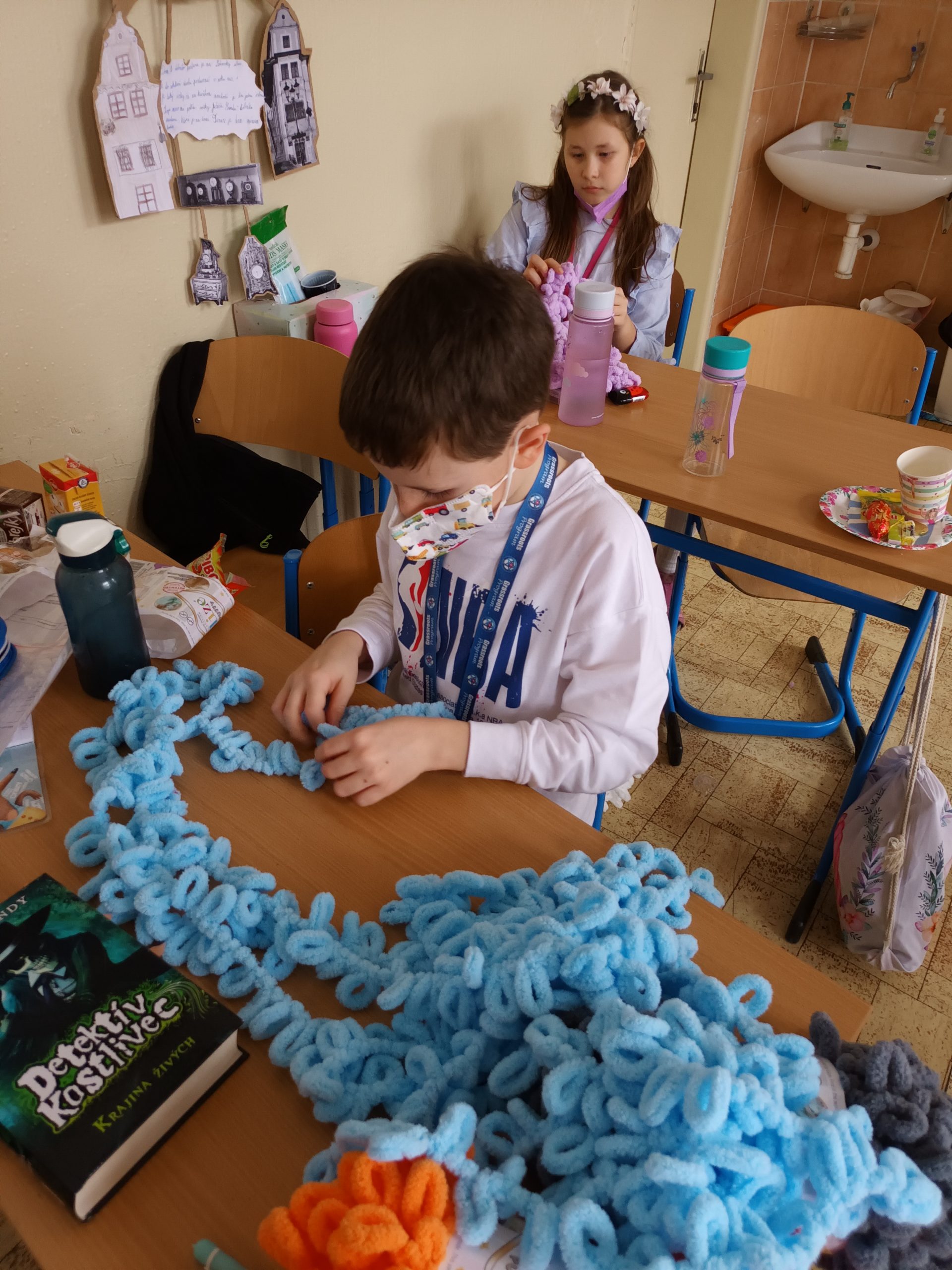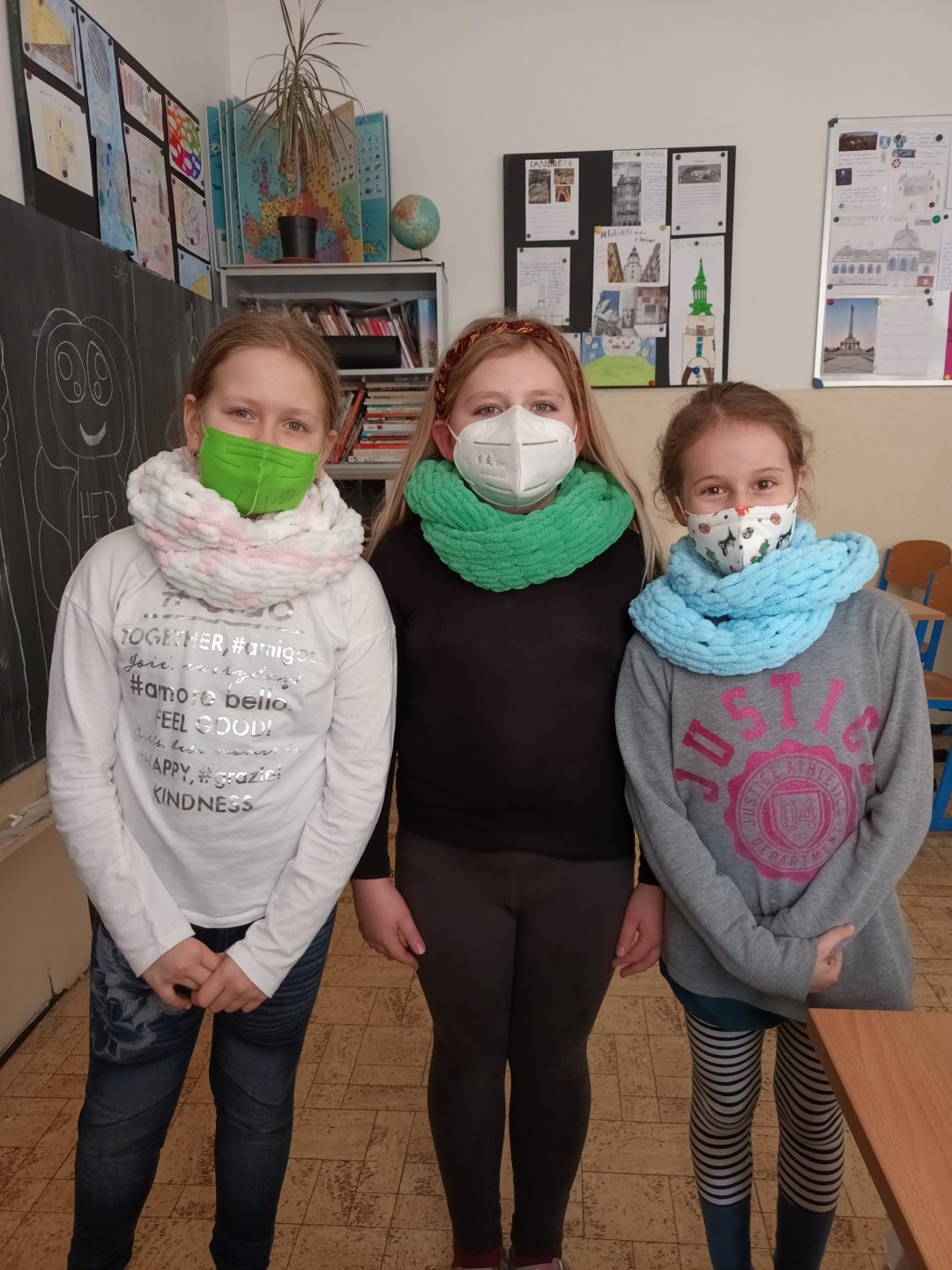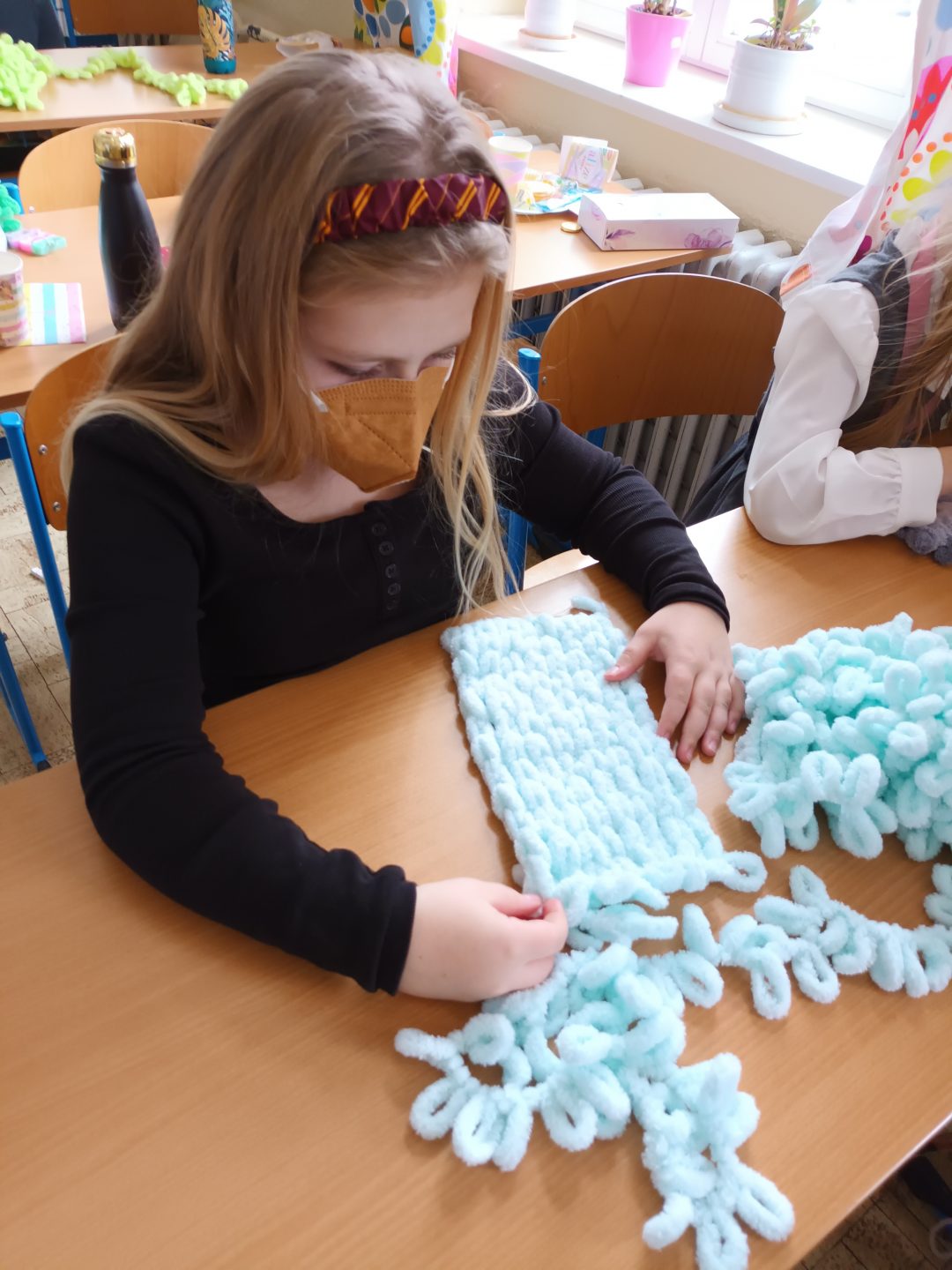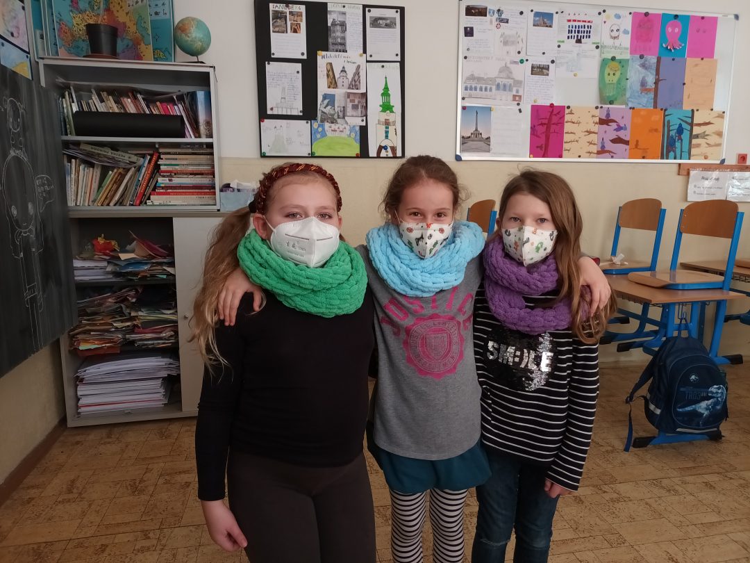Zimné počasie stále neskončilo. Žiaci z 3.A triedy si poobede s pani vychovávateľkou uplietli takéto krásne šáliky, ktoré príjemne hriali a vyzerali skutočne úžasne.